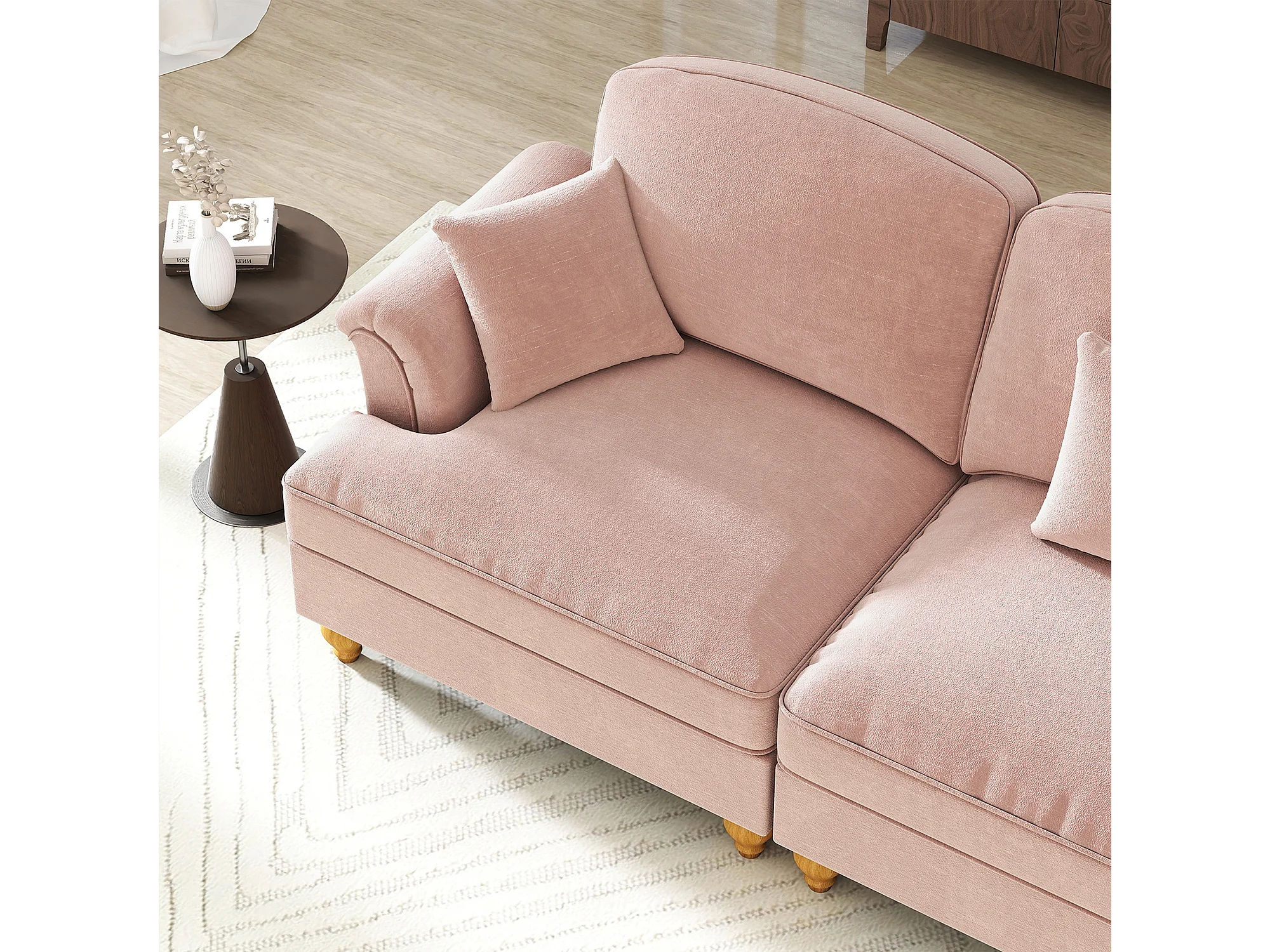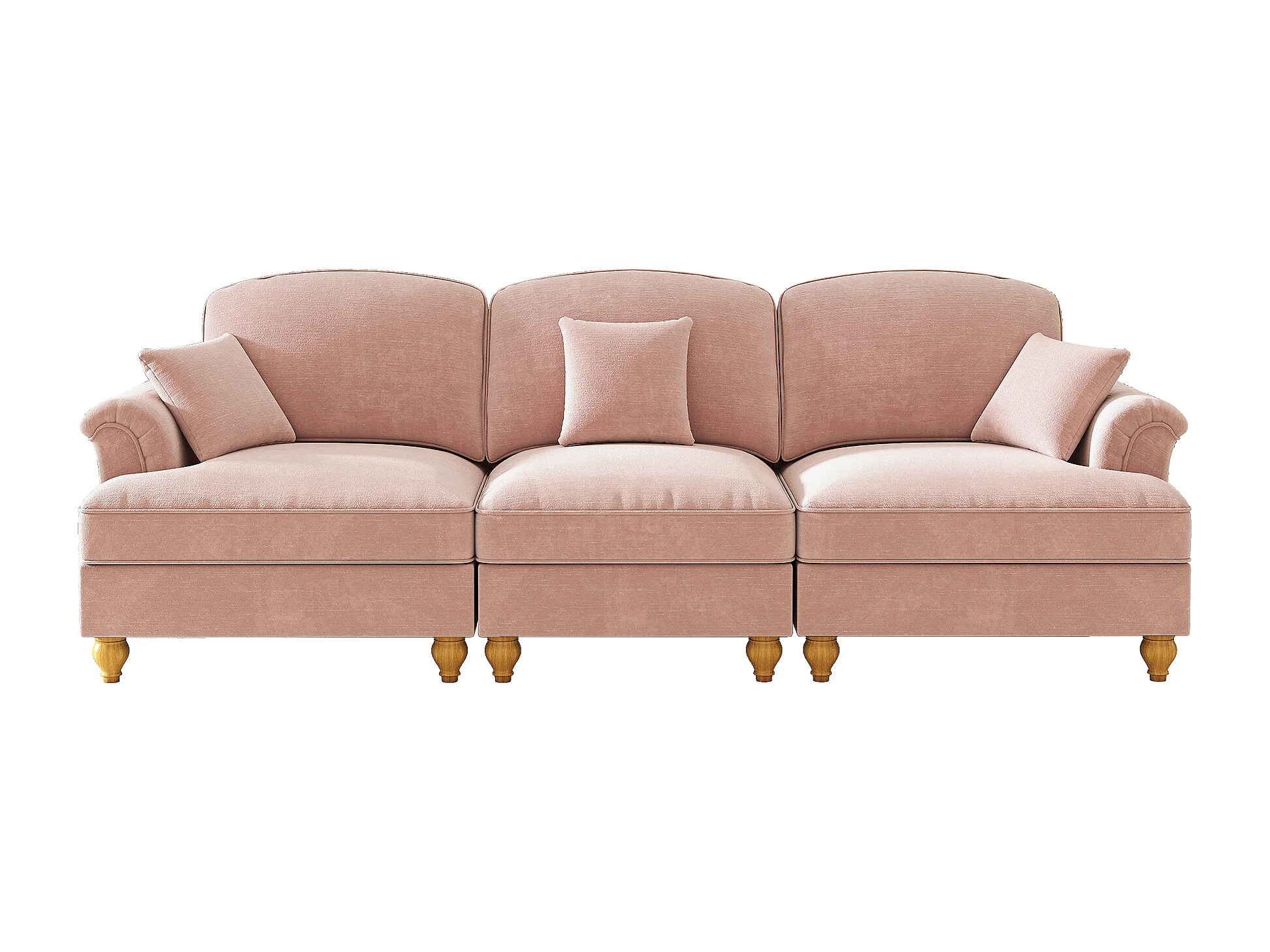 Canapé 3 places en tissu chenille rose - Avec soutien lombaire et jupe plissée amovible