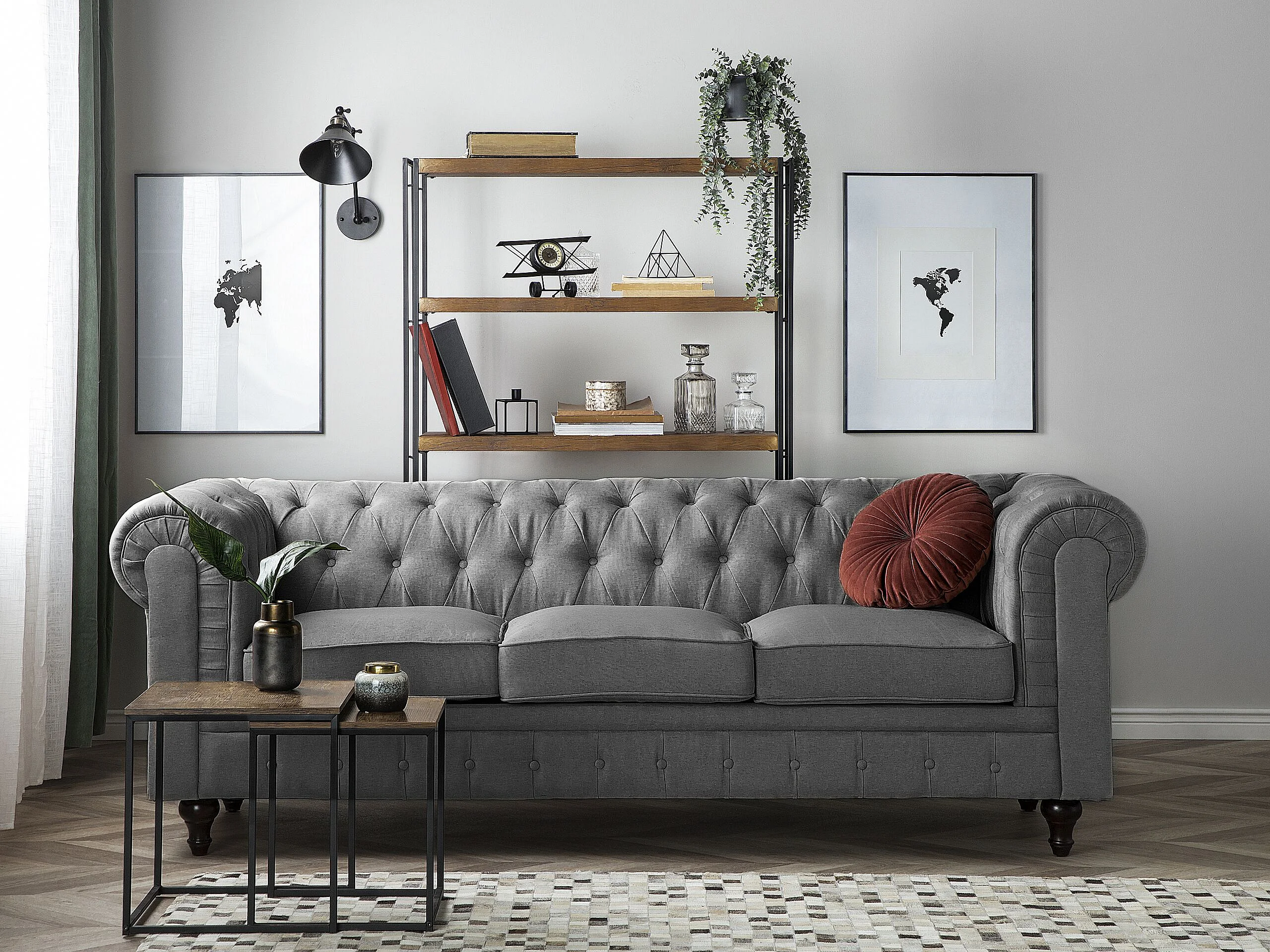 Canapé 3 places CHESTERFIELD Tissu Gris clair