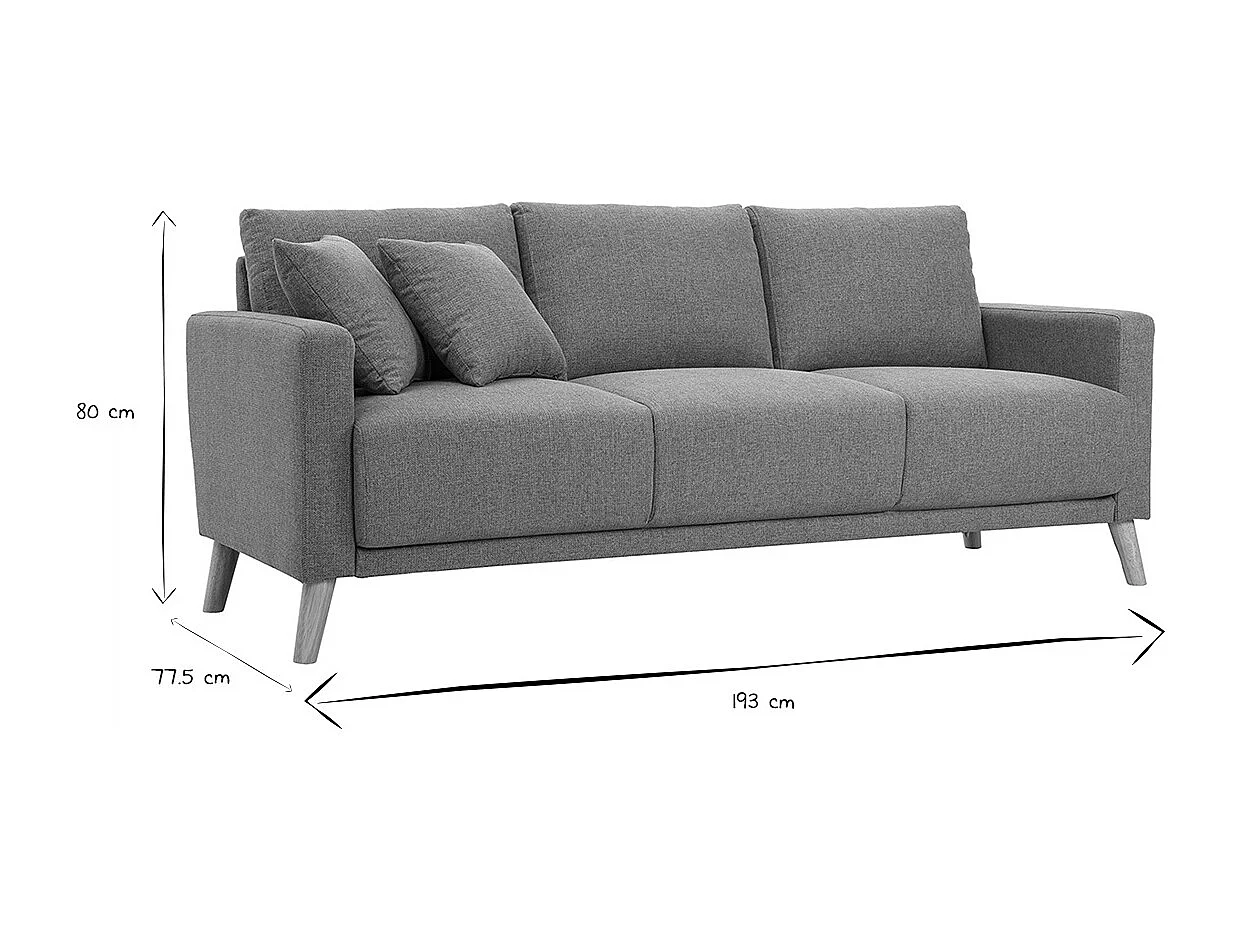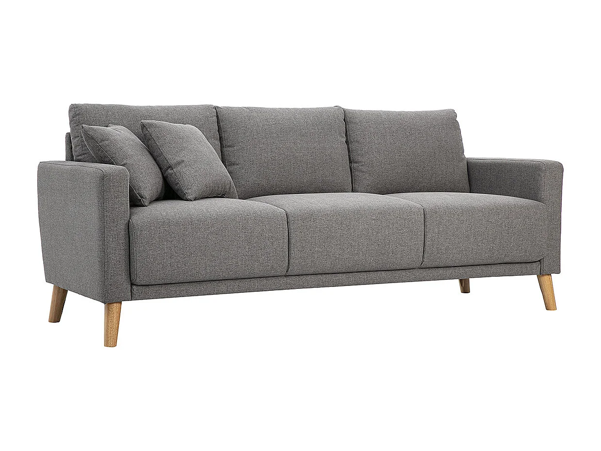 Canapé 3 places en tissu gris et bois clair MUNIK