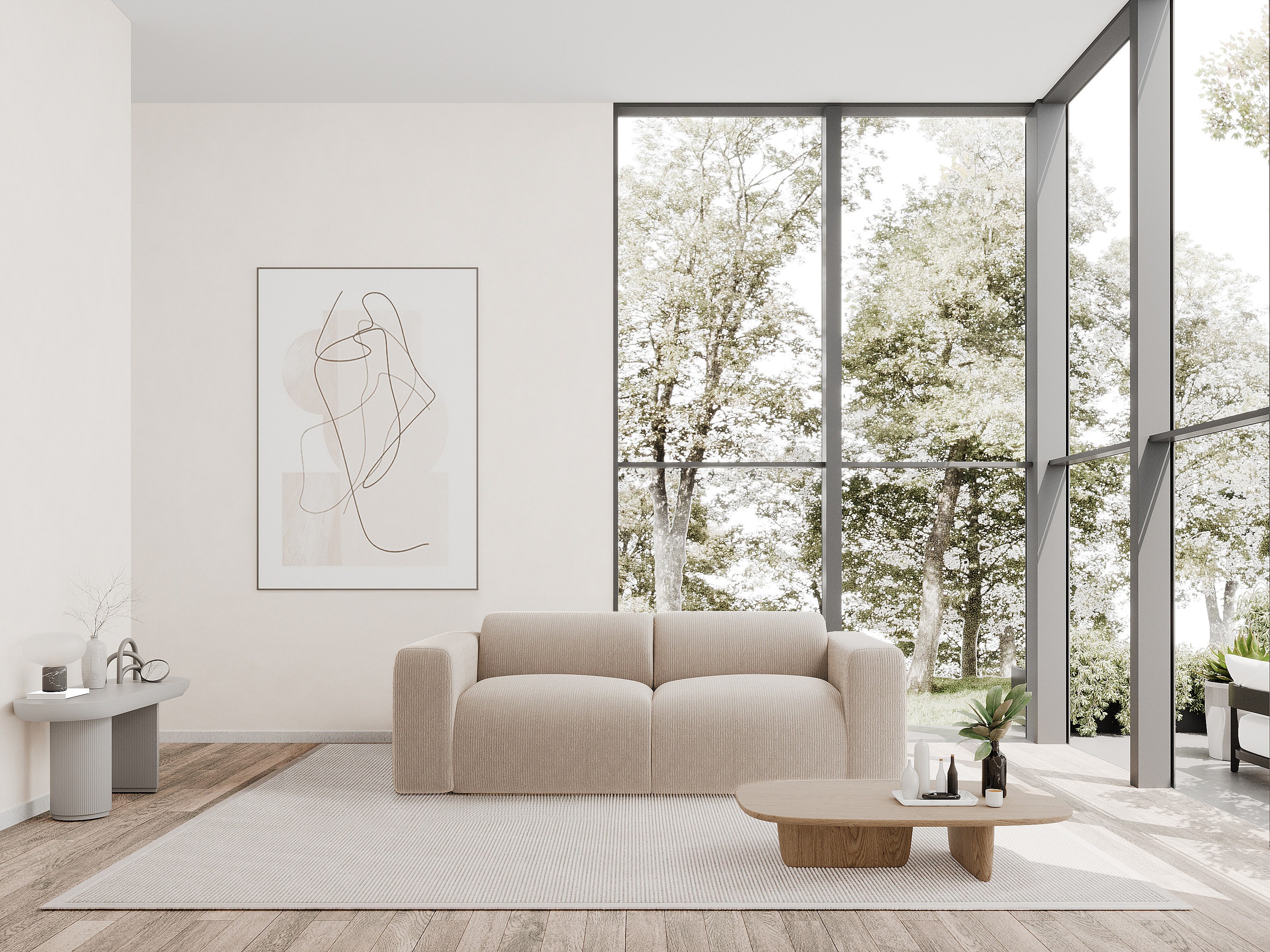 Canapé 3 places en velours côtelé fines côtes beige POGNI de Maison Céphy