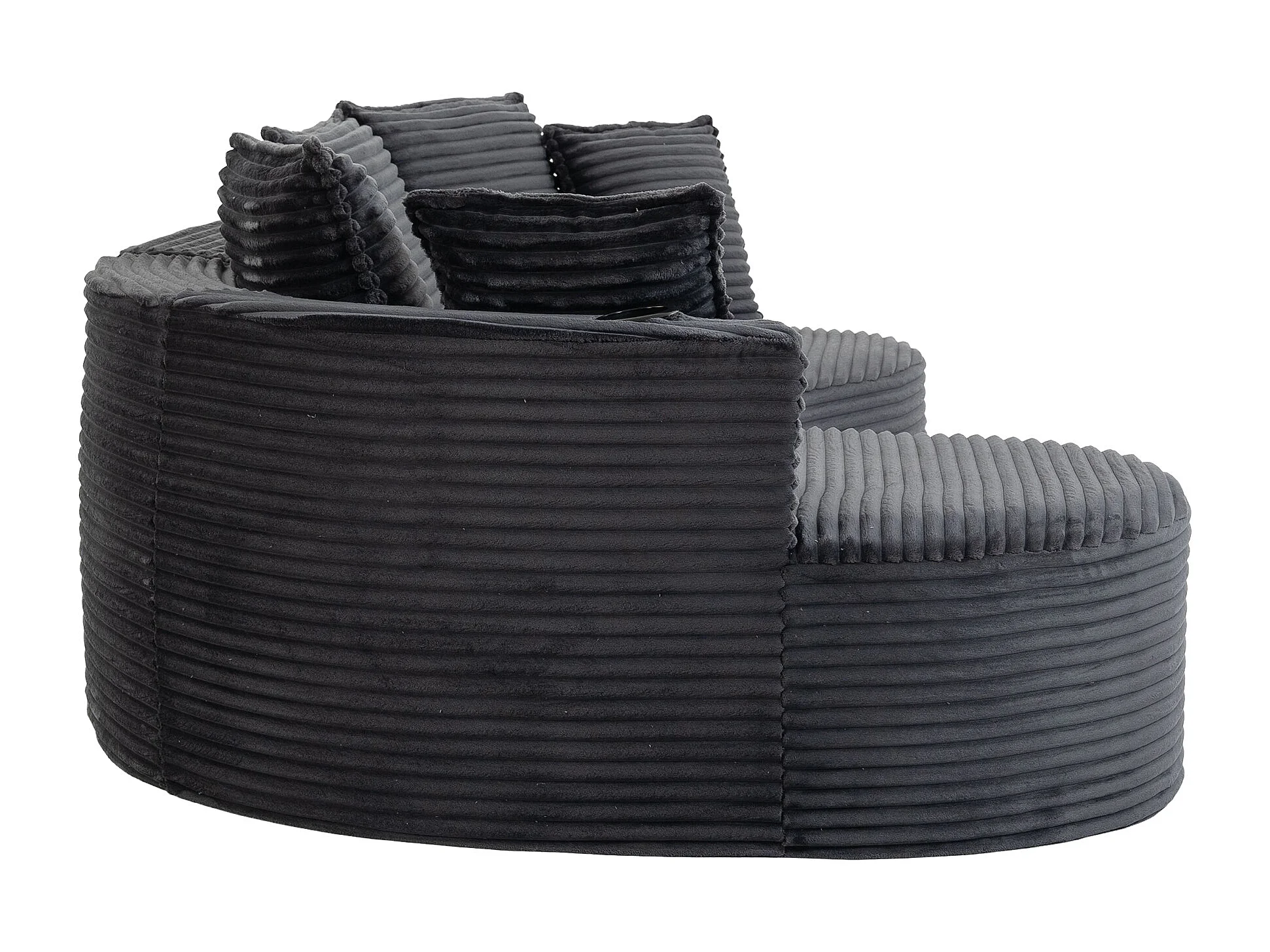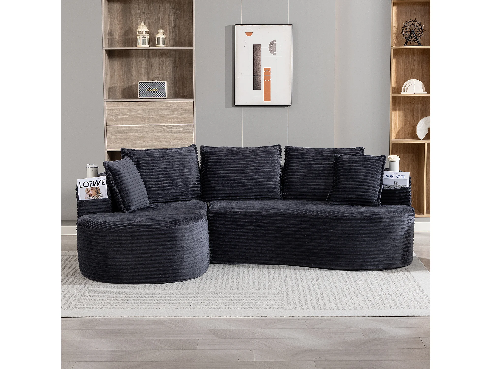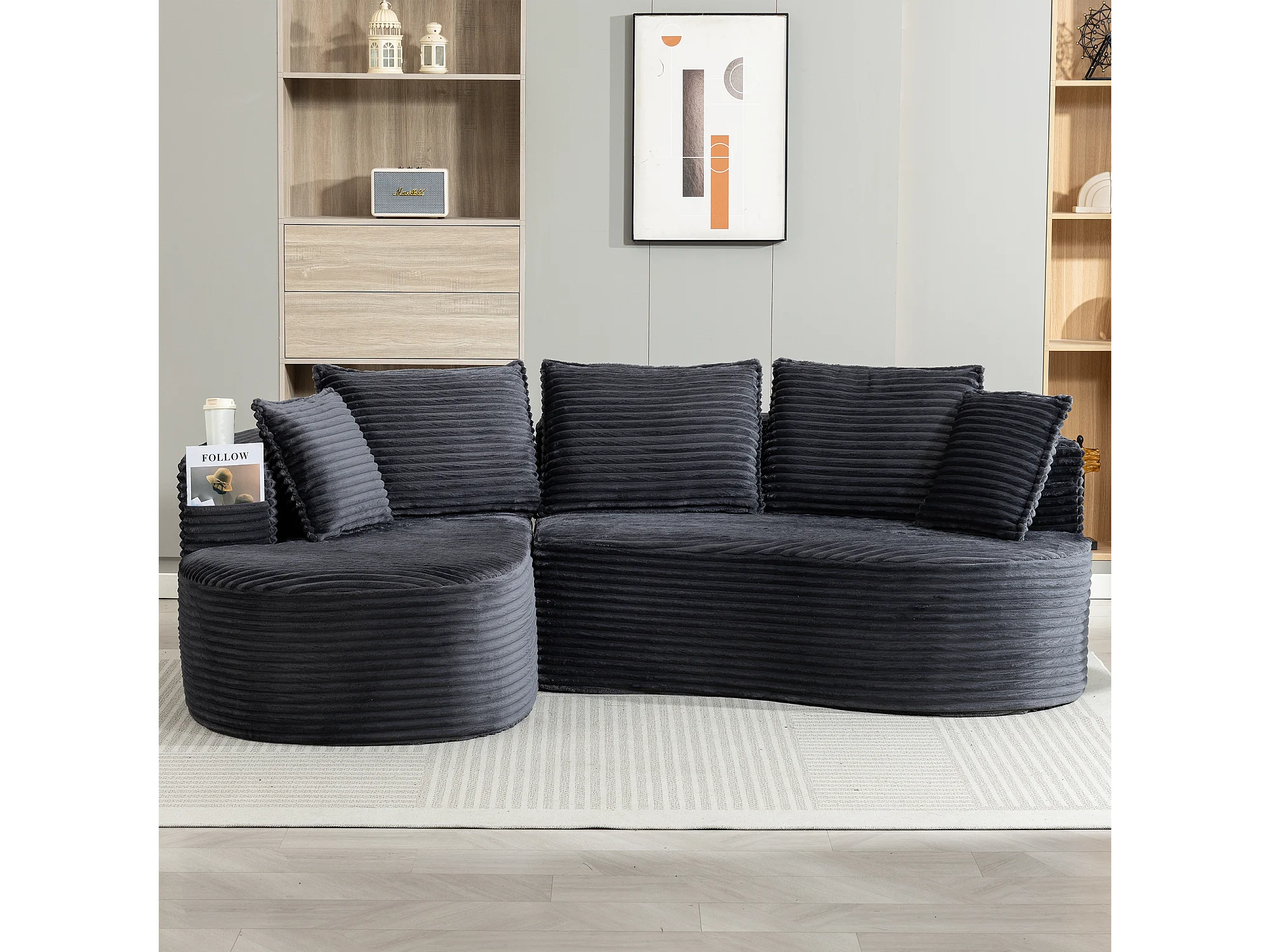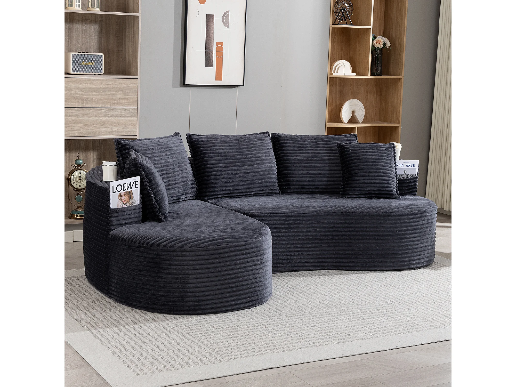 Canapé 3 places en velours côtelé - 250 x 152 x 82 cm - avec porte-gobelet + poche + coussins - gris foncé