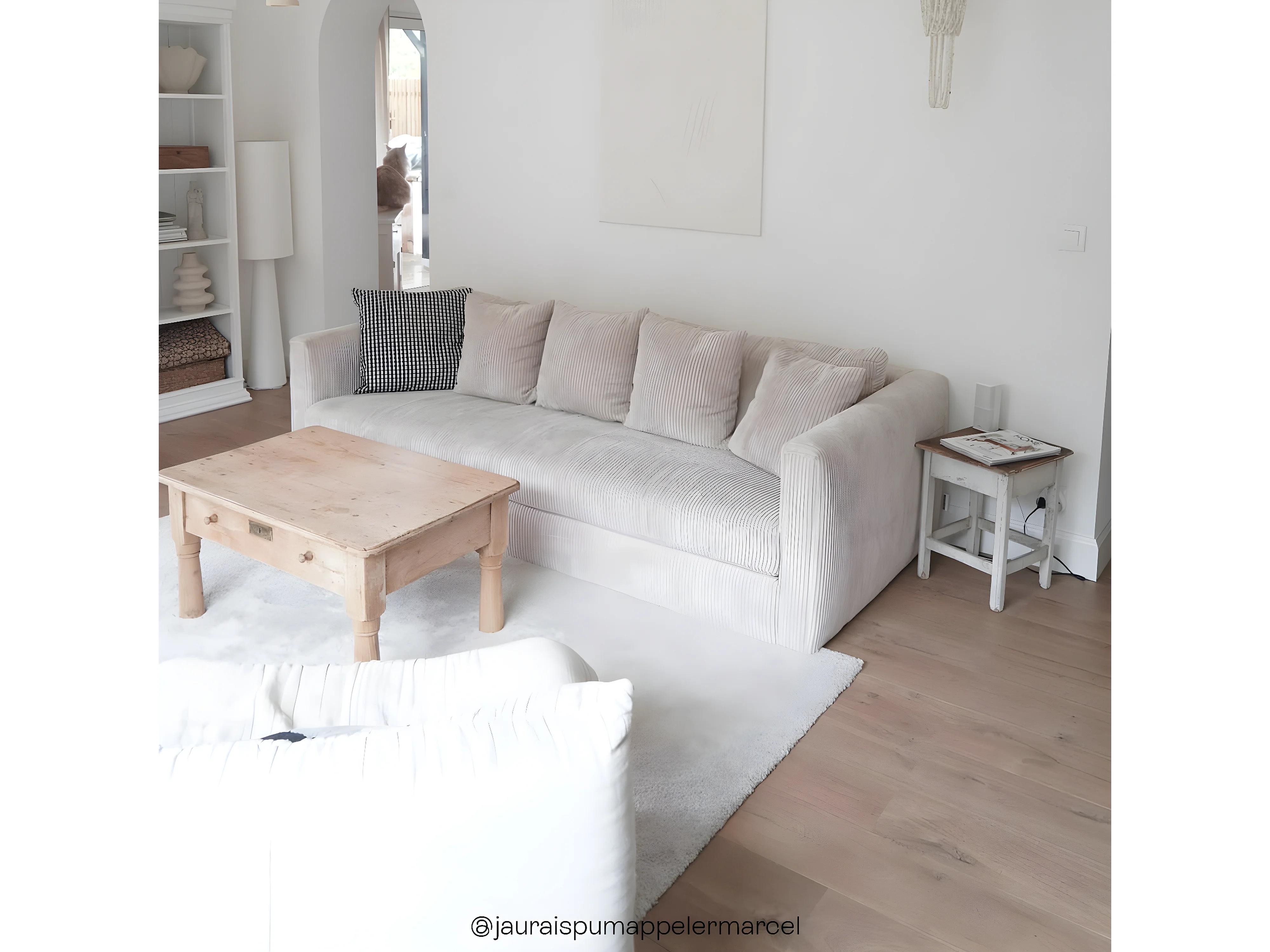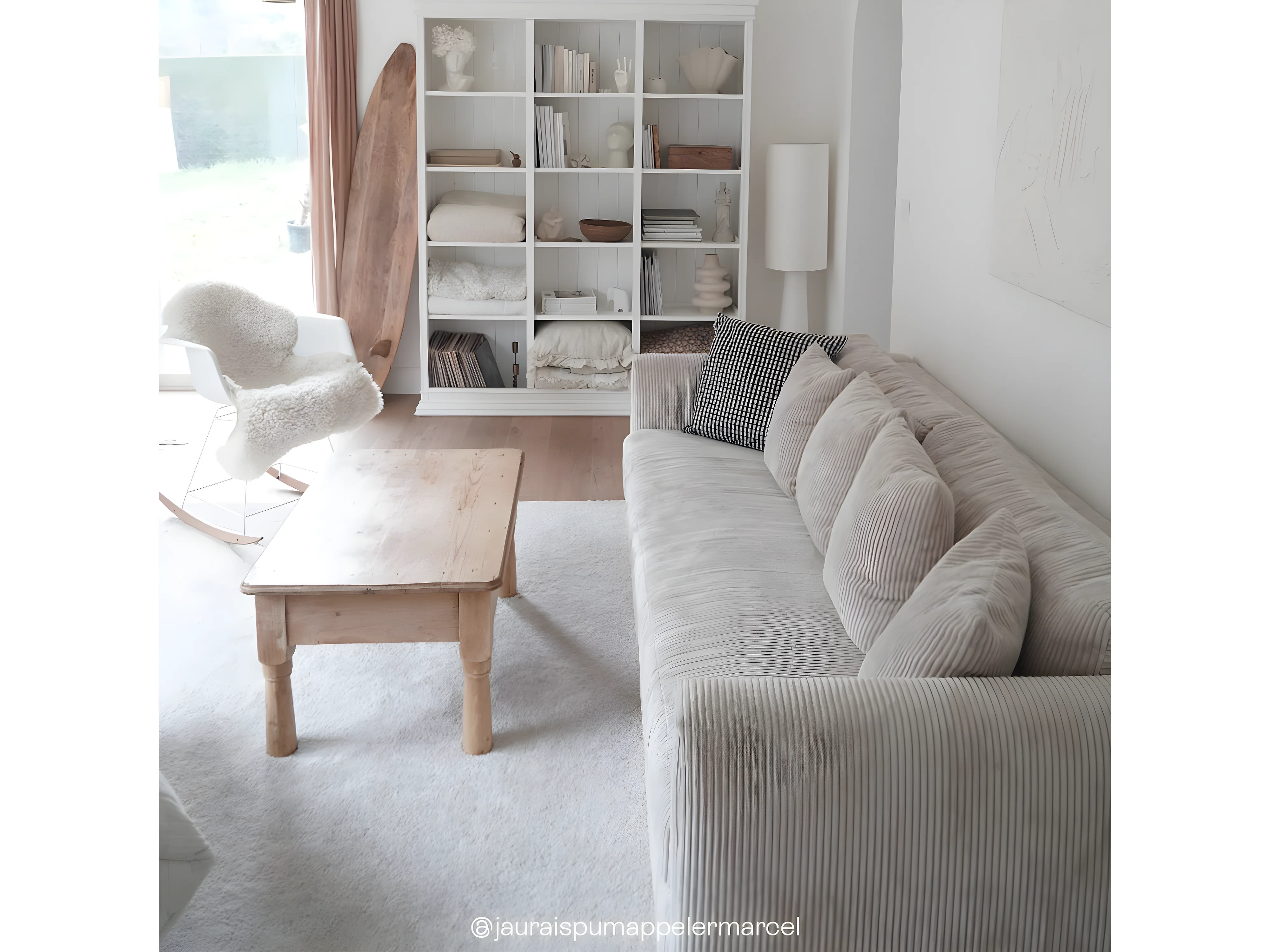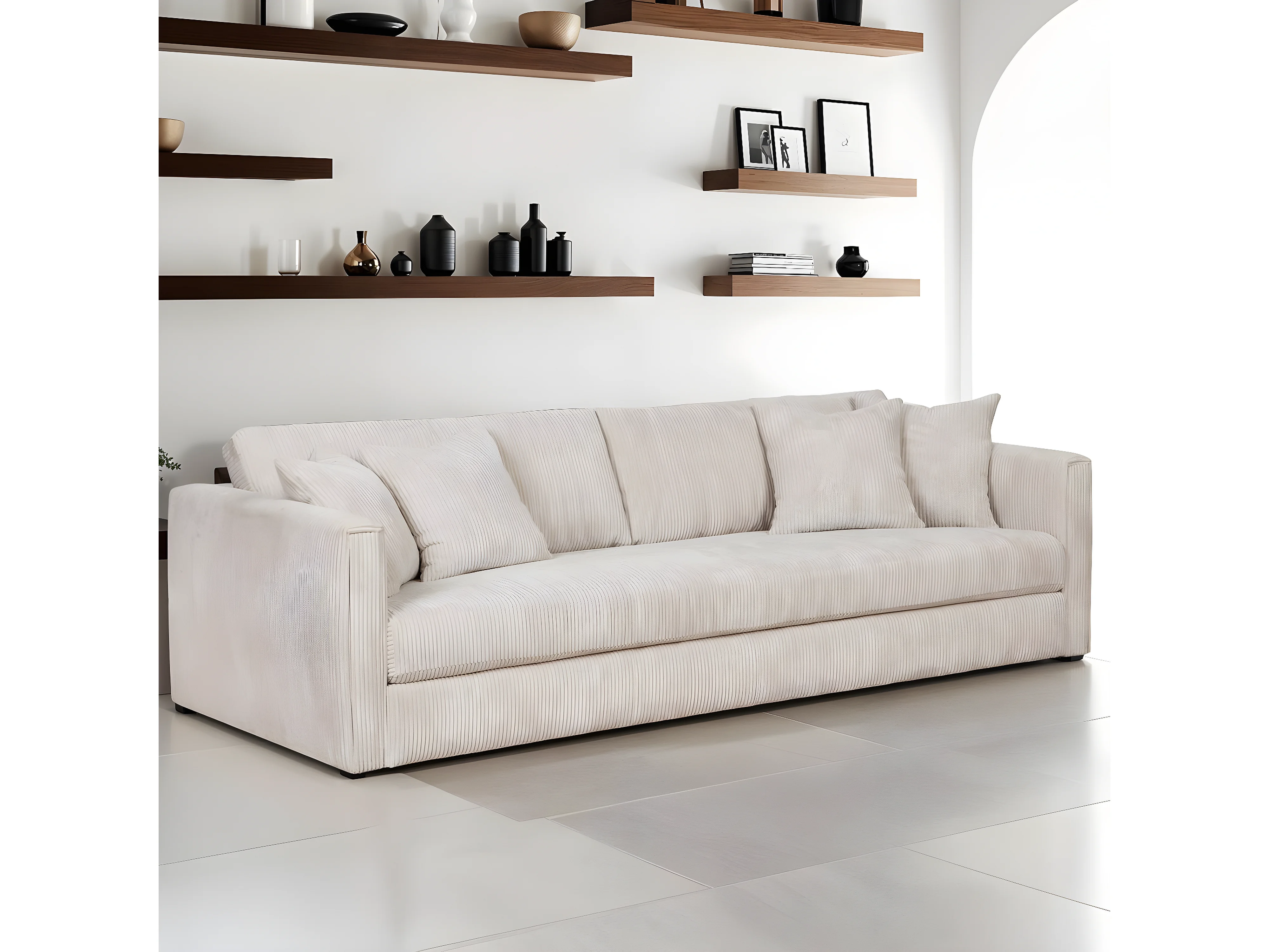 Canapé 4 places en velours côtelé beige + 4 coussins - Denver