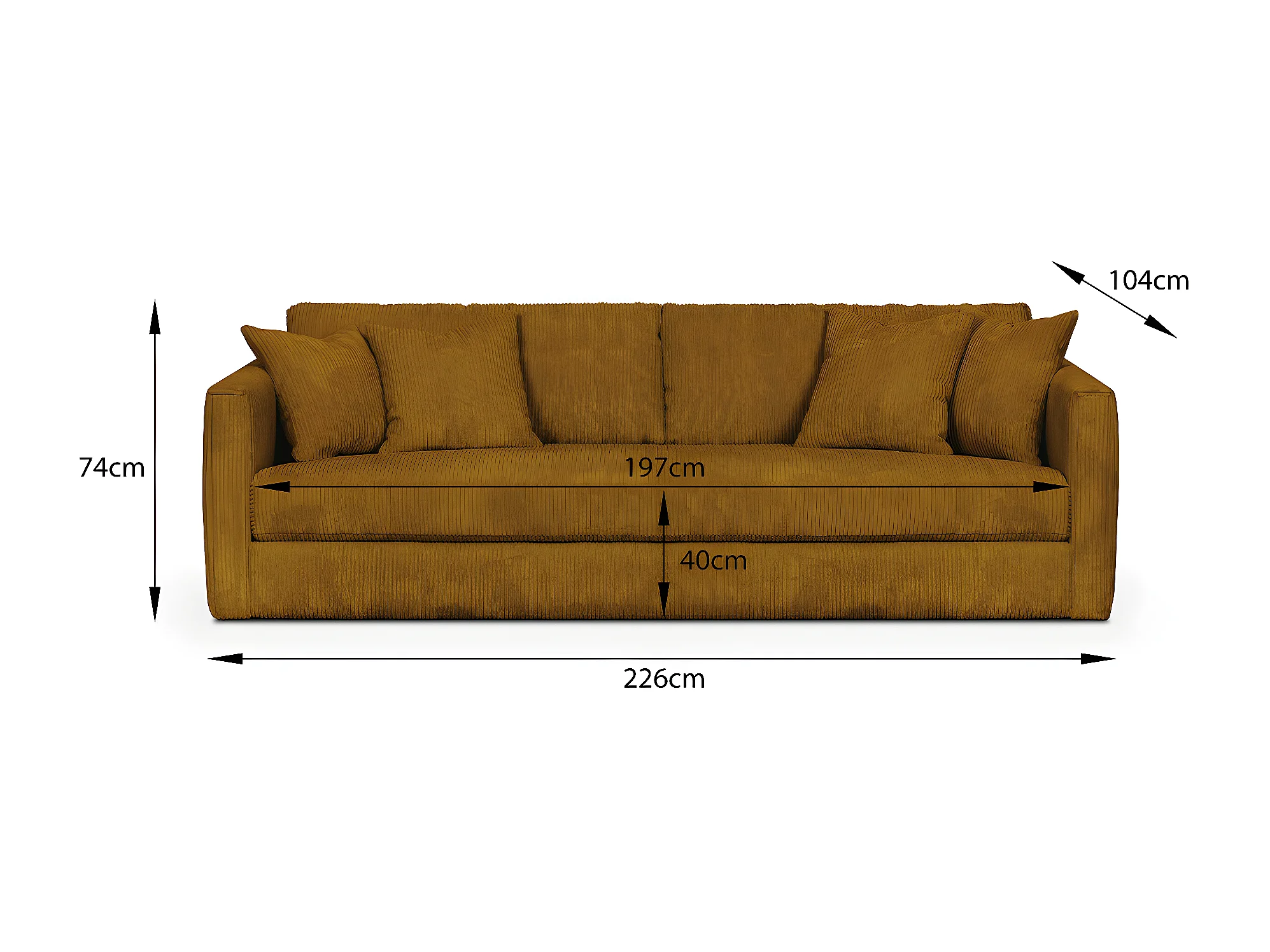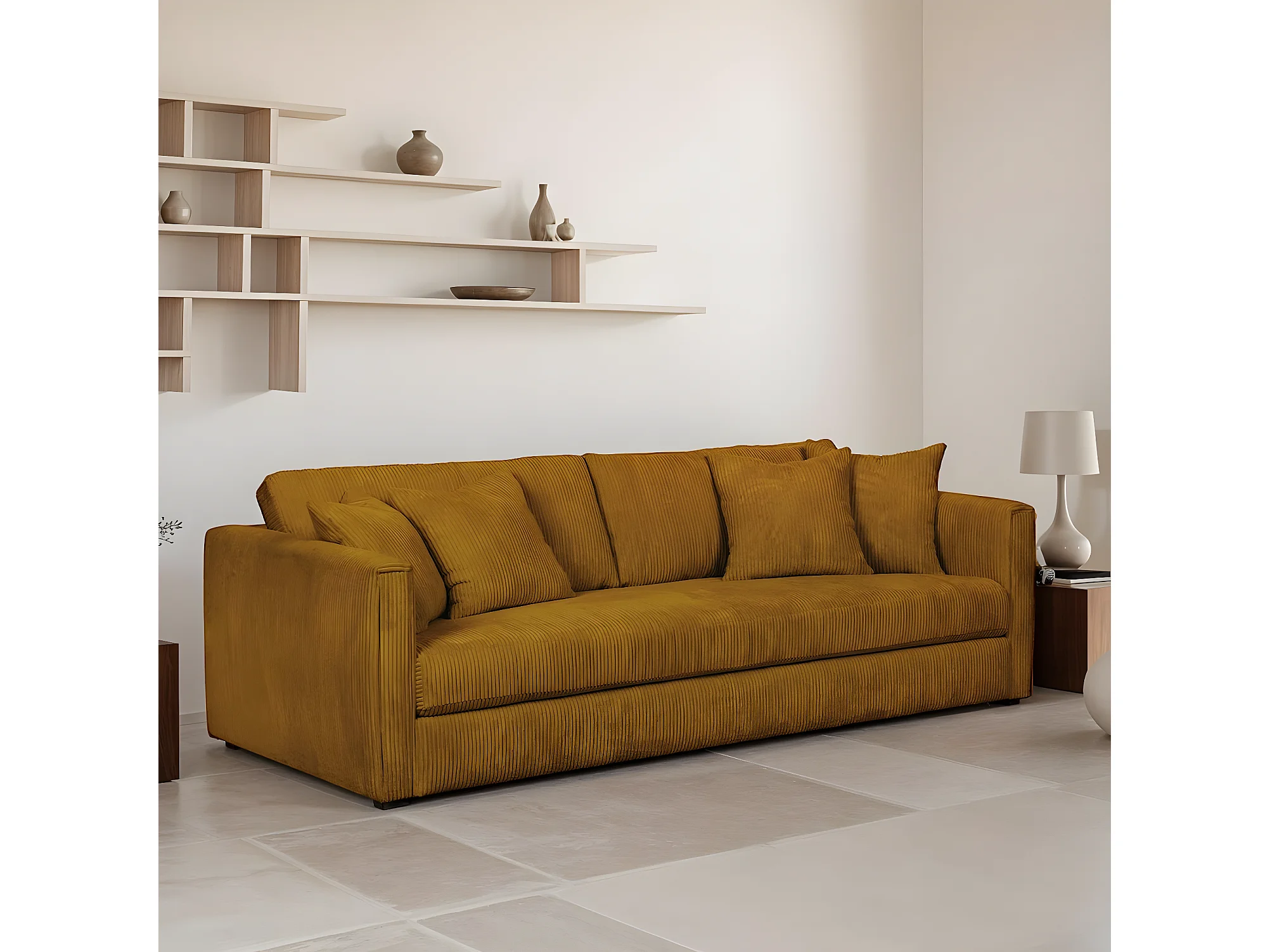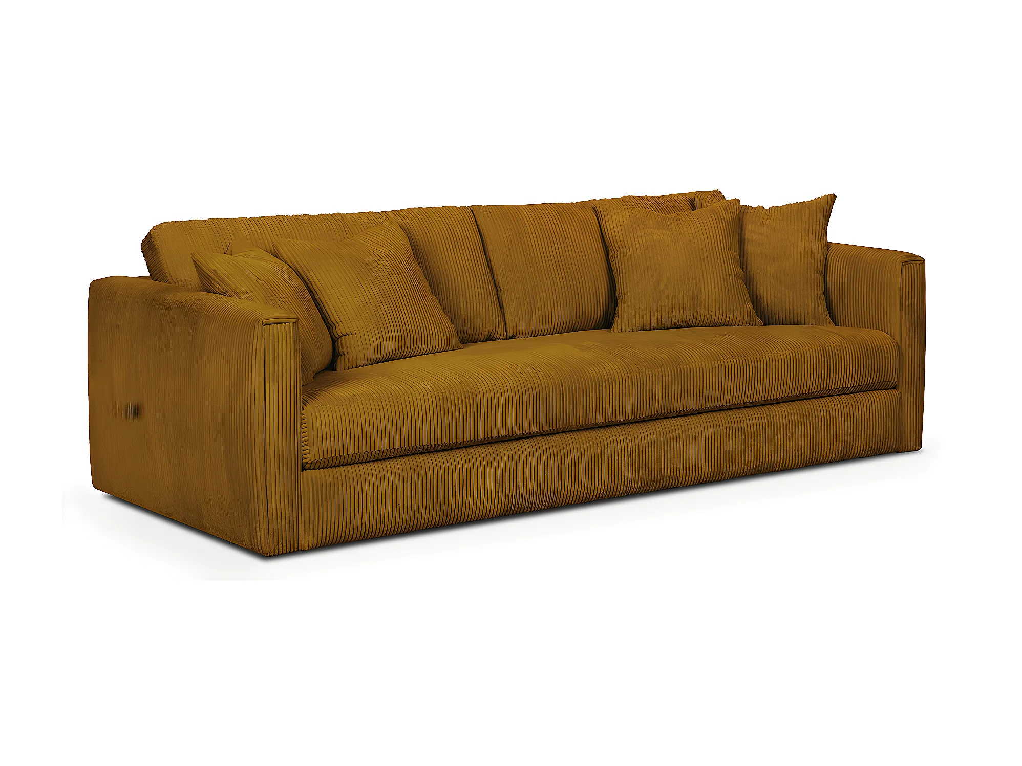 Canapé 4 places en velours côtelé jaune moutarde + 4 coussins - Denver