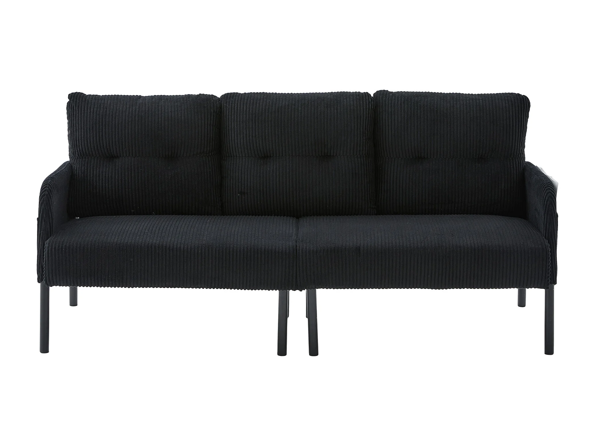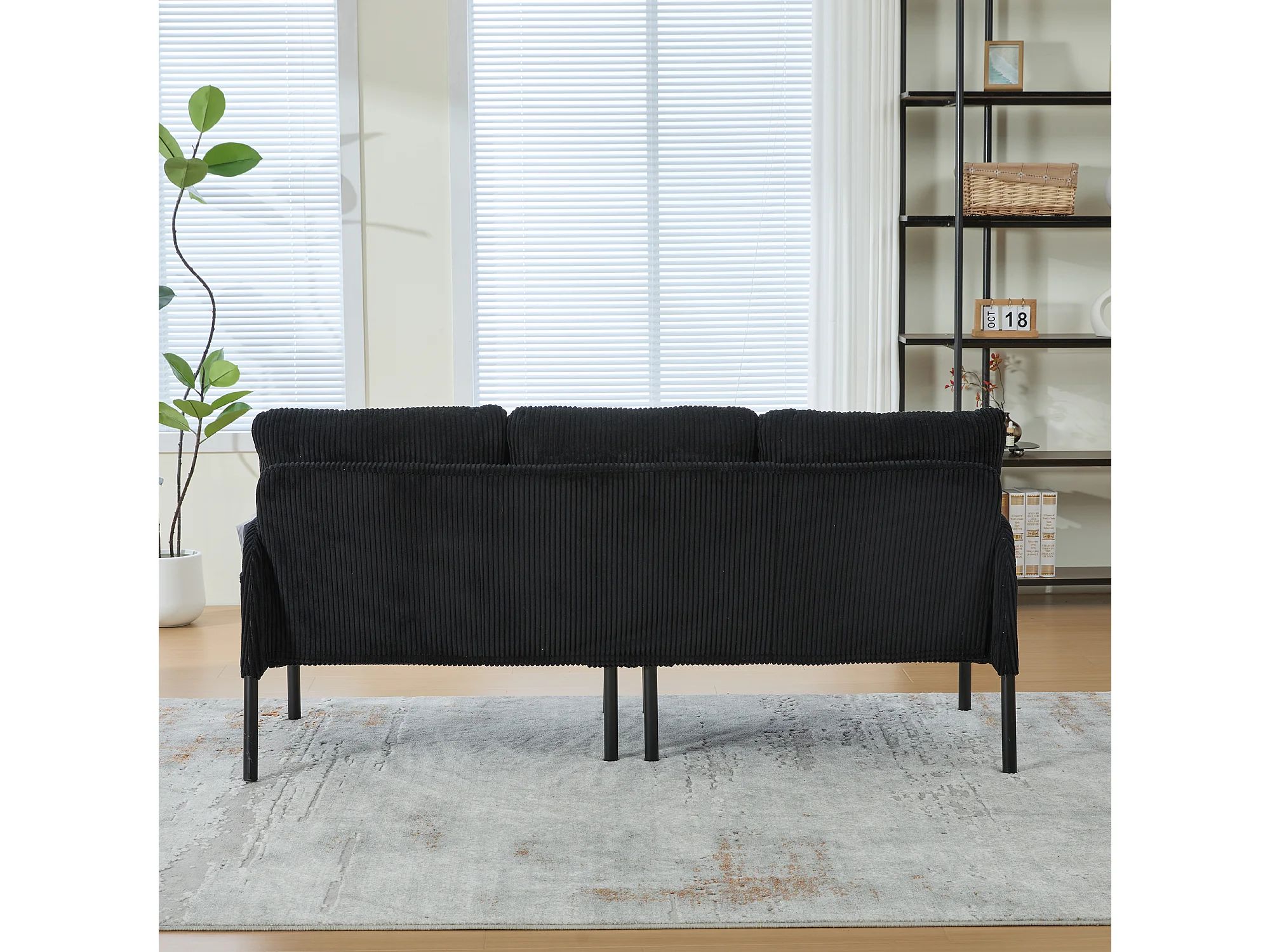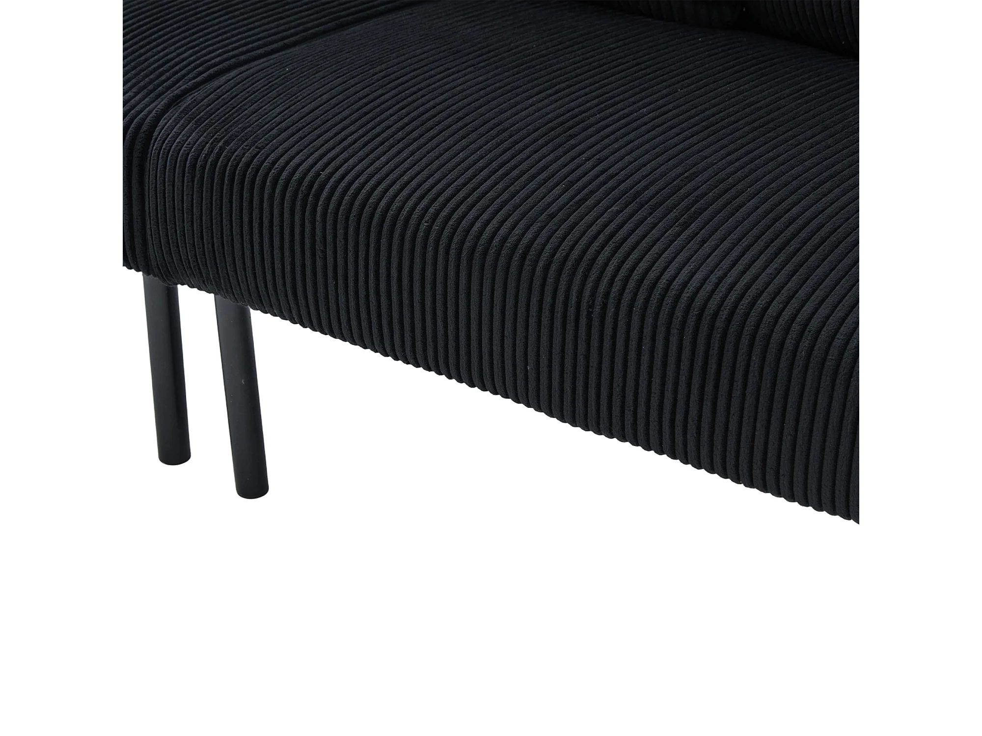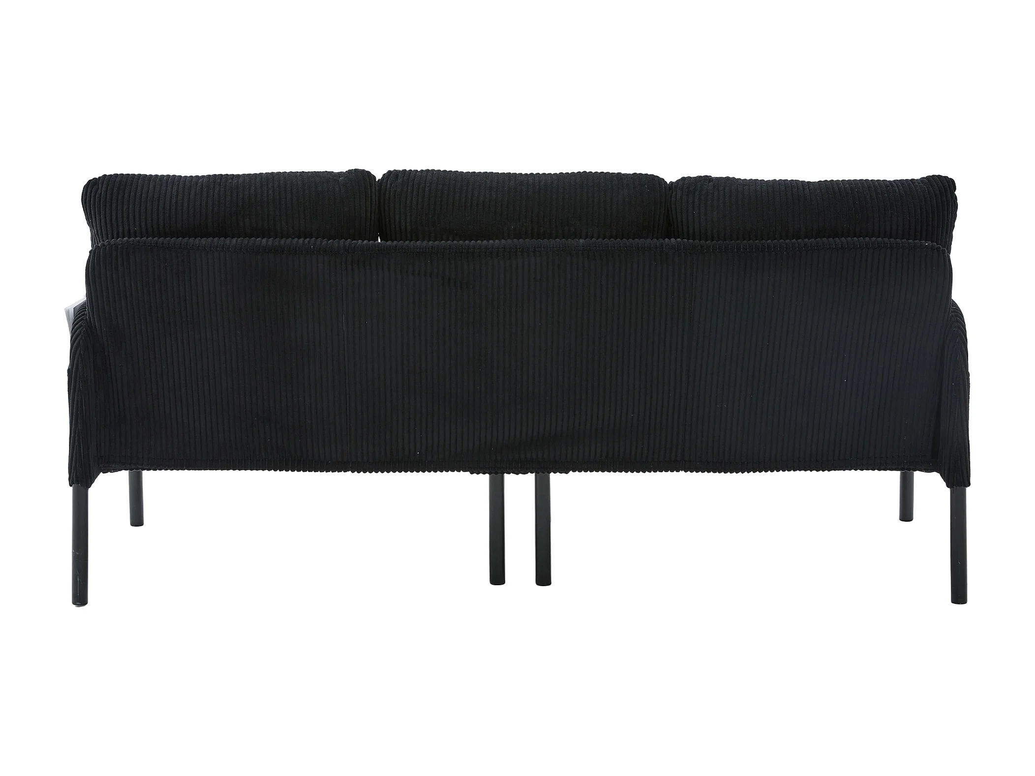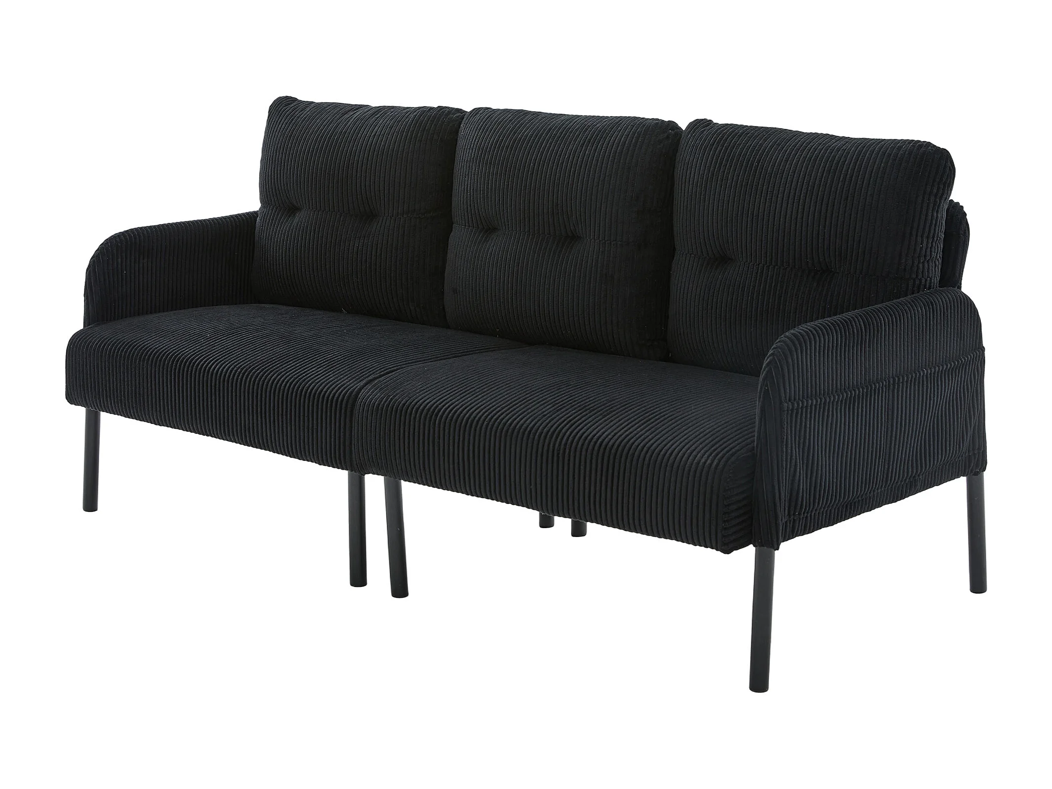Canapé 3 places en velours côtelé noir - Pieds en métal