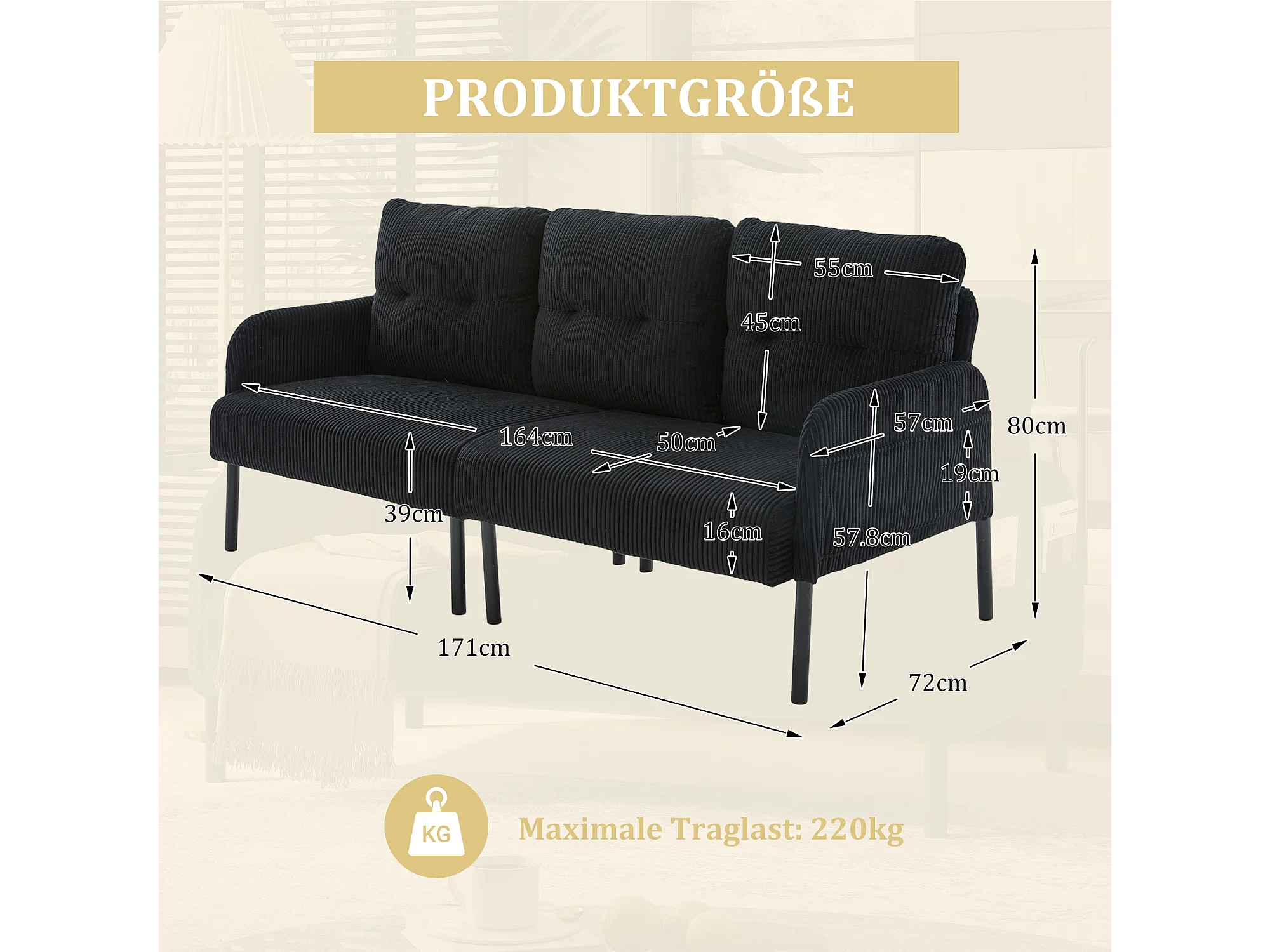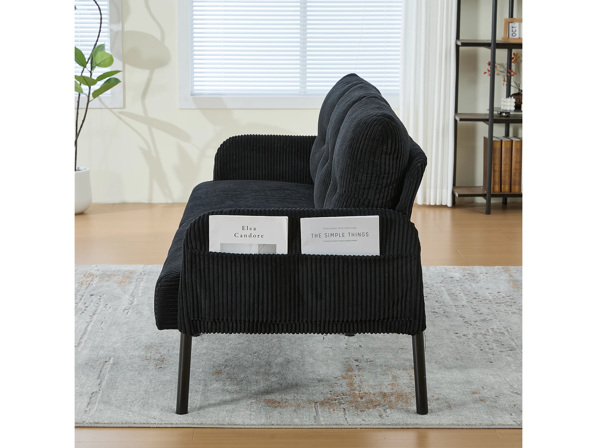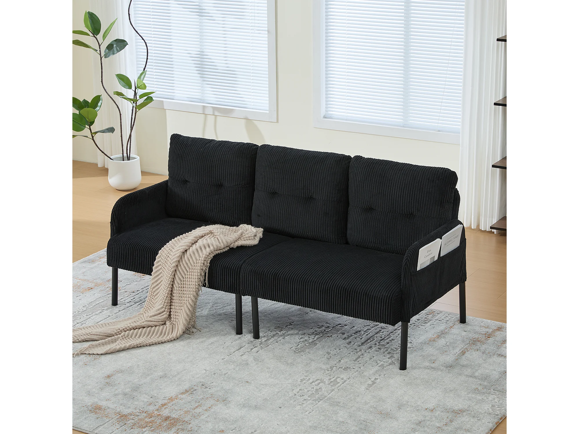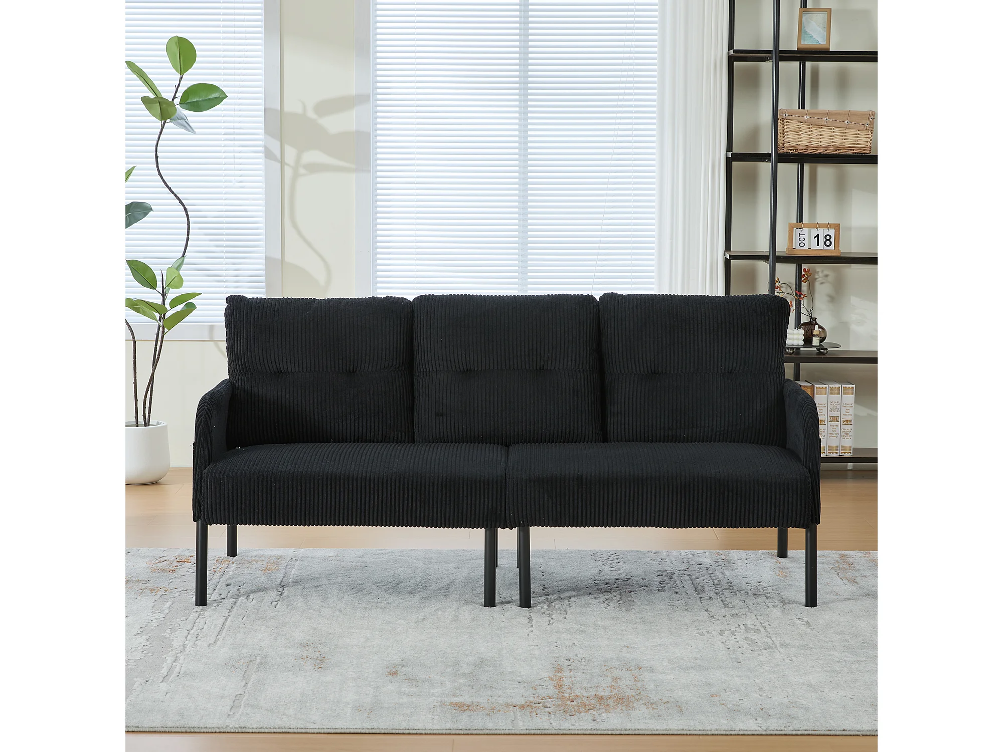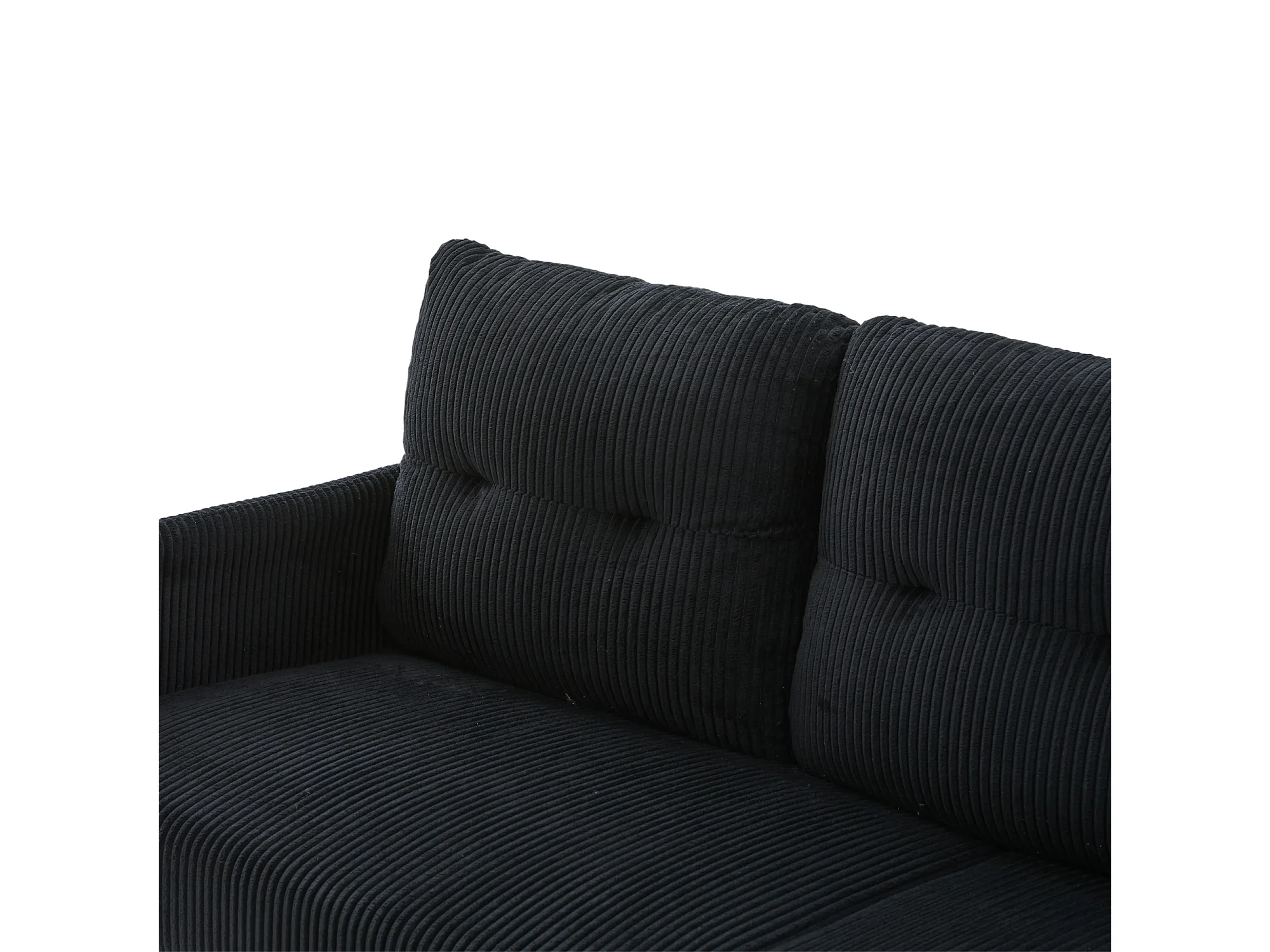 Canapé 3 places en velours côtelé noir - Pieds en métal