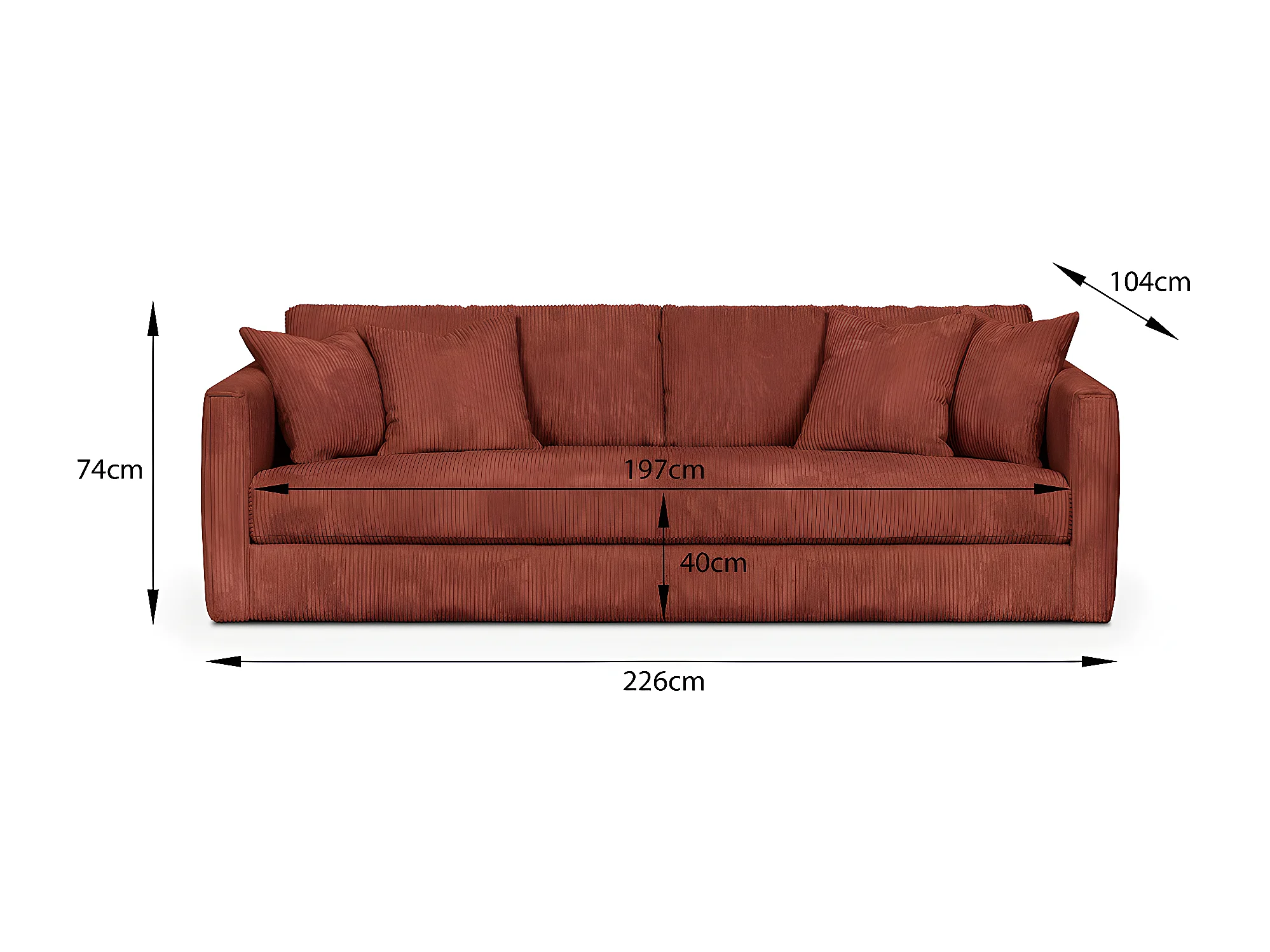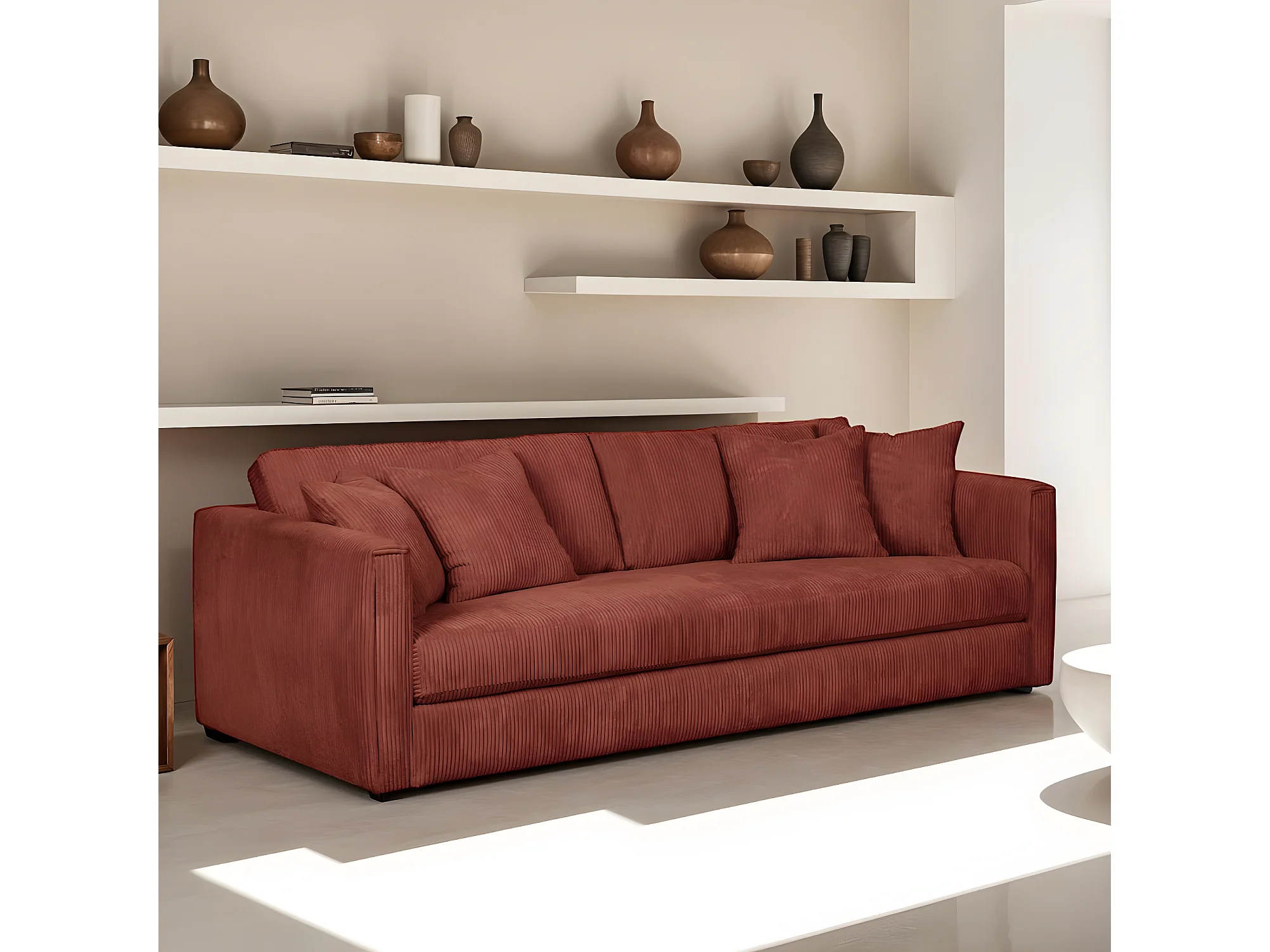 Canapé 4 places en velours côtelé rouille + 4 coussins - Denver