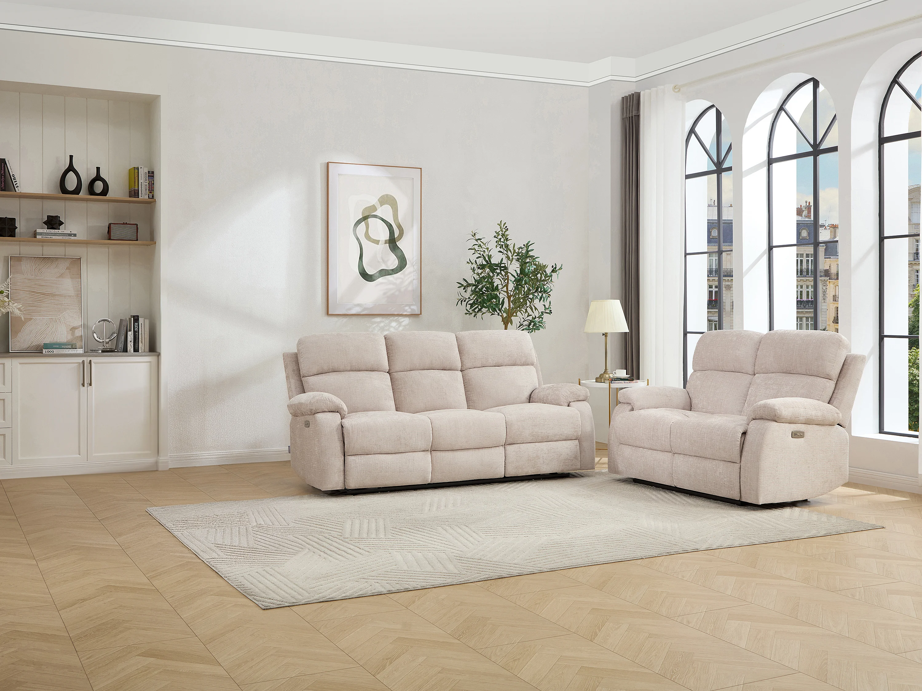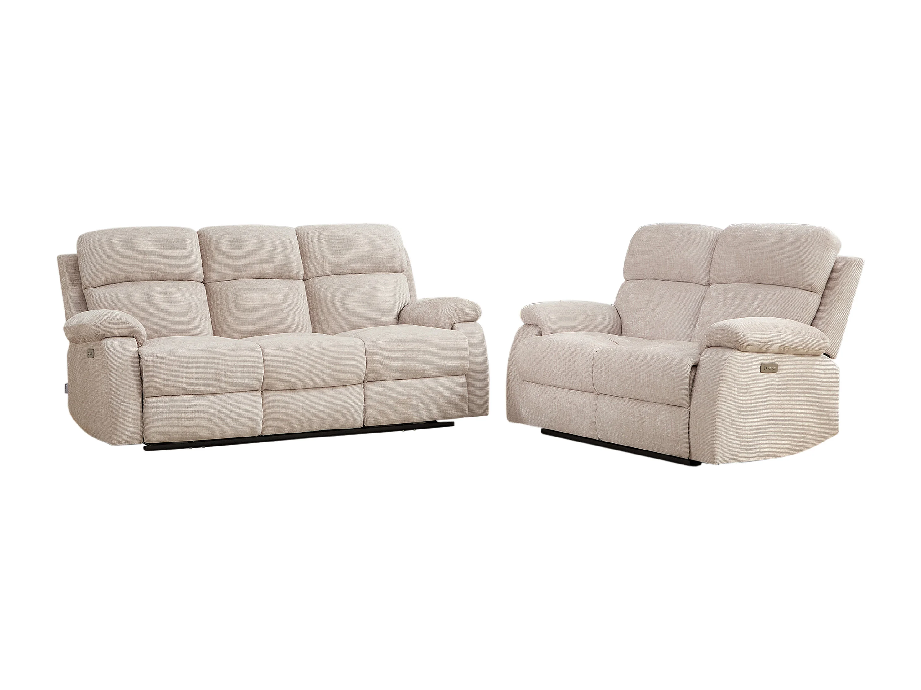Canapé 3 places et 2 places relax électrique massant en tissu chenille beige KOCENI