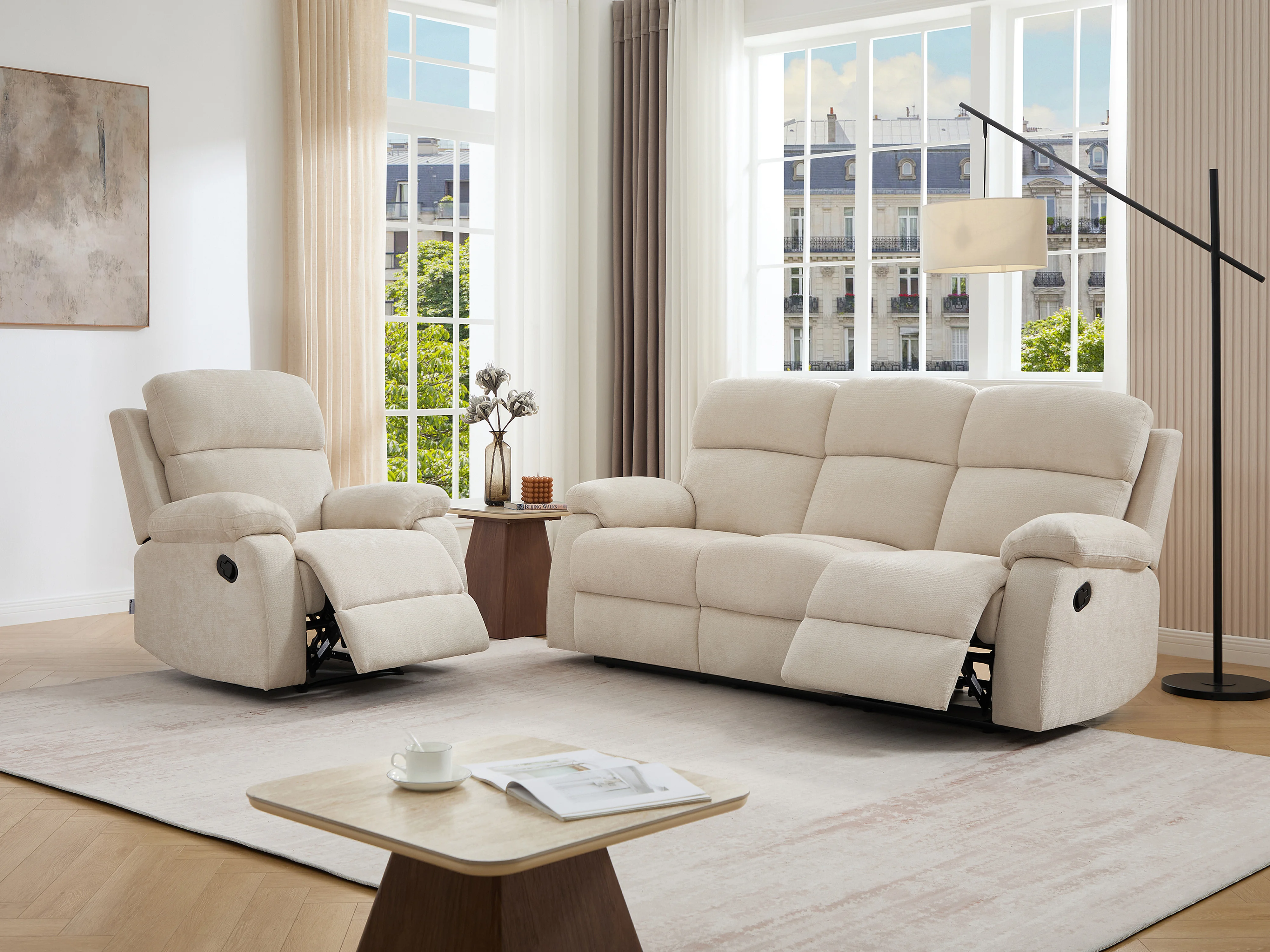 Canapé 3 places et un fauteuil relax en tissu texturé beige TOLZANO