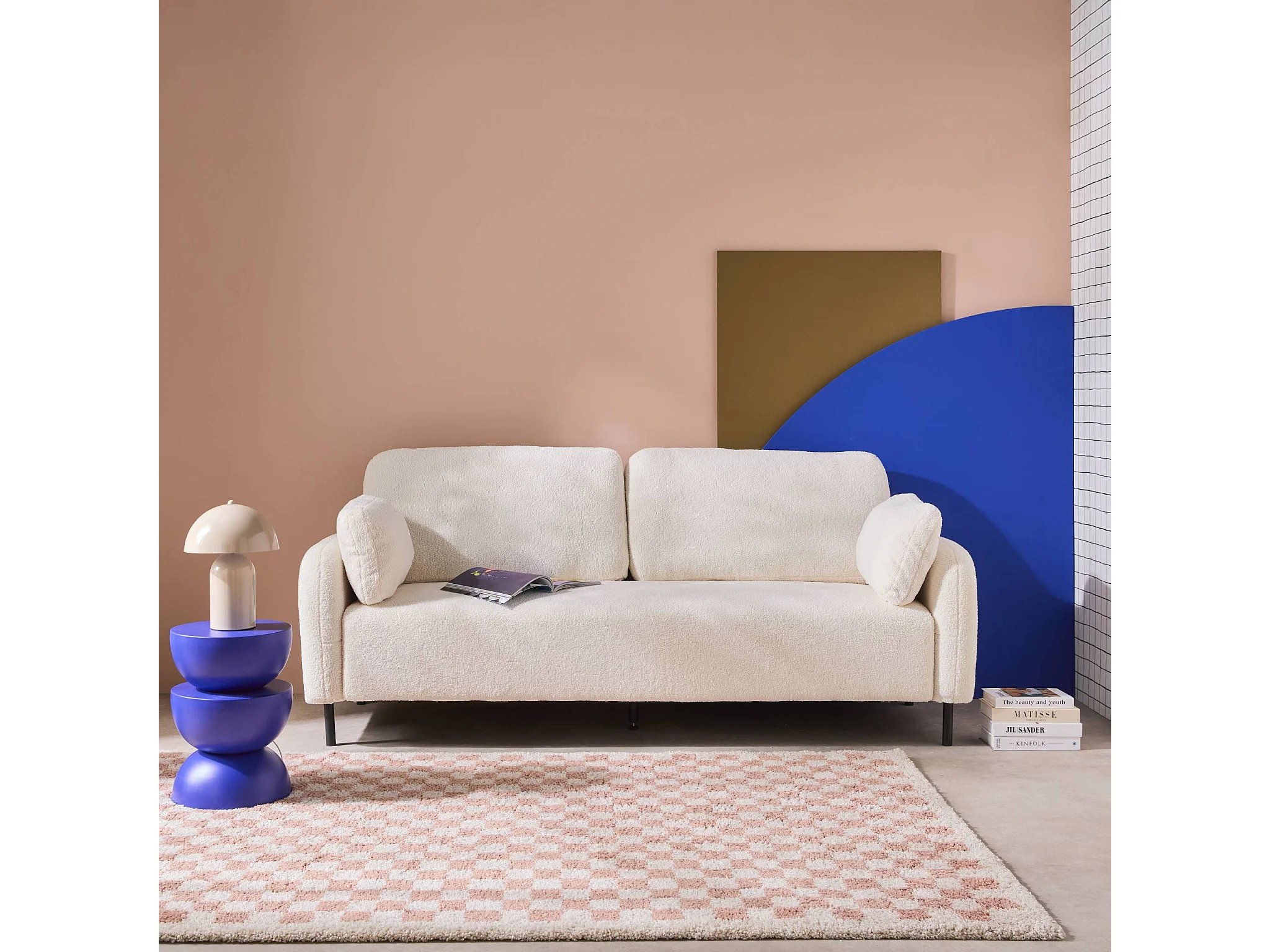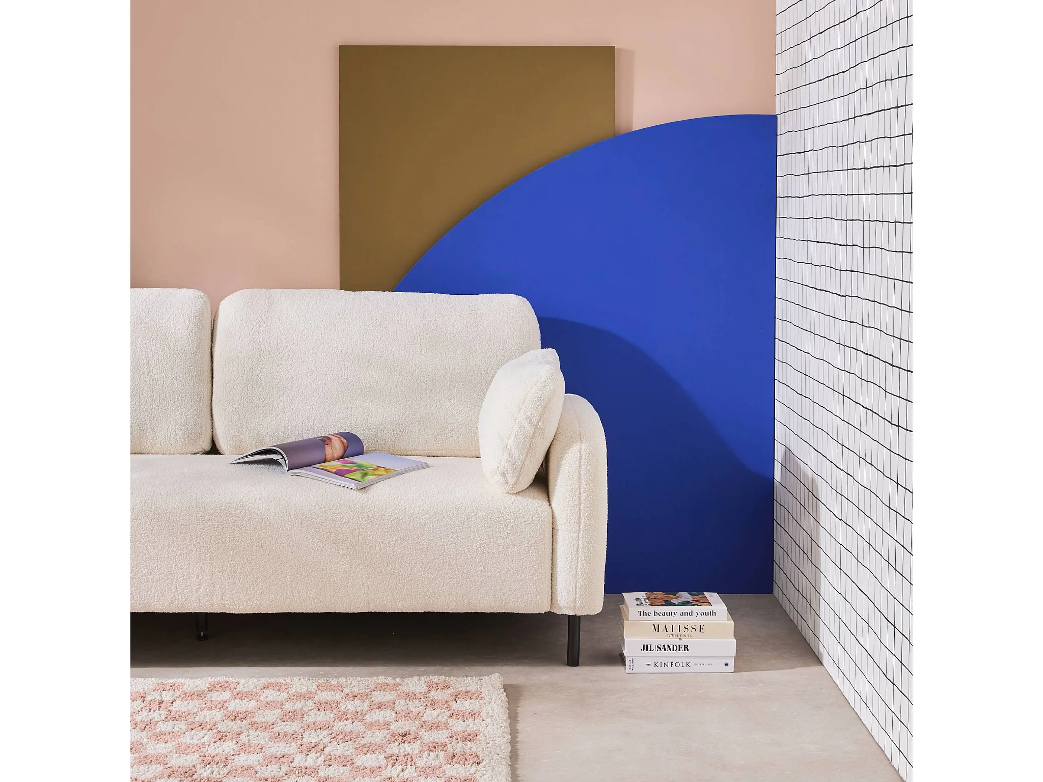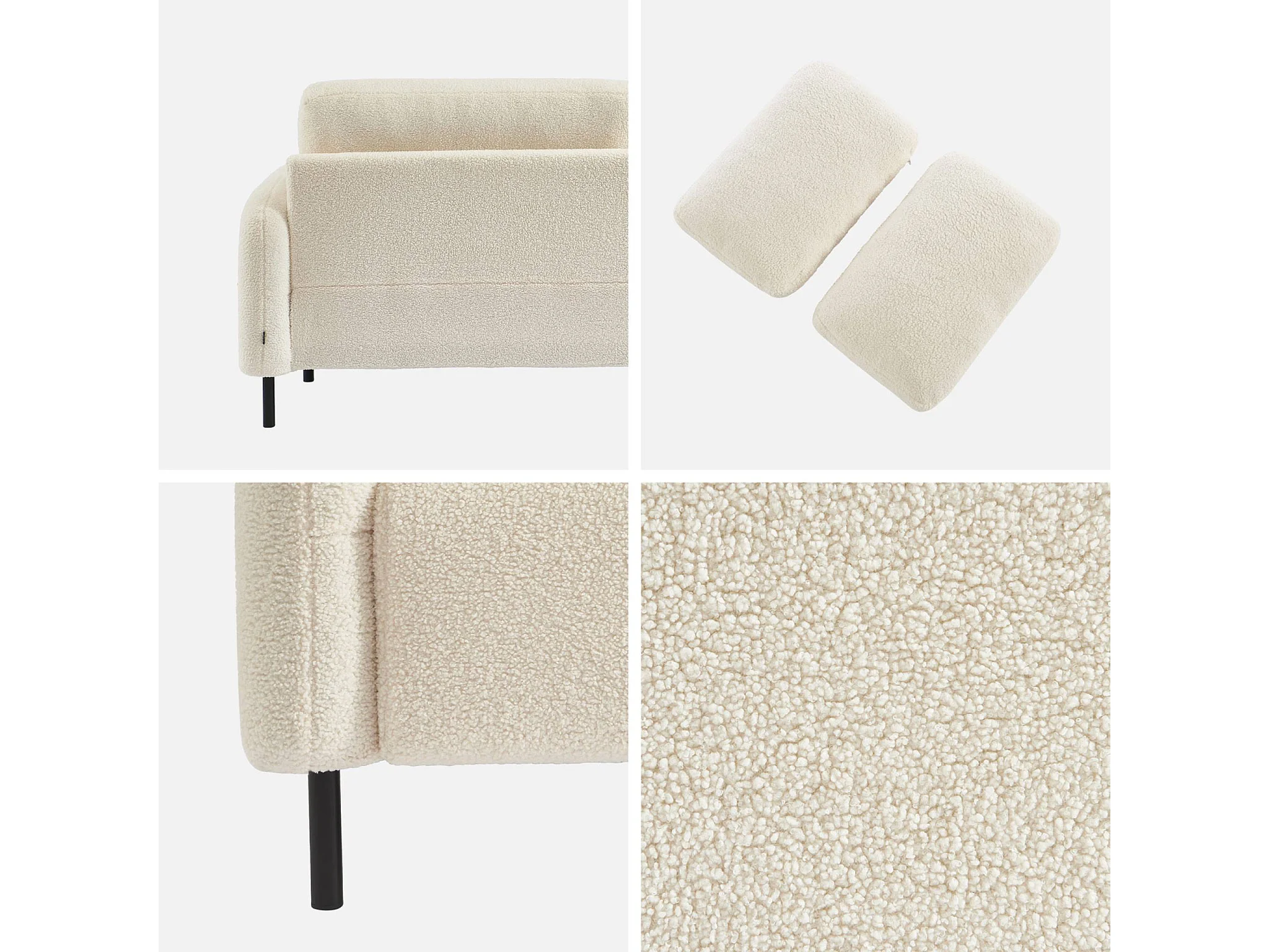 Canapé 3 places eucalyptus. bouclette crème et piétement métal Teddy