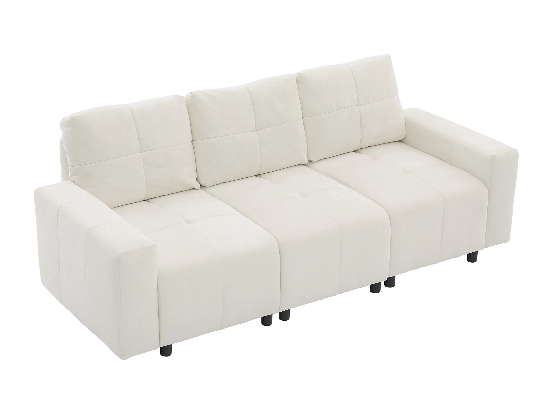 Canapé 3 places - Fonction couchage - Dossier réglable - Structure en bois massif - Tissu chenille - Blanc cassé