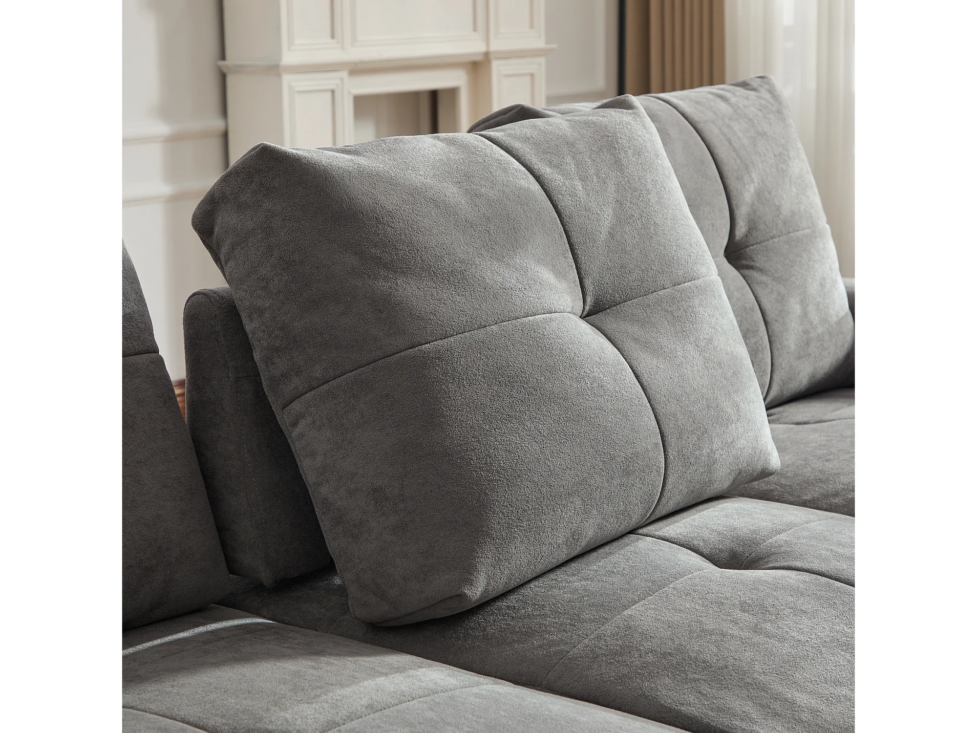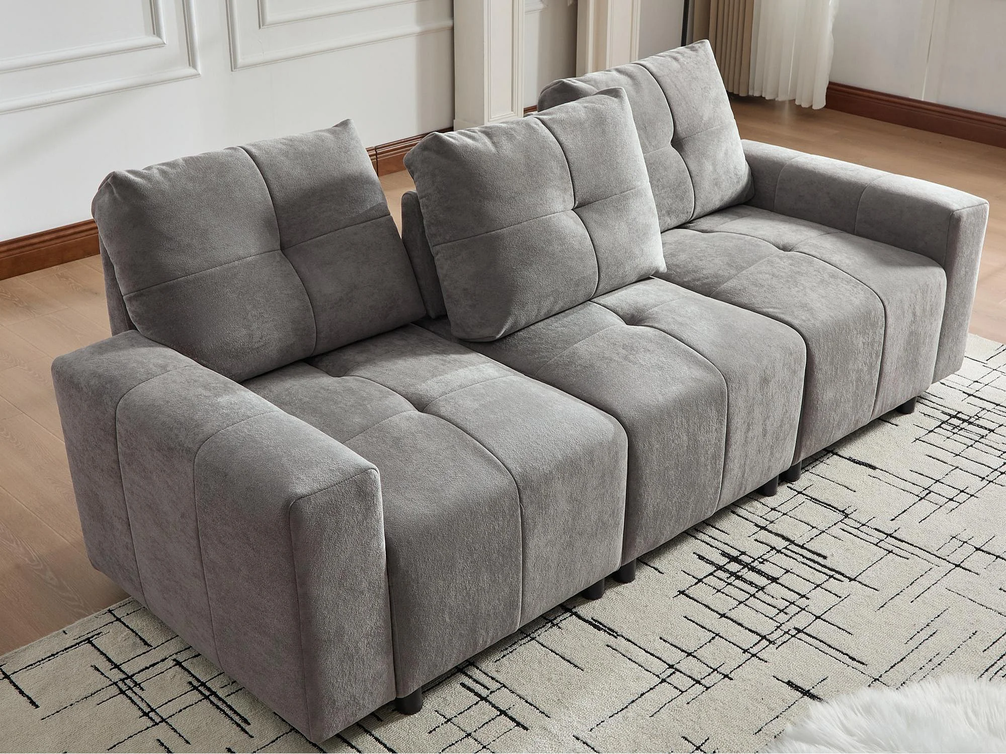 Canapé 3 places - Fonction couchage - Dossier réglable - Structure en bois massif - Tissu chenille - Gris