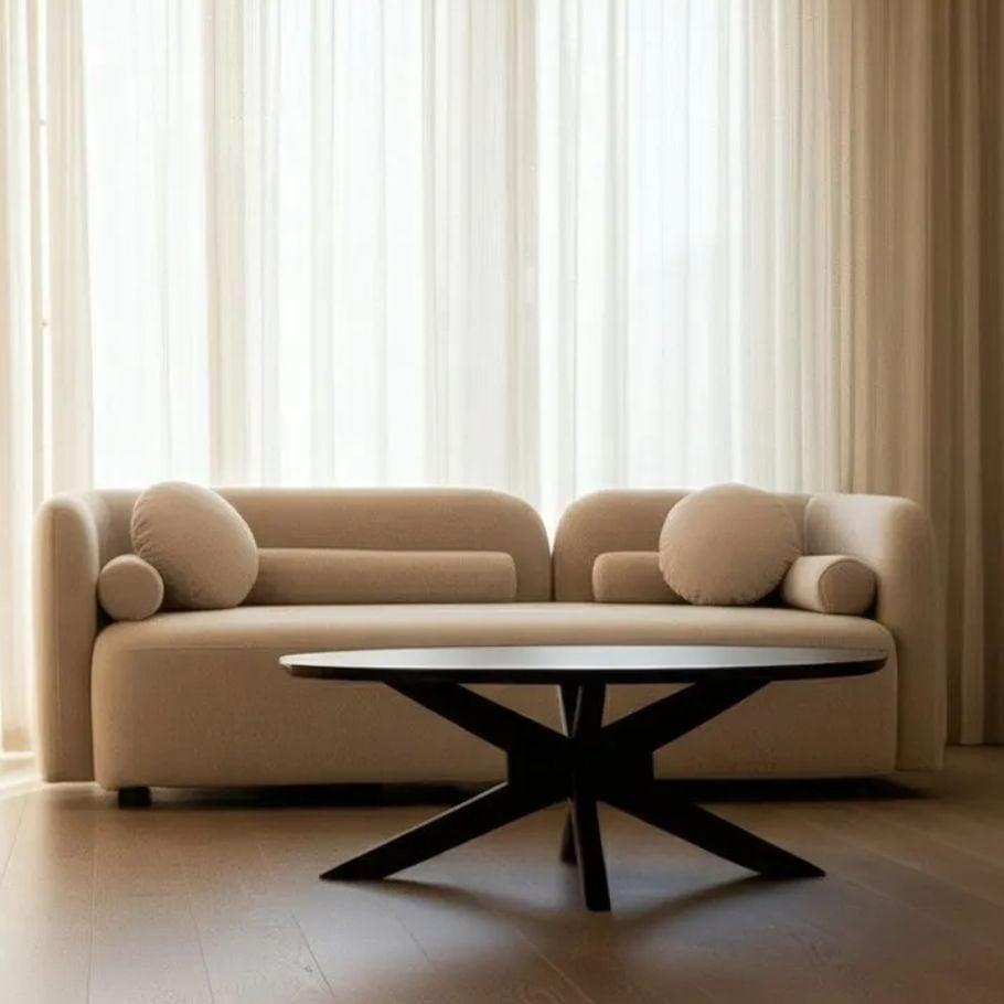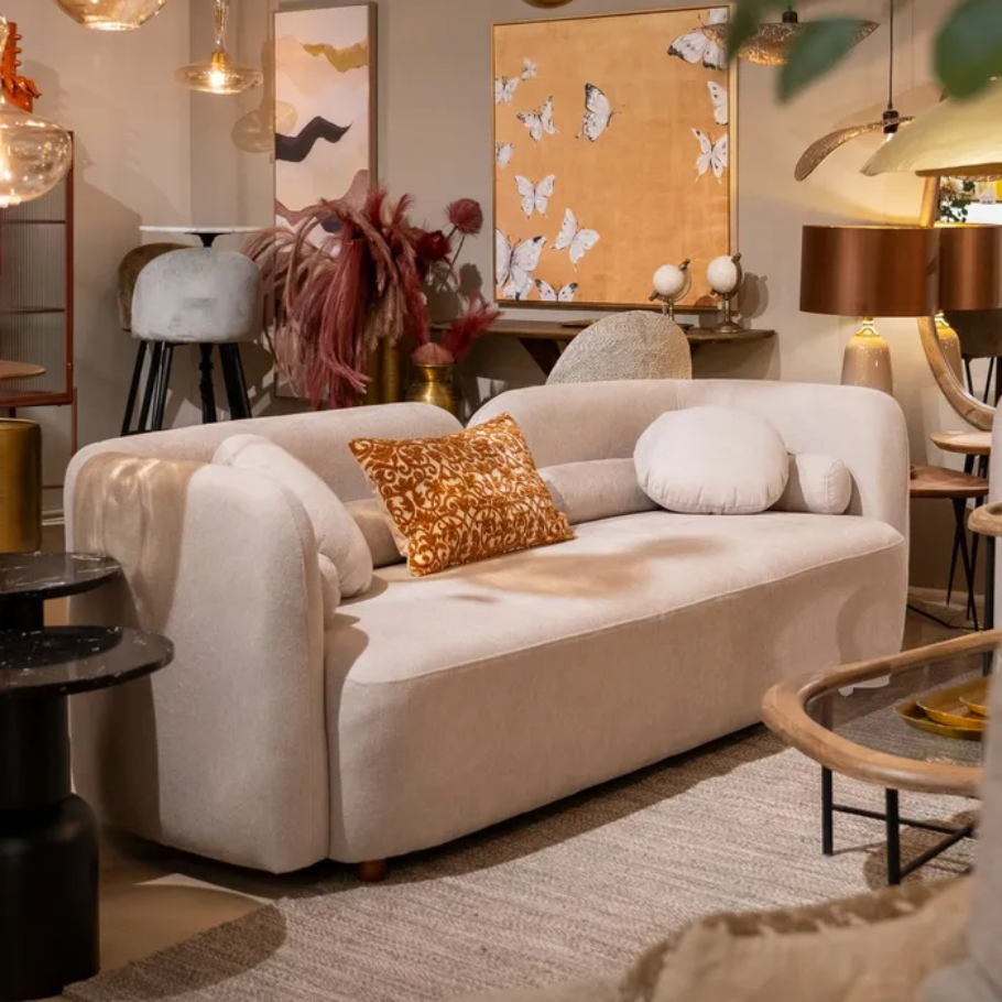Canapé 3 places galbé avec coussins déco LUMINIS