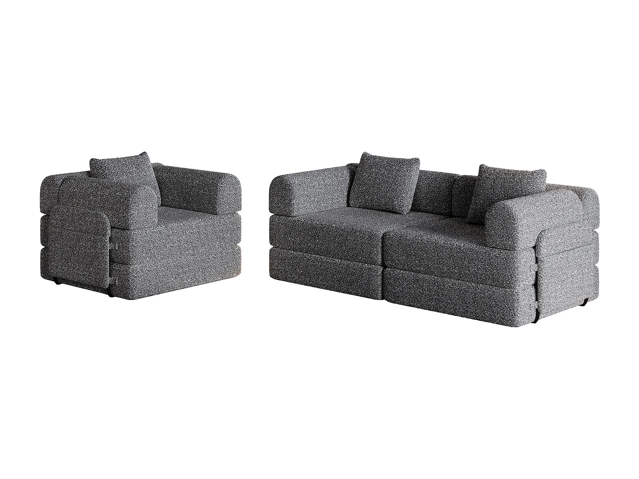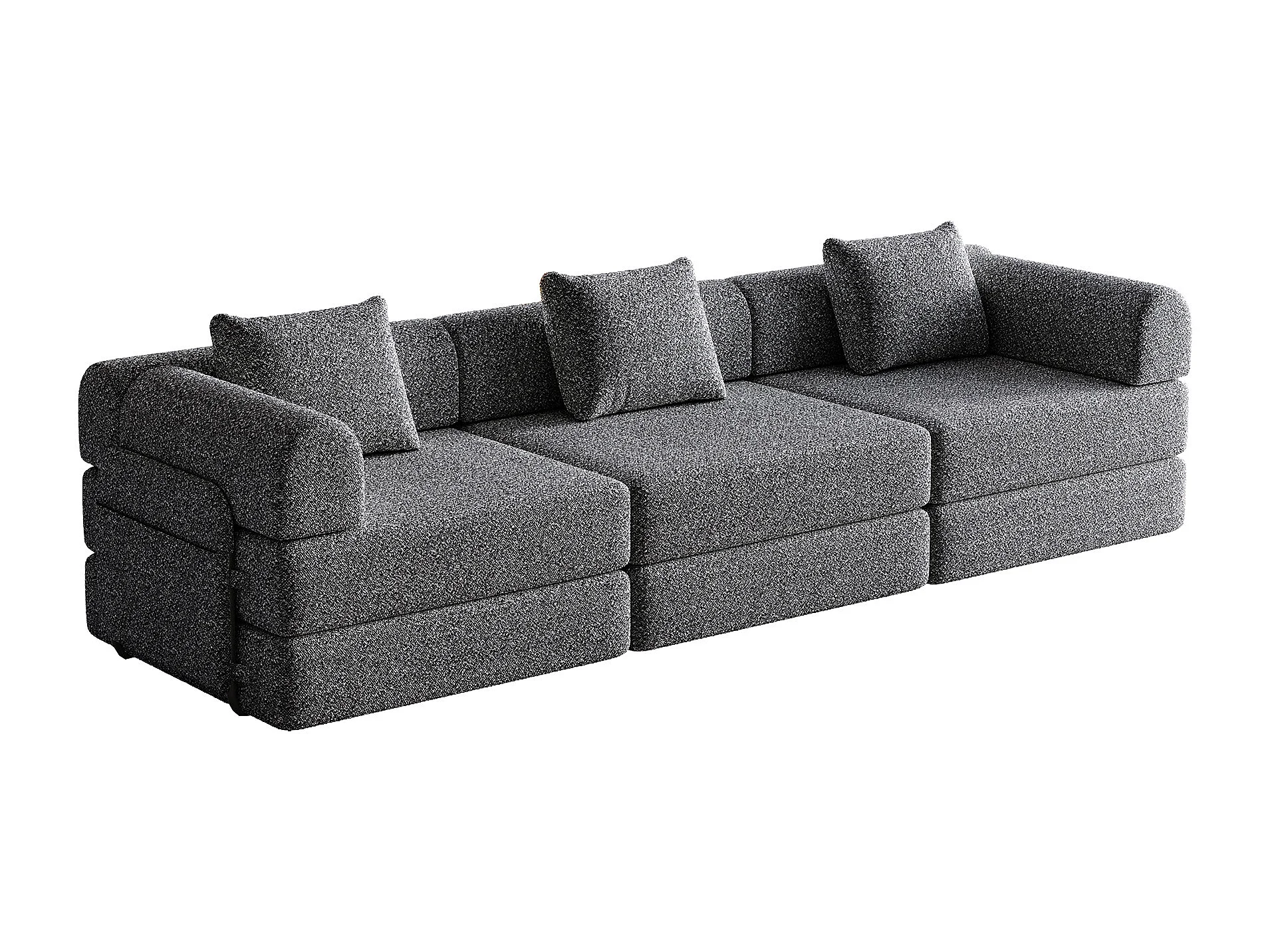 Canapé 3 places gris - Canapé droit avec espace de rangement et 3 structures métalliques - chenille