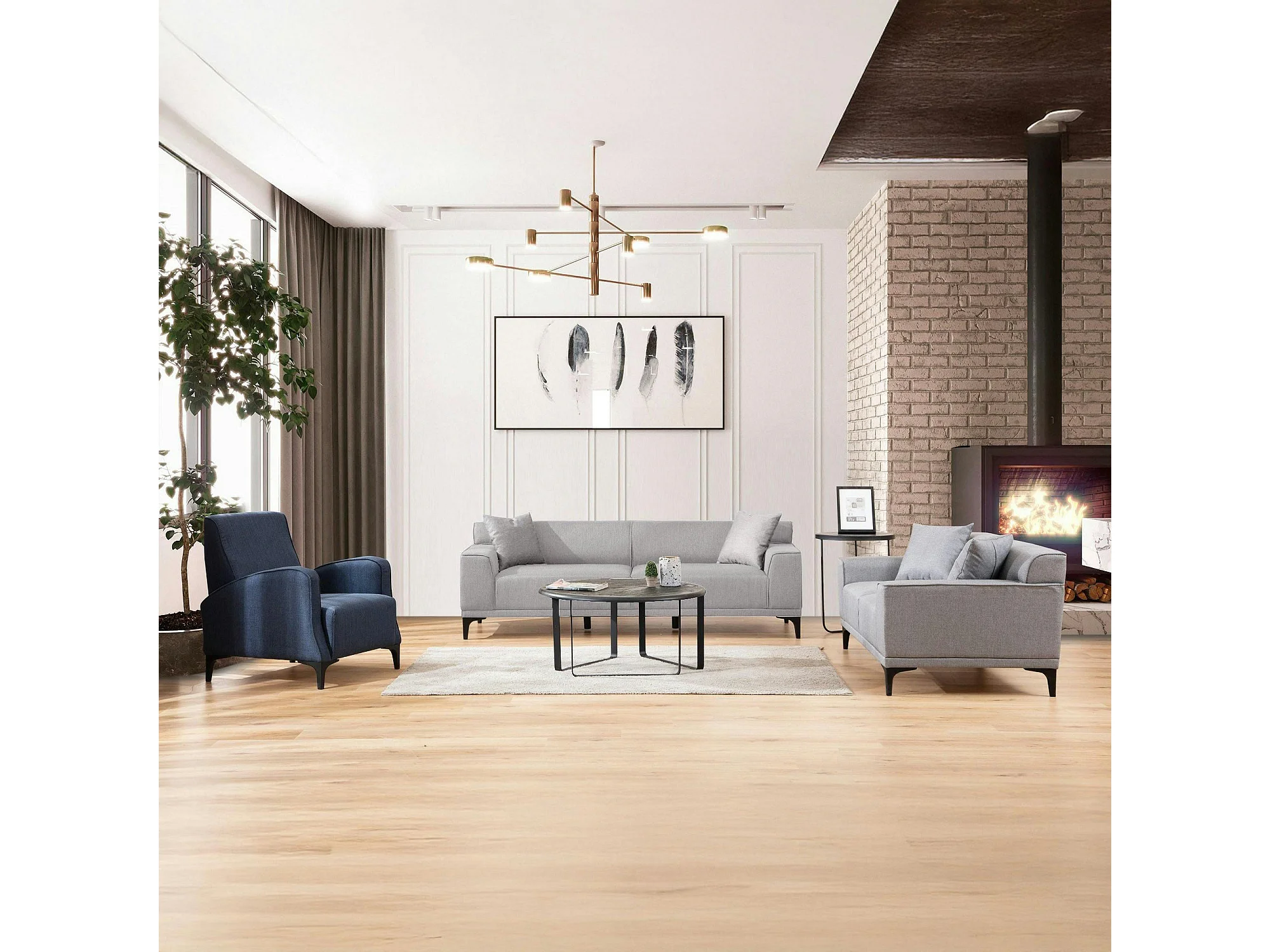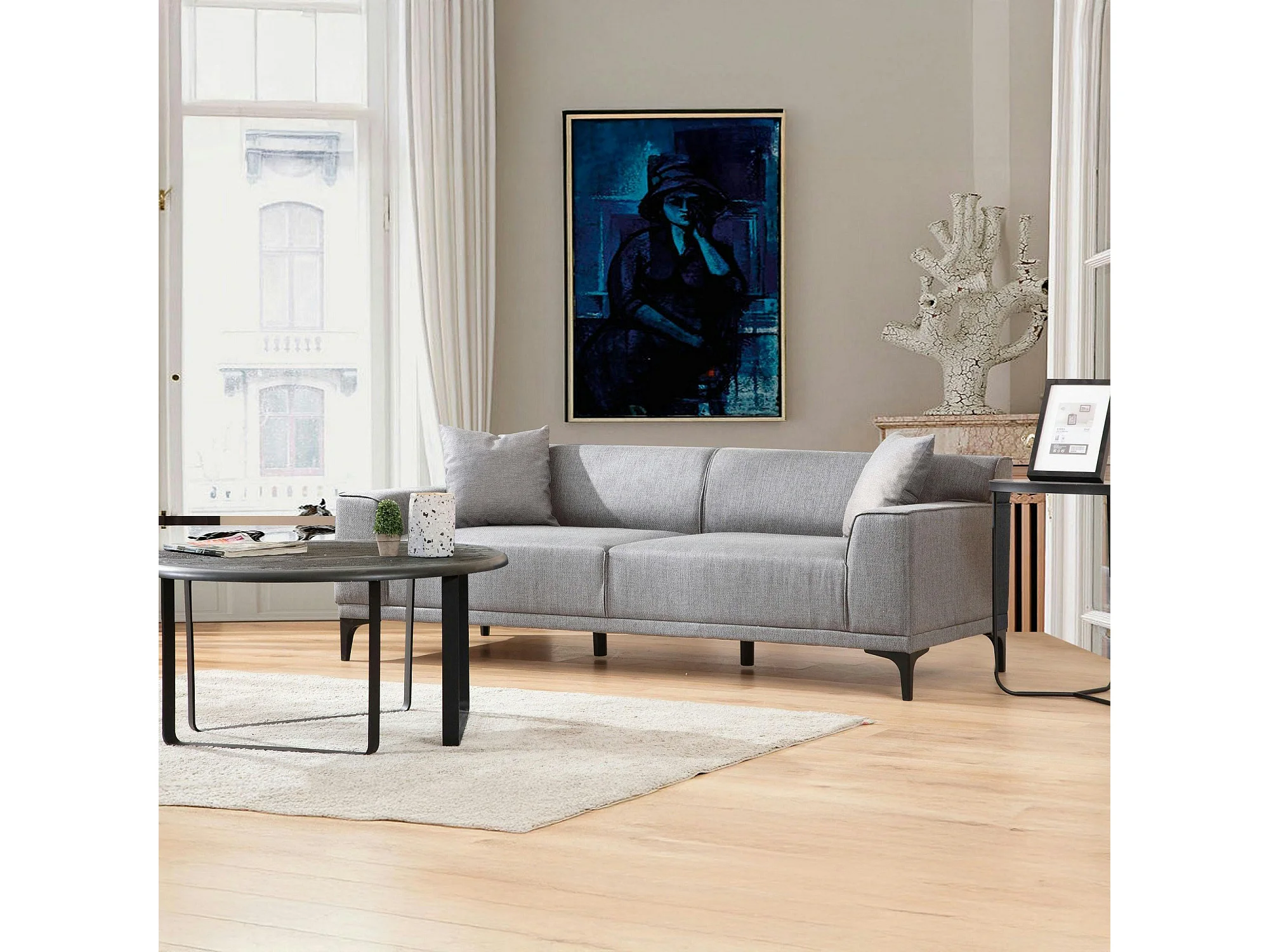 Canapé 3 places gris clair - accoudoirs larges ORSAY