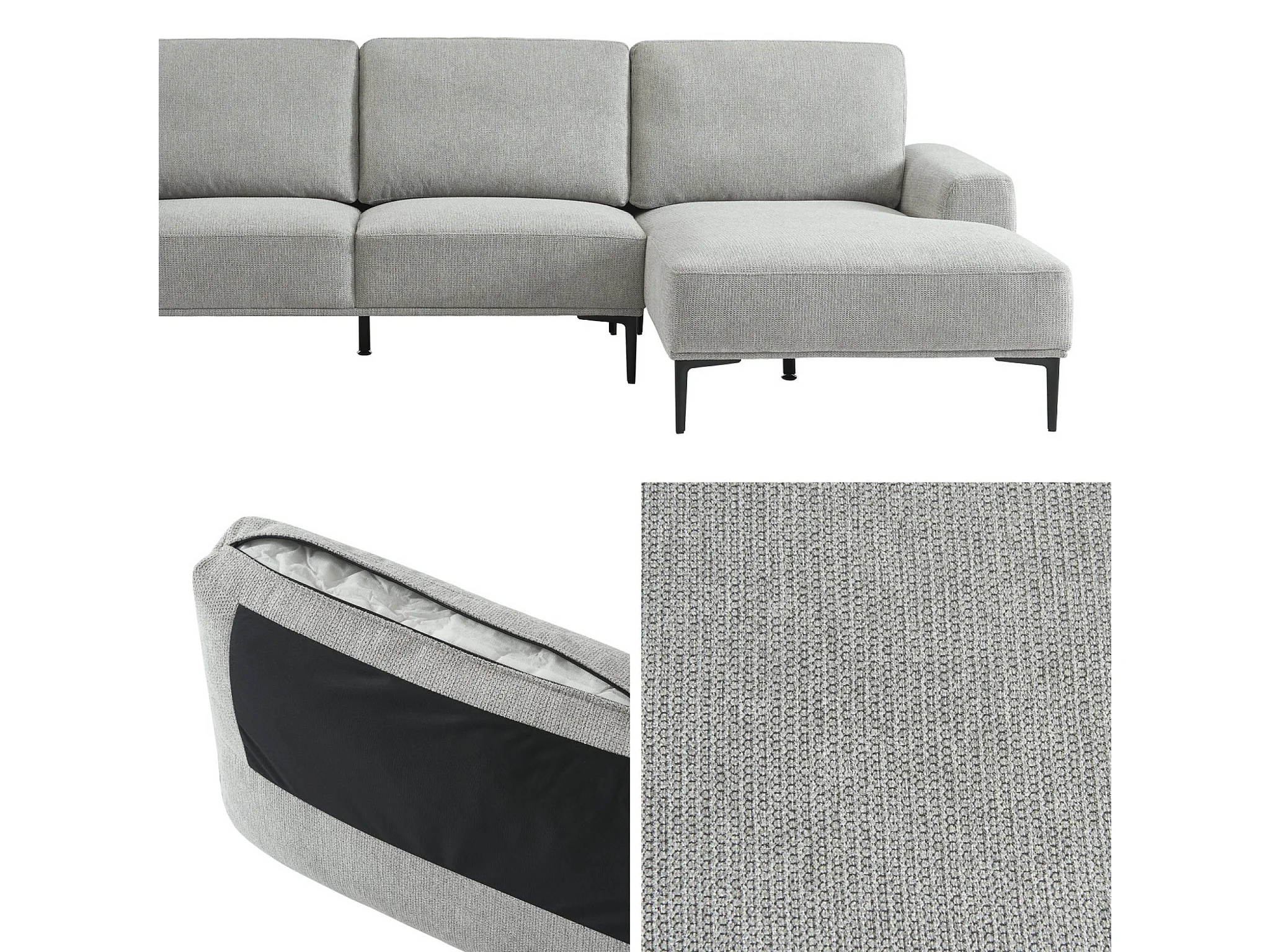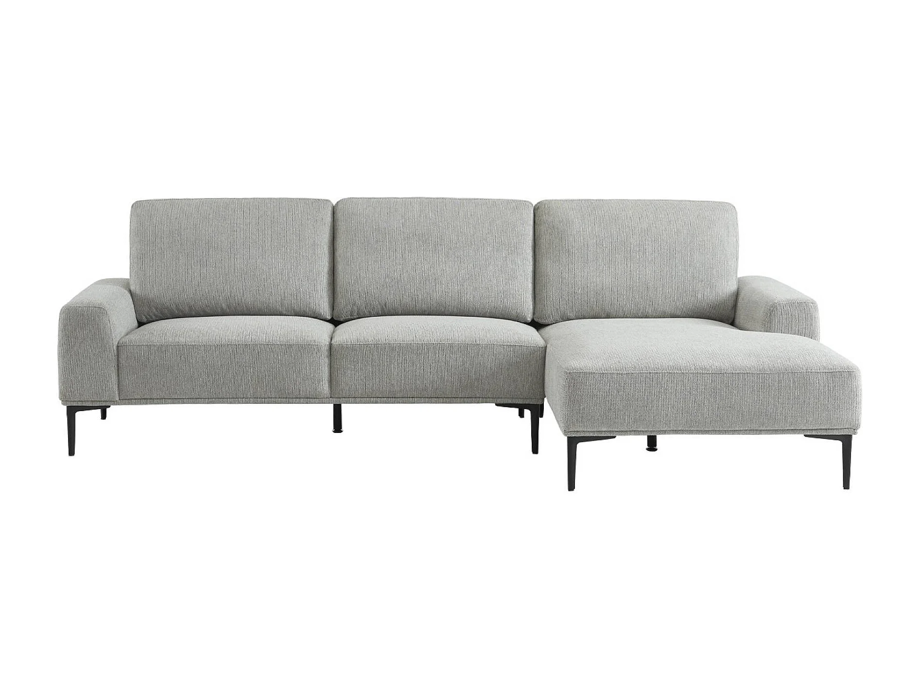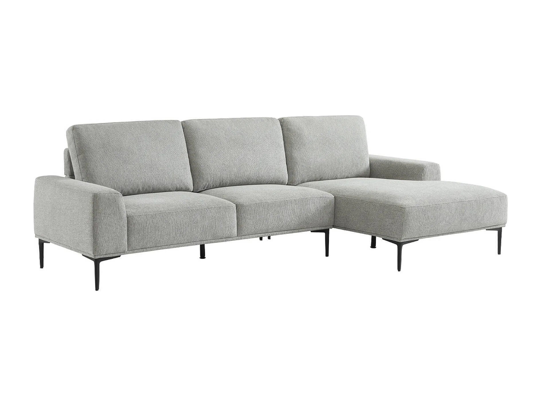 Canapé 3 places gris clair angle à droite et structure / piètement métal noir