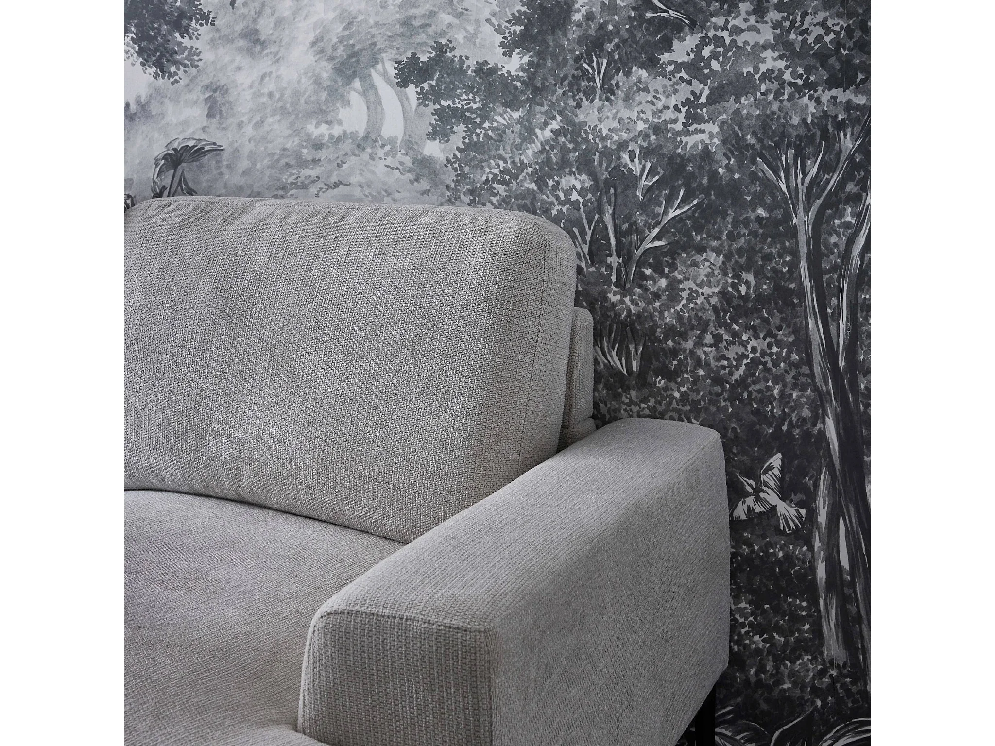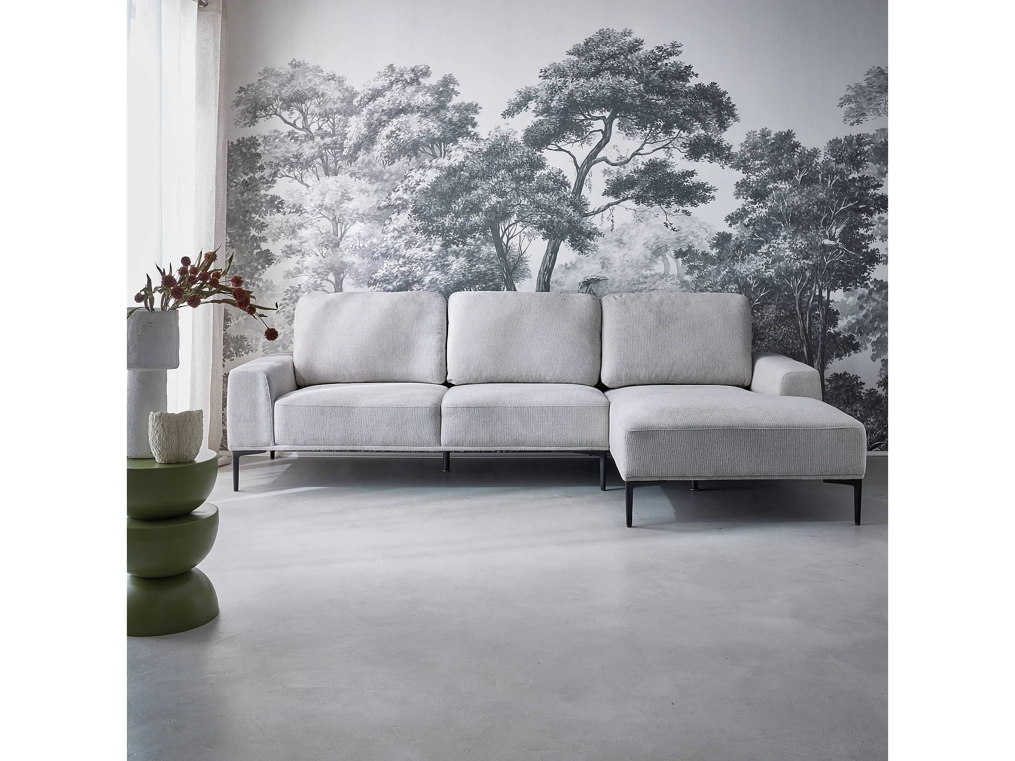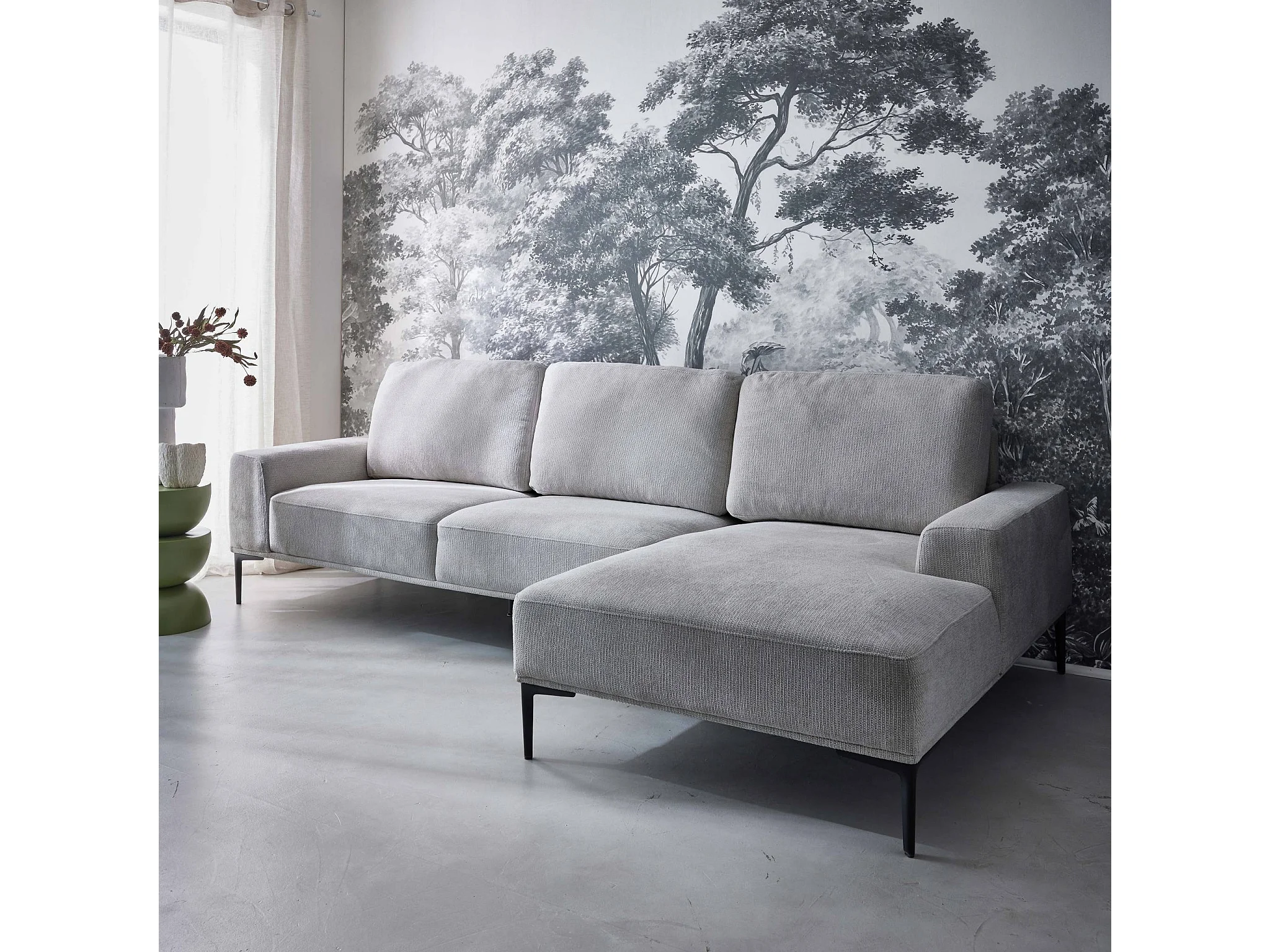 Canapé 3 places gris clair angle à droite et structure / piètement métal noir