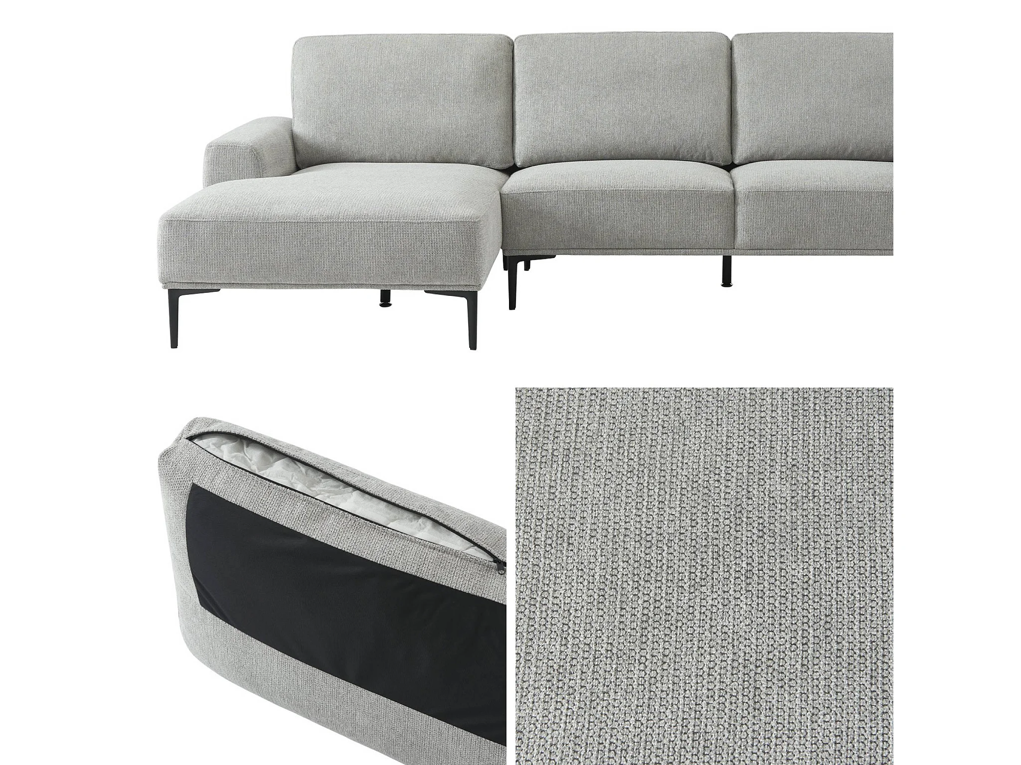 Canapé 3 places gris clair angle gauche et structure / piètement métal noir