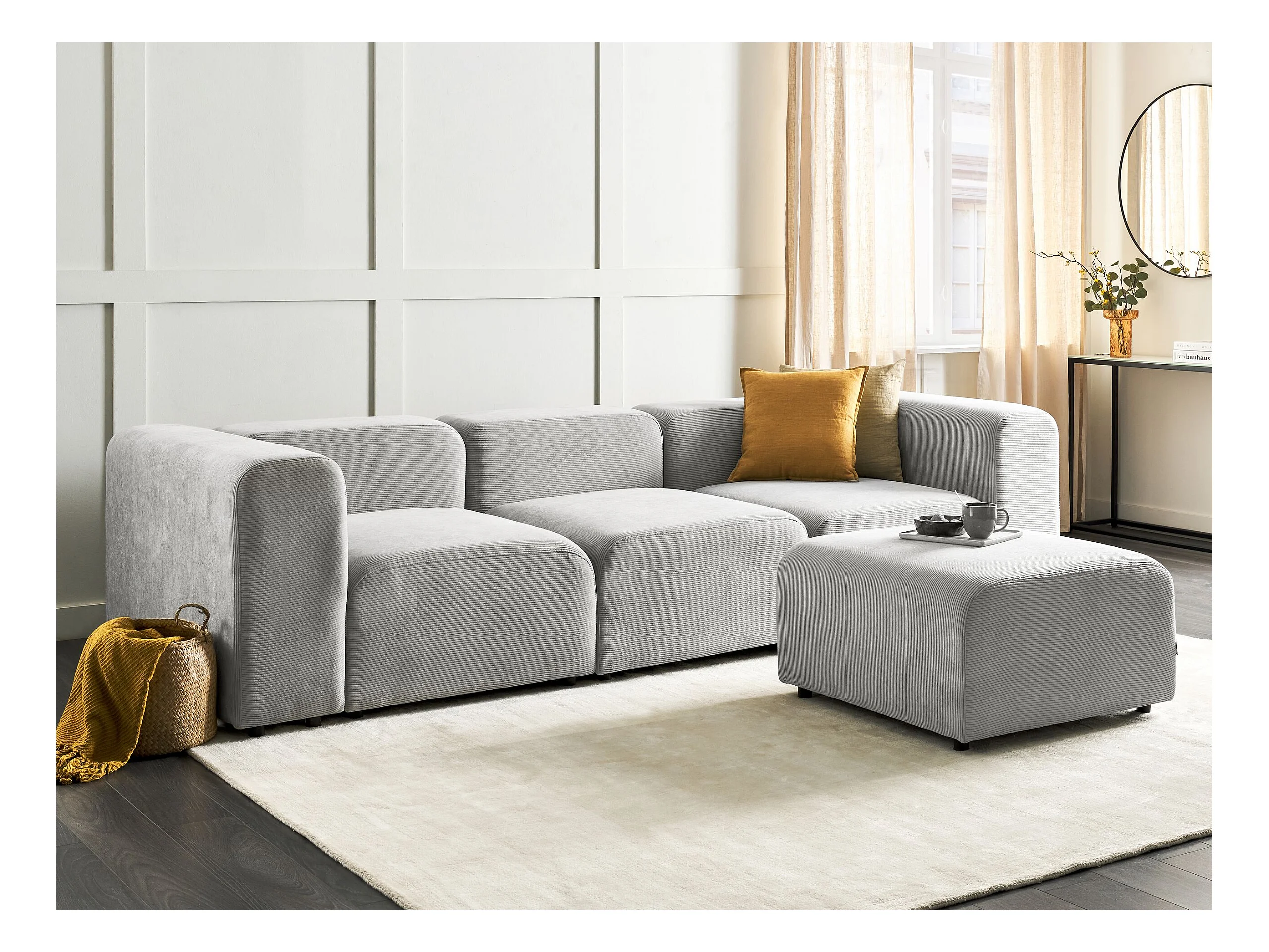 Canapé modulable 3 places FALSTERBO Velours côtelé Gris avec ottoman