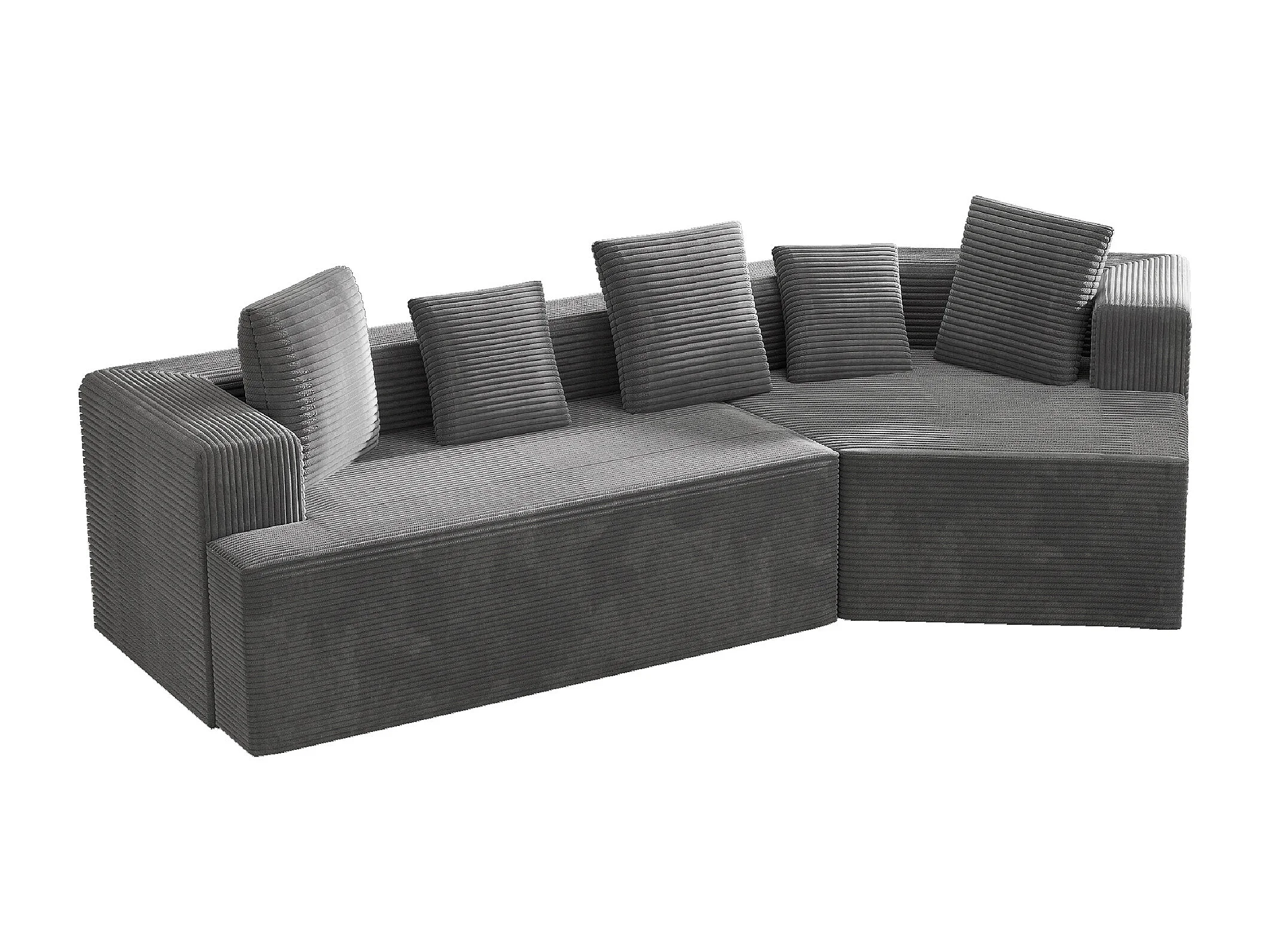 Canapé 3 places modulaire en velours côtelé - Sans montage - Gris