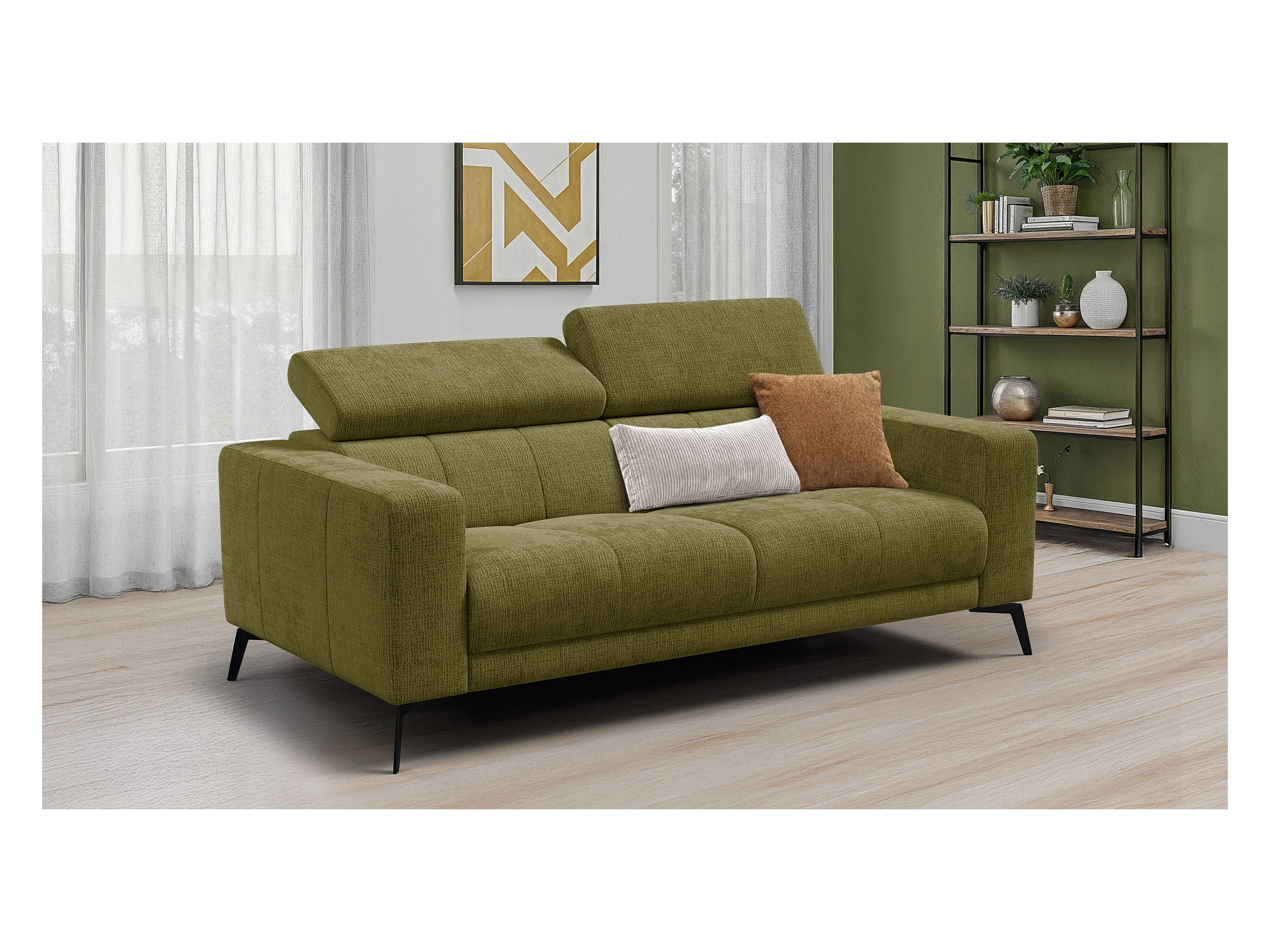 Canapé 3 places MORELLO, tissu olive