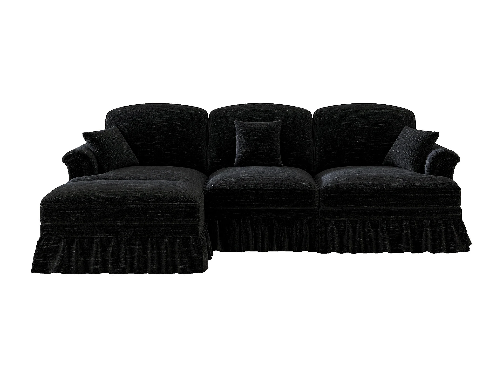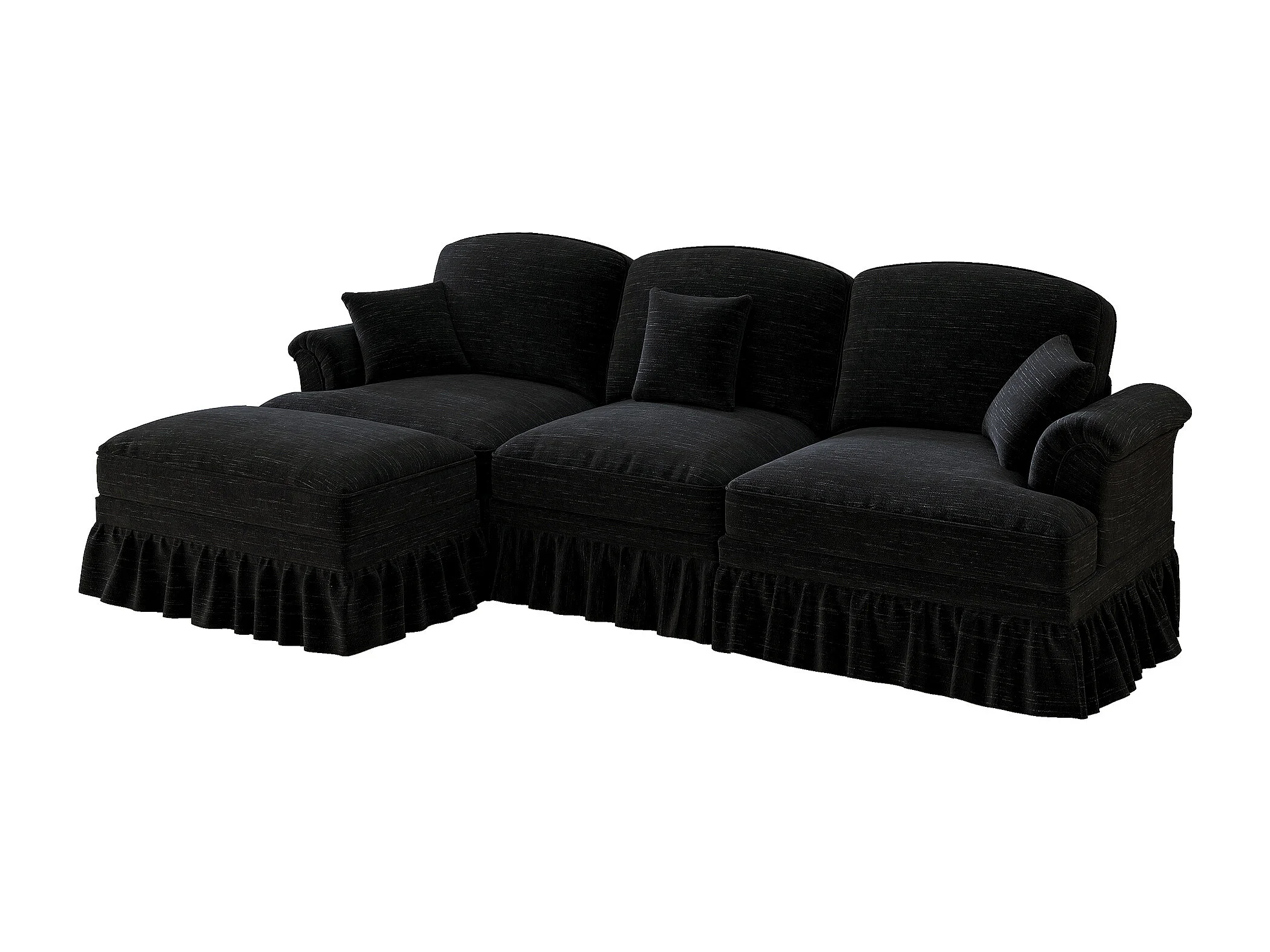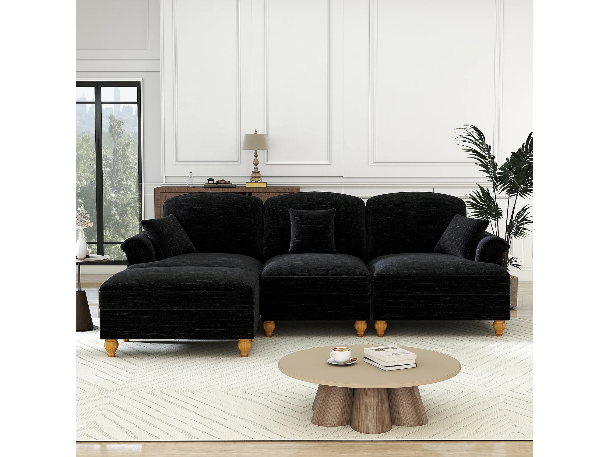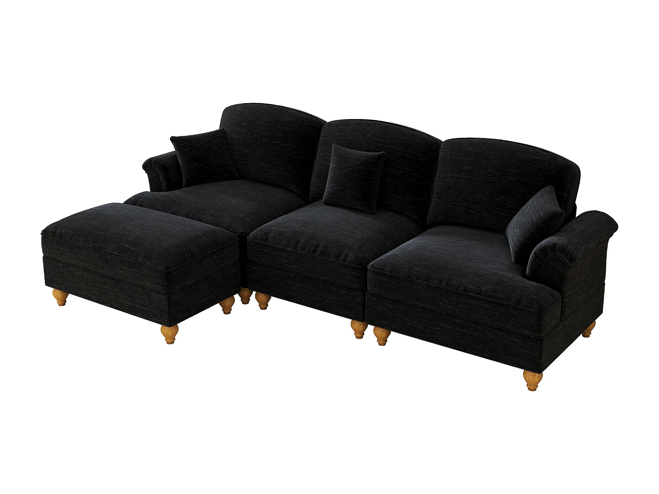 Canapé 3 places noir avec soutien lombaire - Repose-pieds mobile - Tissu chenille