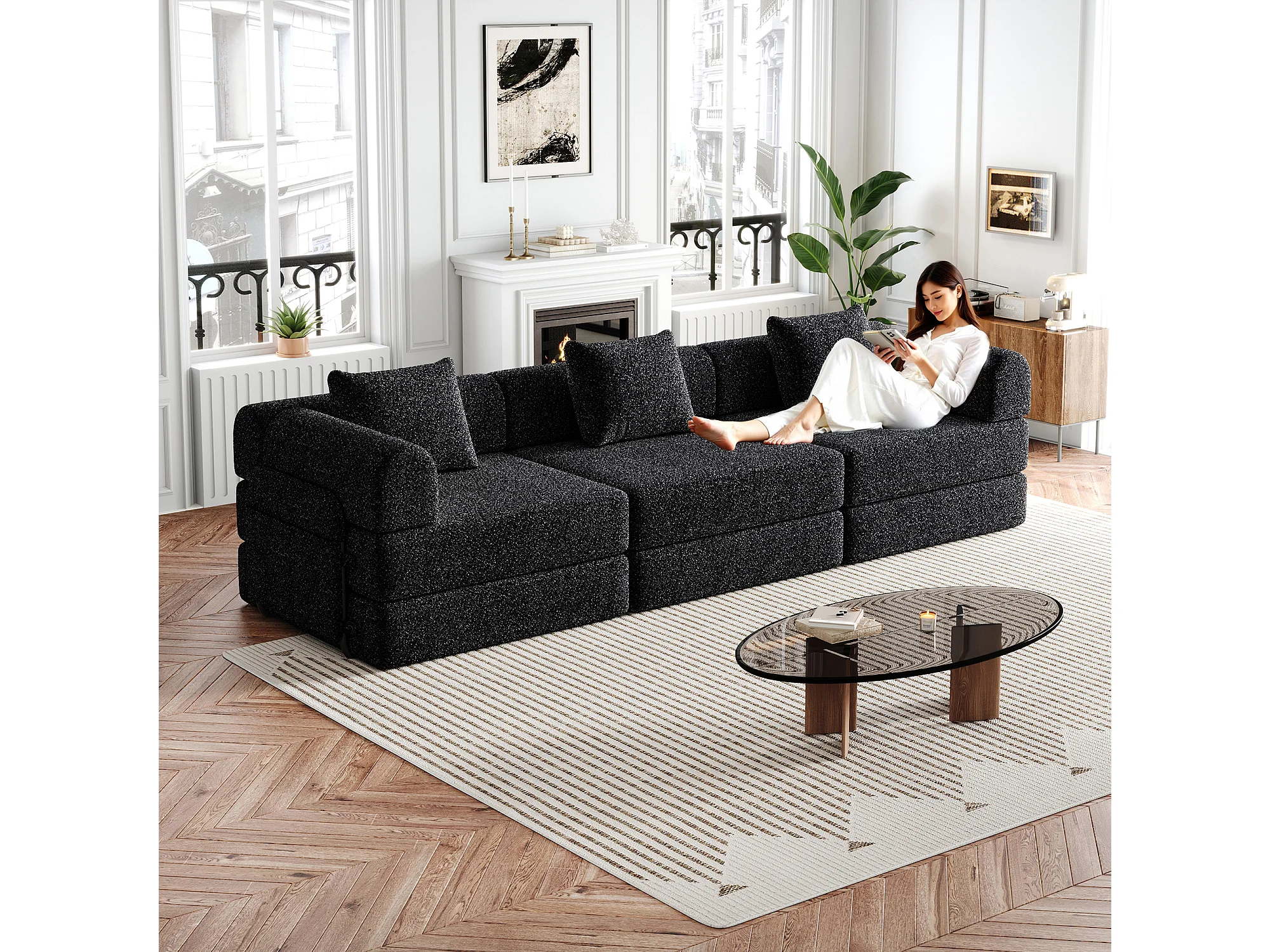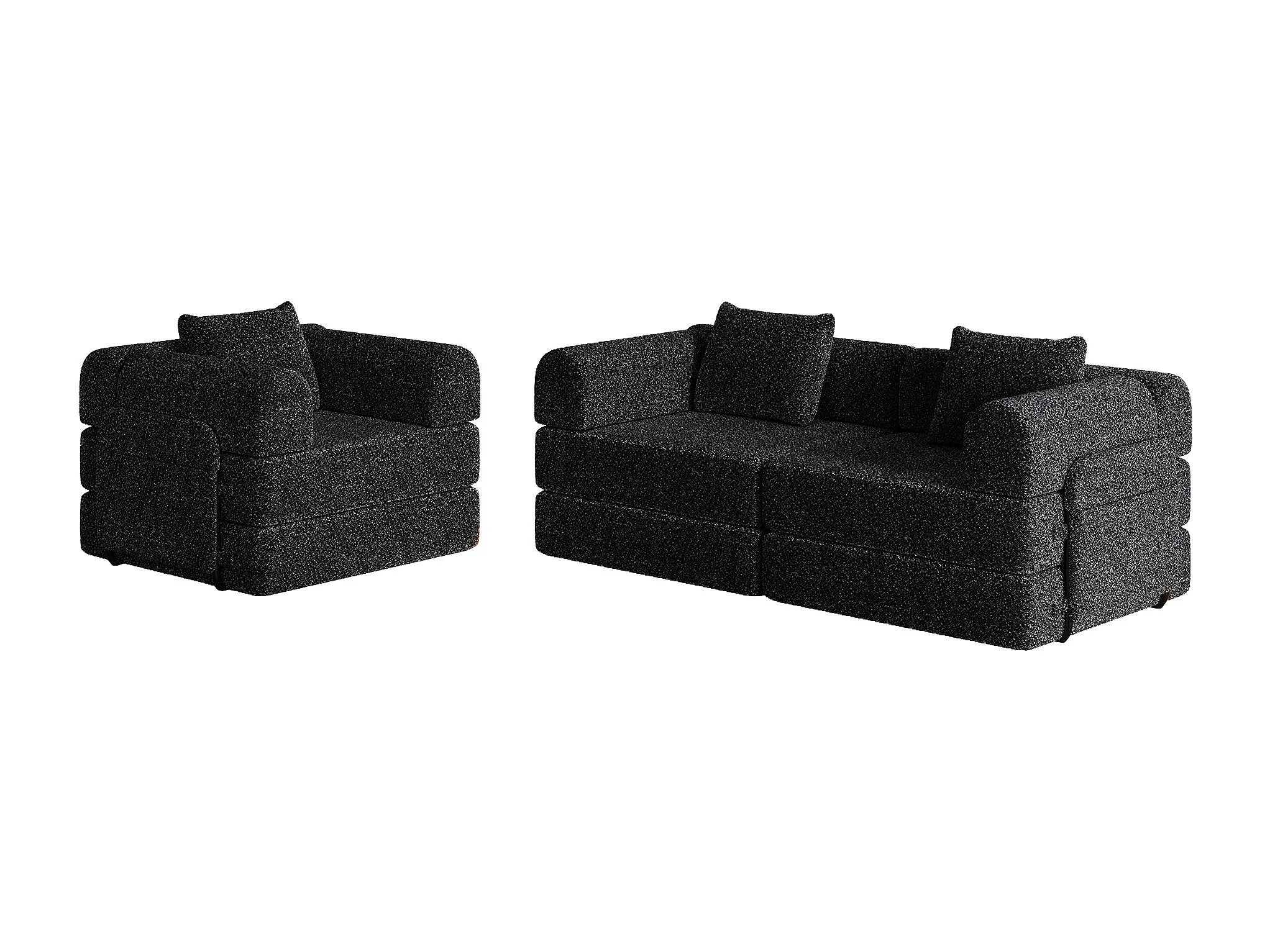 Canapé 3 places noir - Canapé droit avec espace de rangement et 3 structures métalliques - chenille