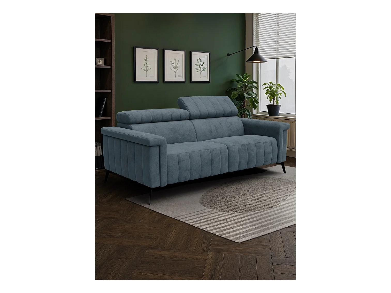 Canapé 3 places NORDEL, tissu bleu gris