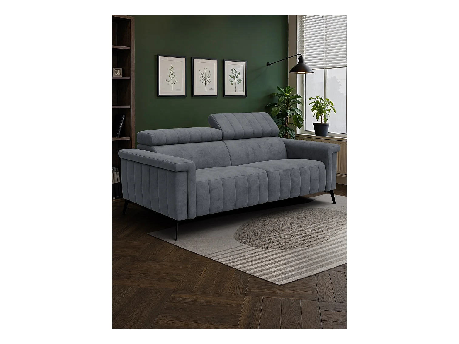 Canapé 3 places NORDEL, tissu gris foncé