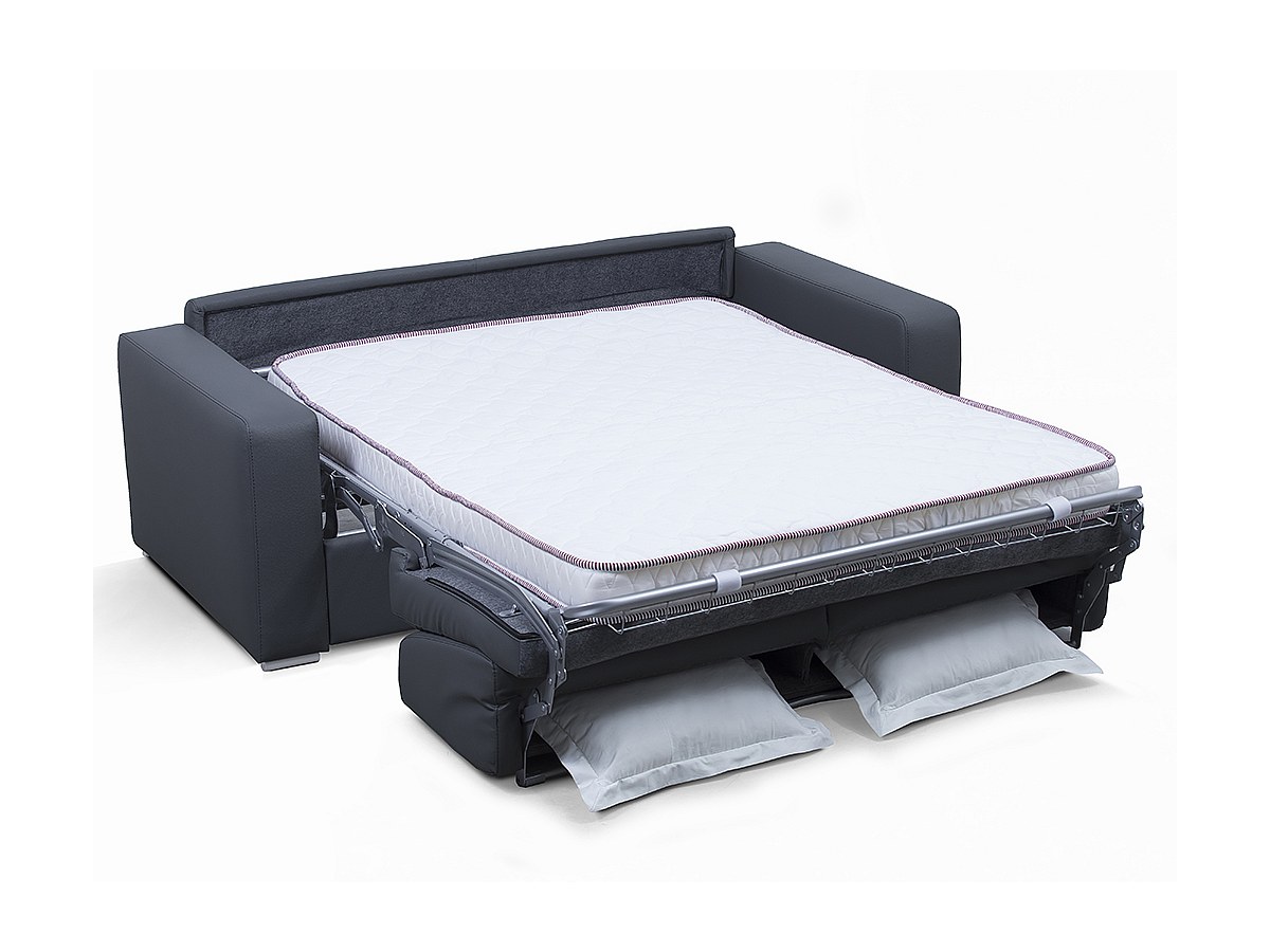 Canapé 3 places convertible express en simili EMIR II - Anthracite - Couchage 140 cm - Matelas 14 cm