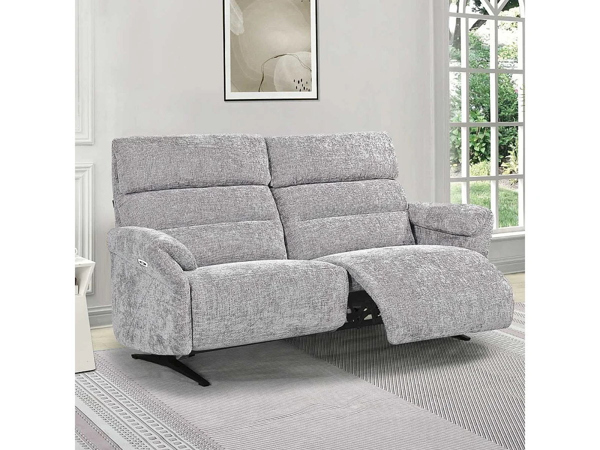 Canapé 3 places relax électrique tissu maillé ultra doux gris - LAMA