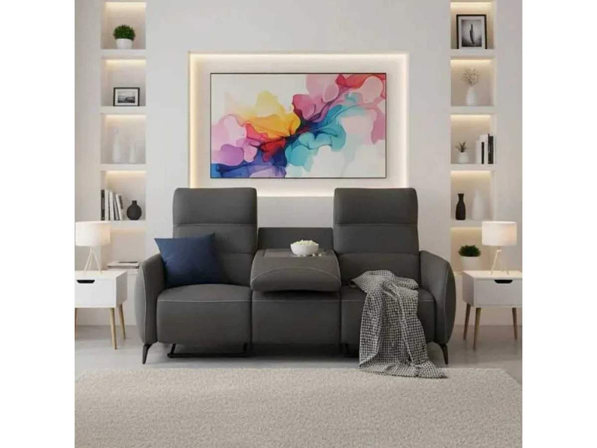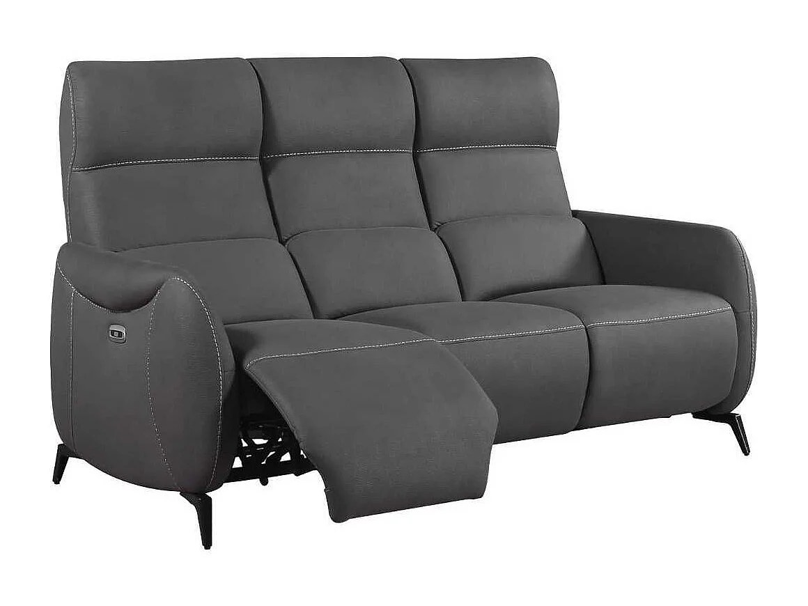 Canapé 3 places relax électrique tissu micro peau ultra doux gris foncé avec tablette centrale - SMALK