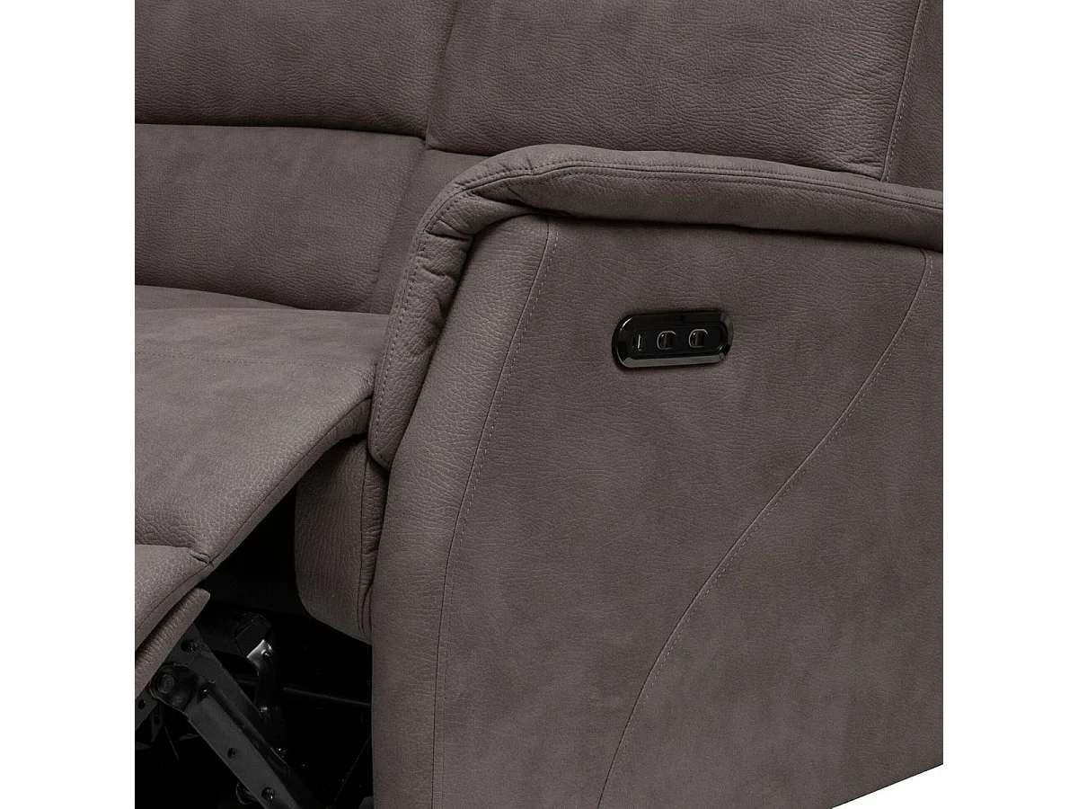 Canapé 3 places relax électrique tissu polyester imitation cuir gris-brun marbré - DONATELLO