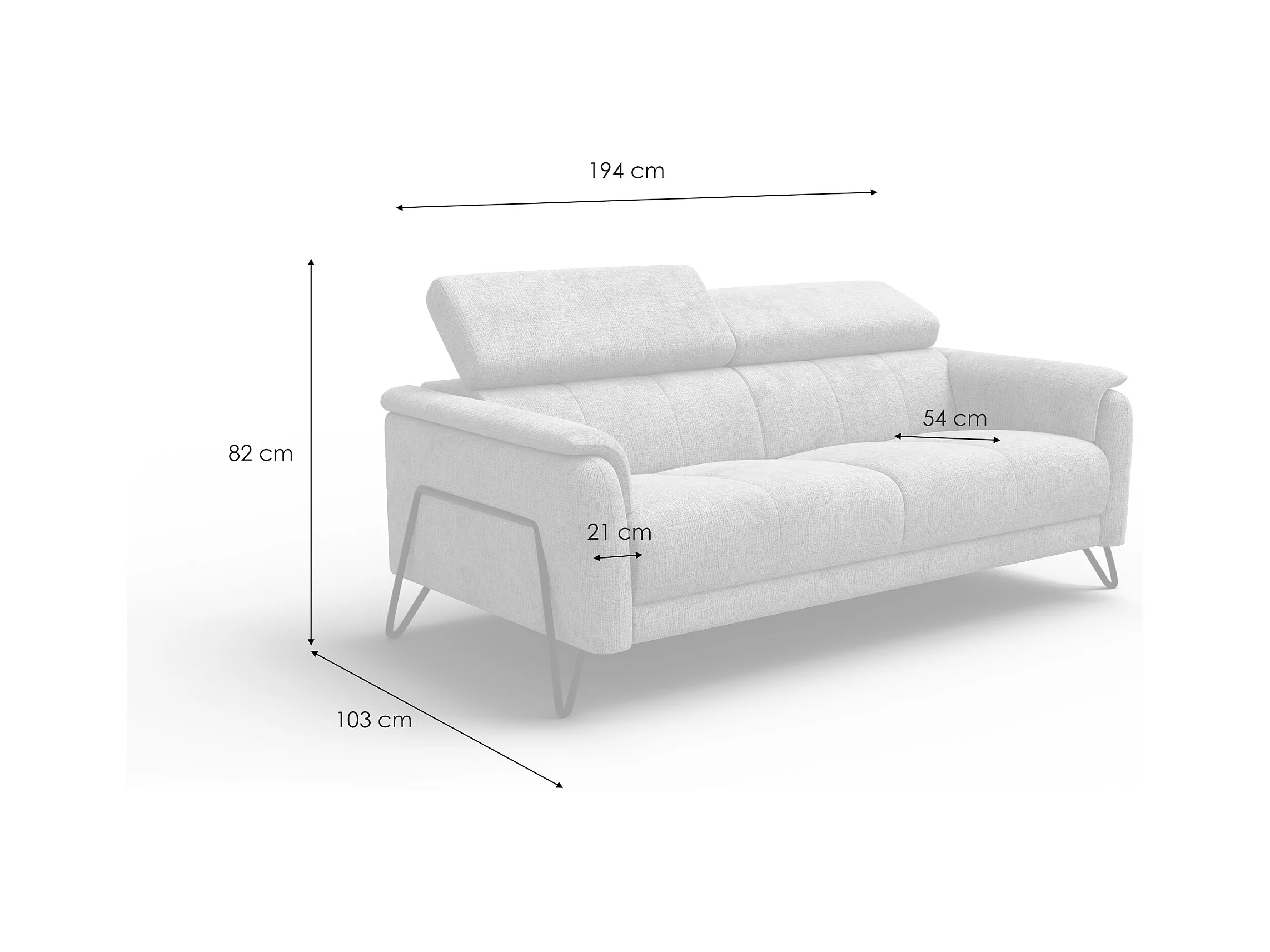 Canapé 3 places RODEN, tissu gris foncé