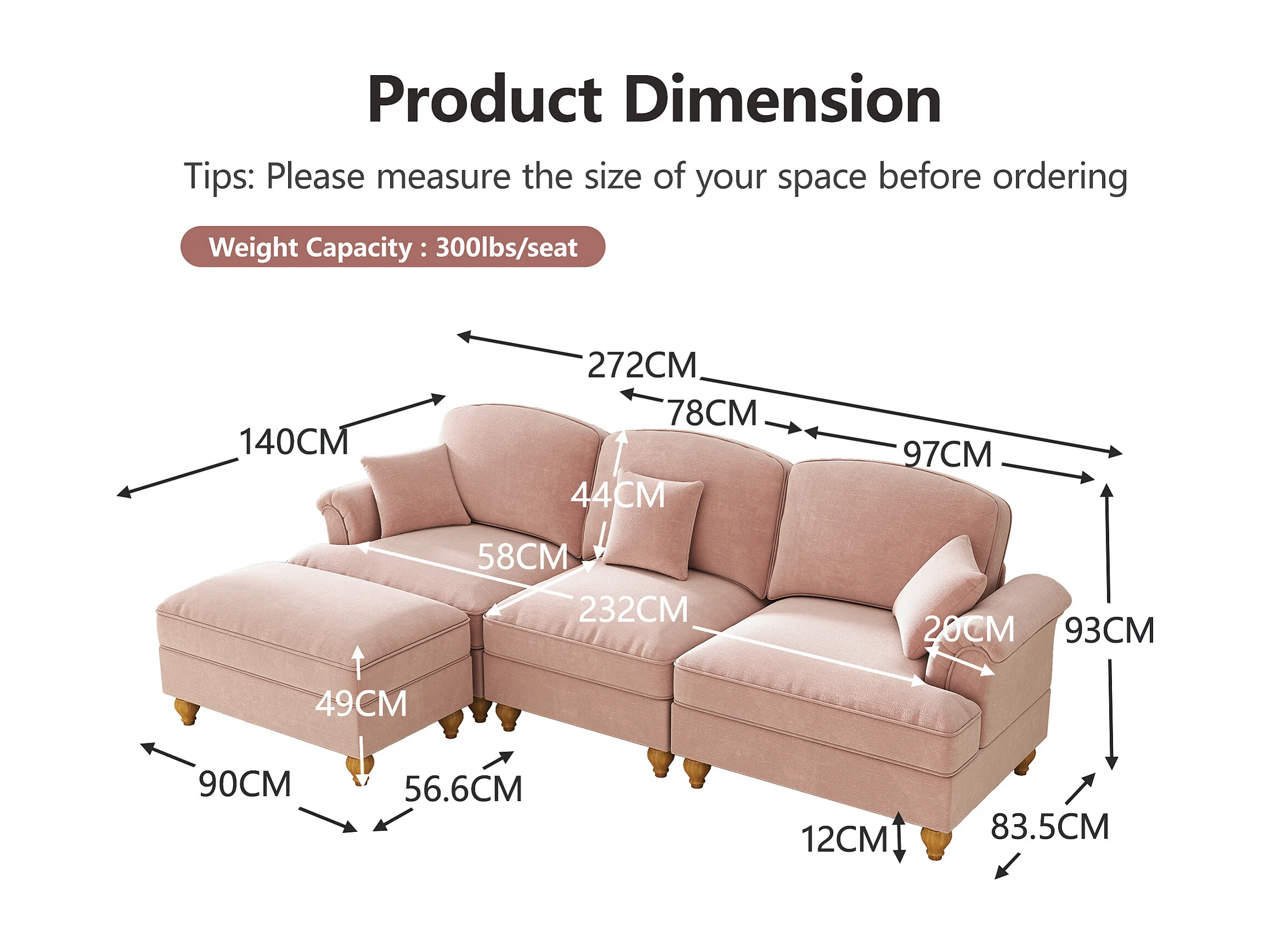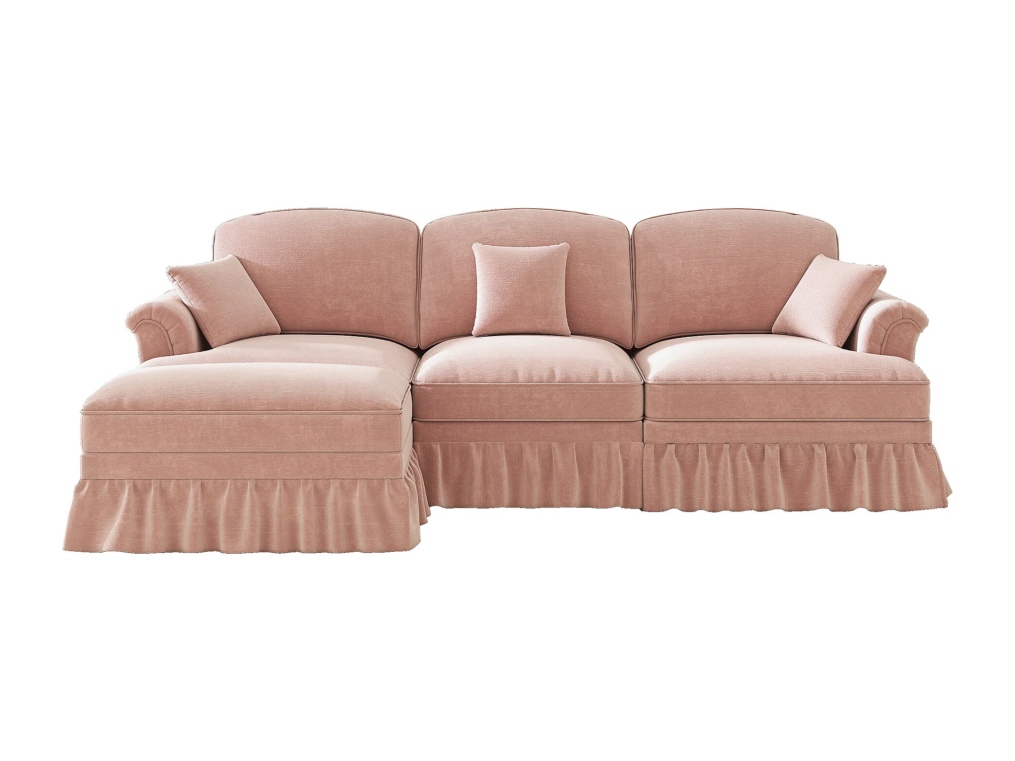 Canapé 3 places rose avec soutien lombaire - Repose-pieds mobile - Tissu chenille