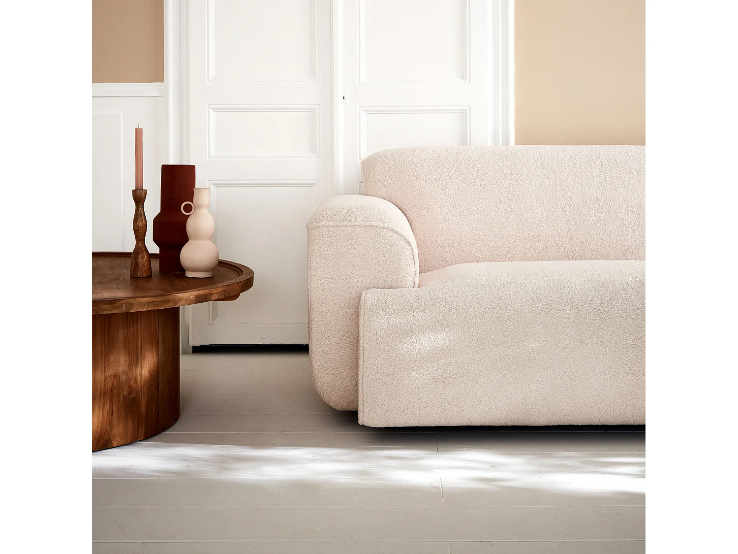 Canapé 3 places. tissu bouclette. 2 coussins déhoussables. Wallas L 230 x P 98 x H 73cm