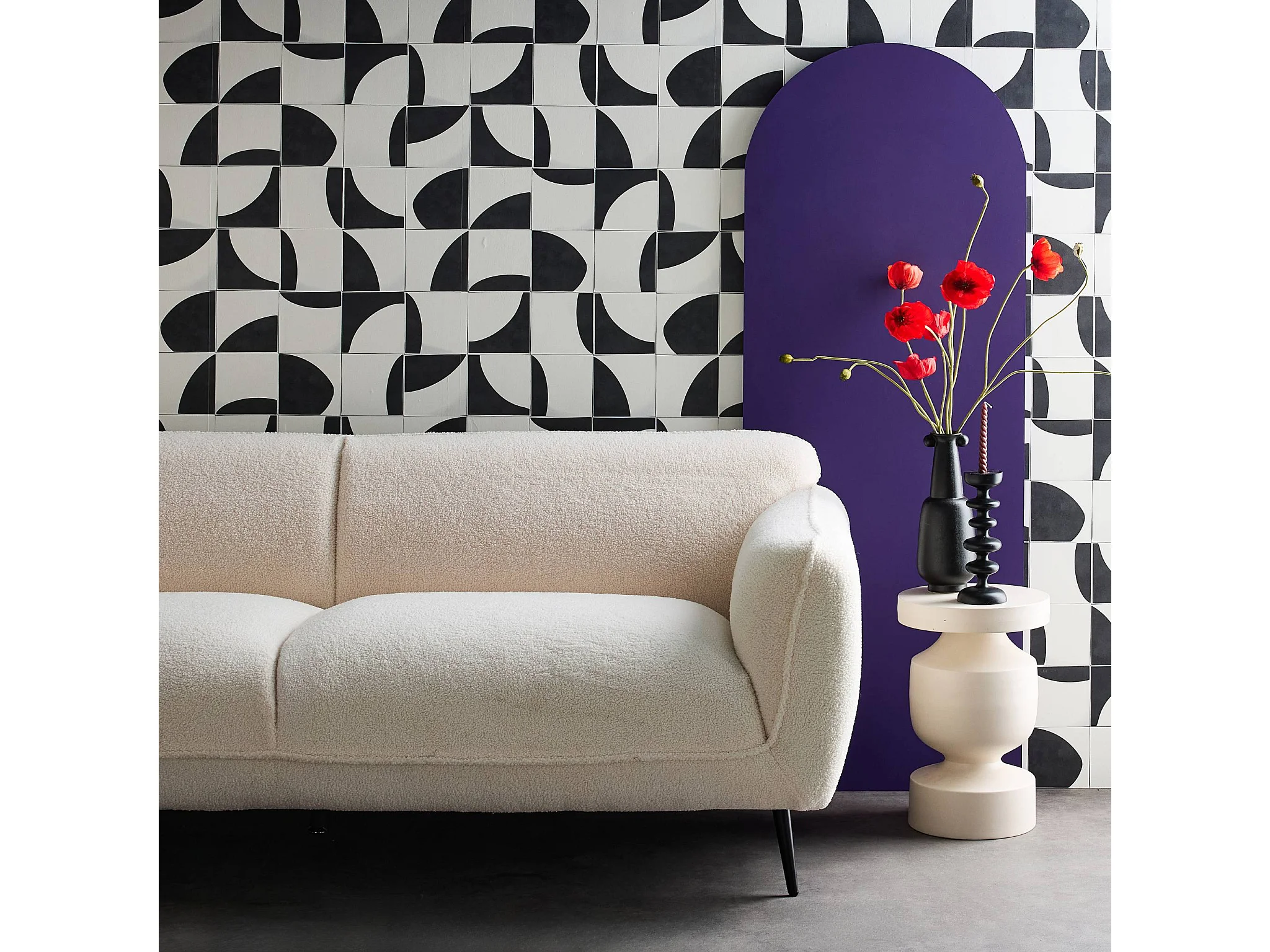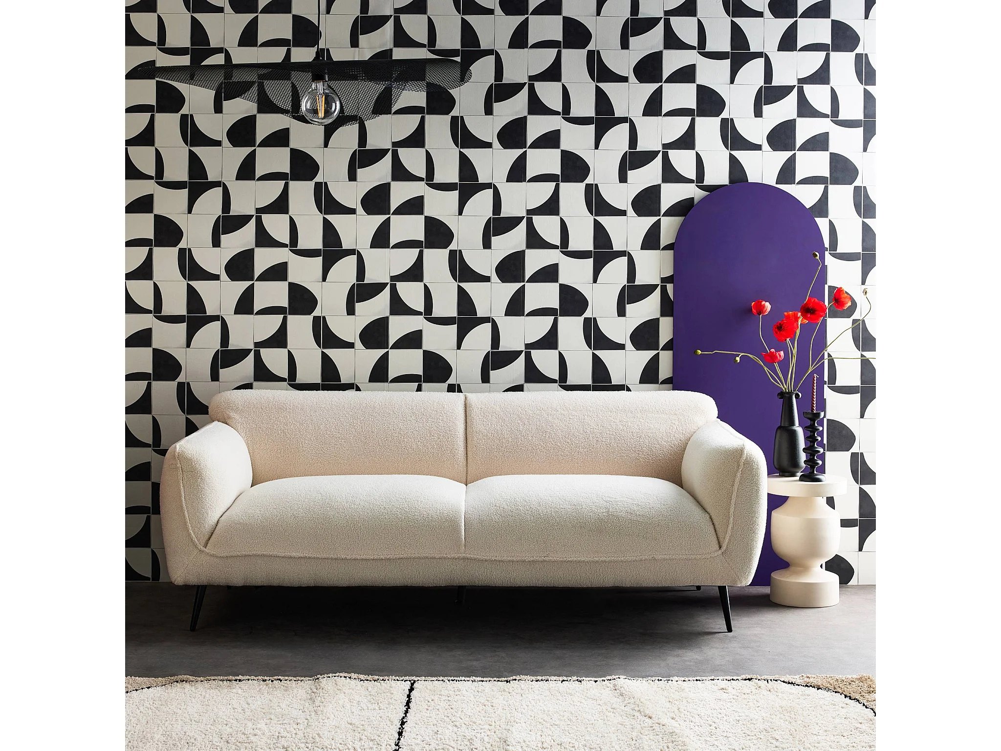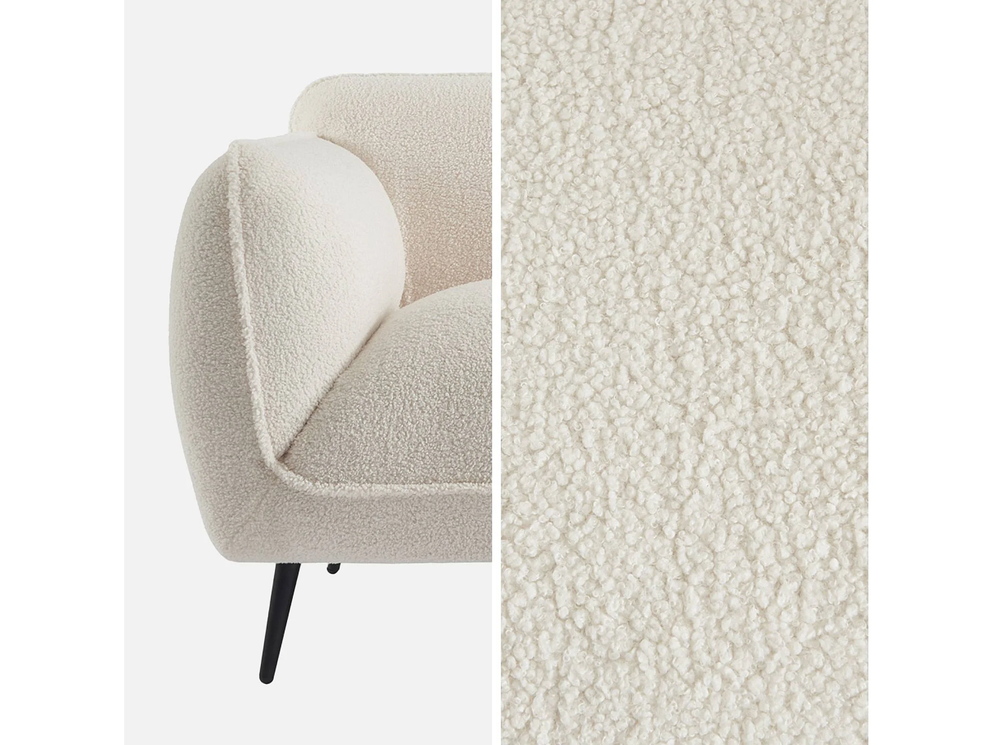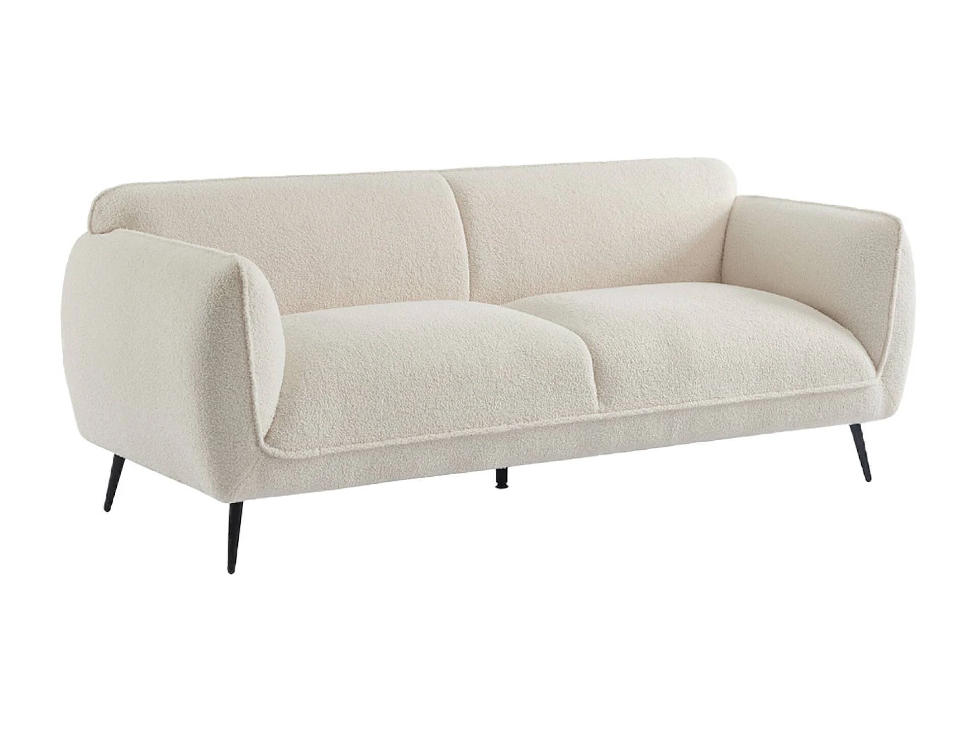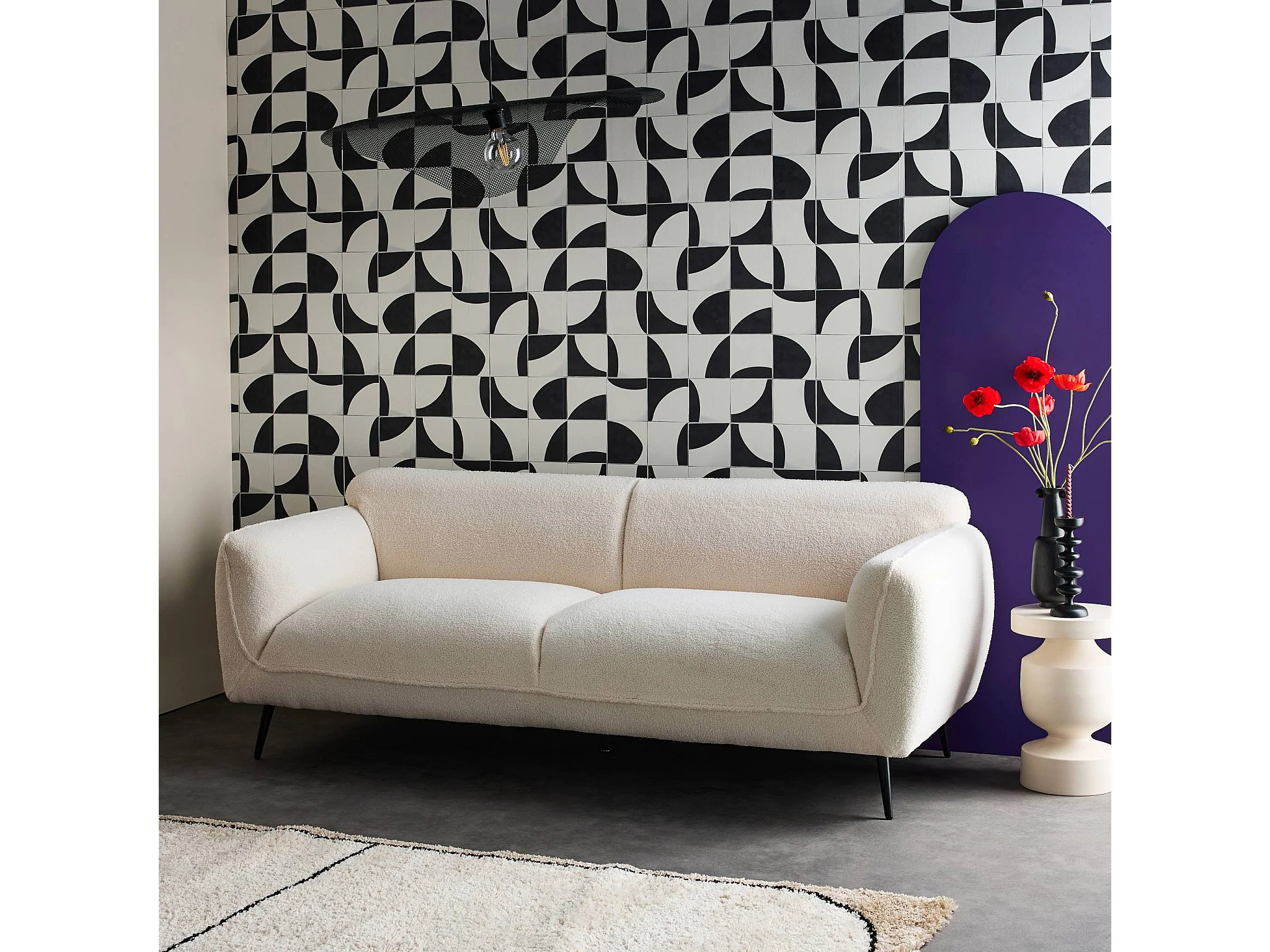 Canapé 3 places tissu bouclette crème et pieds métal noir