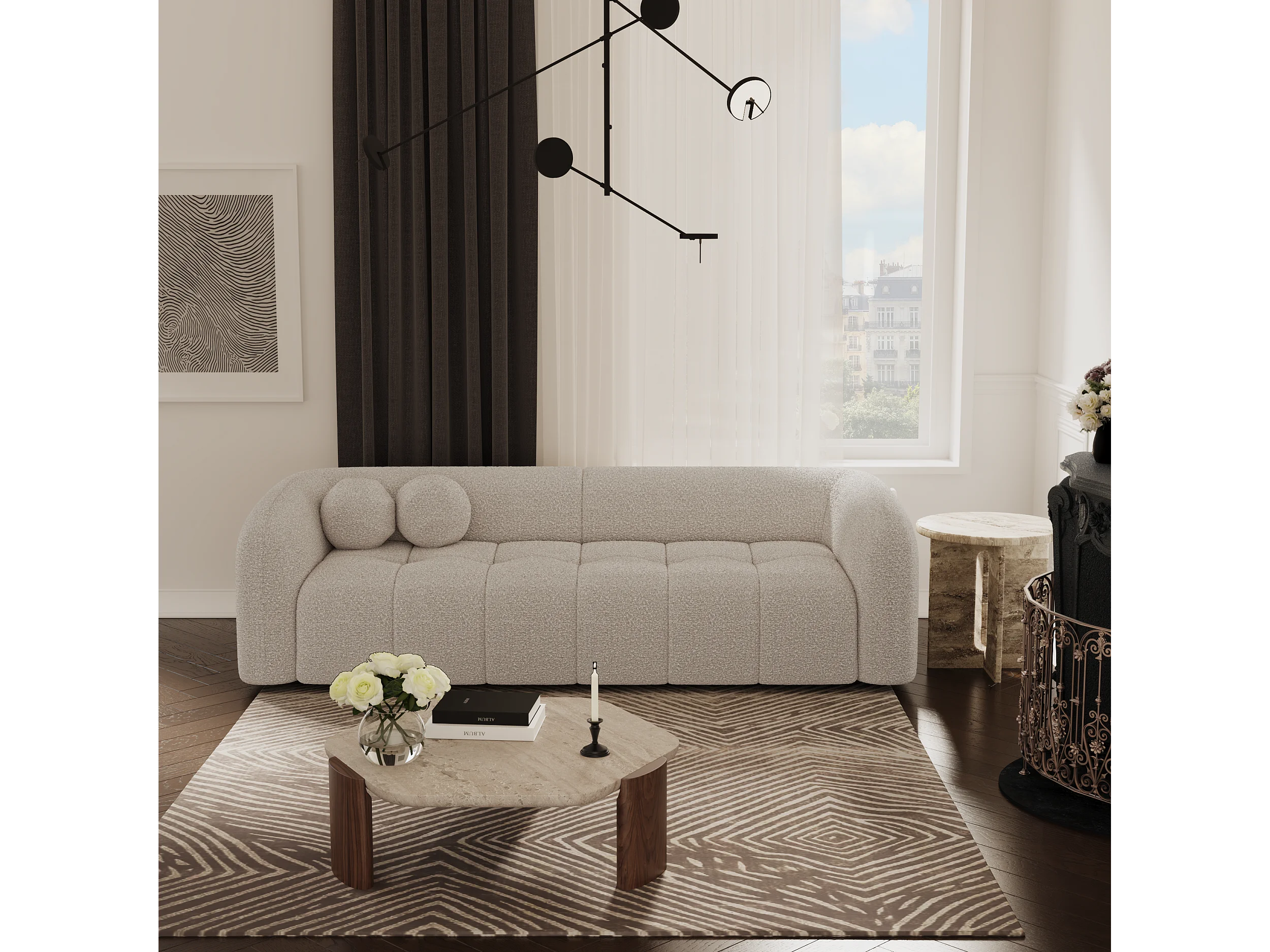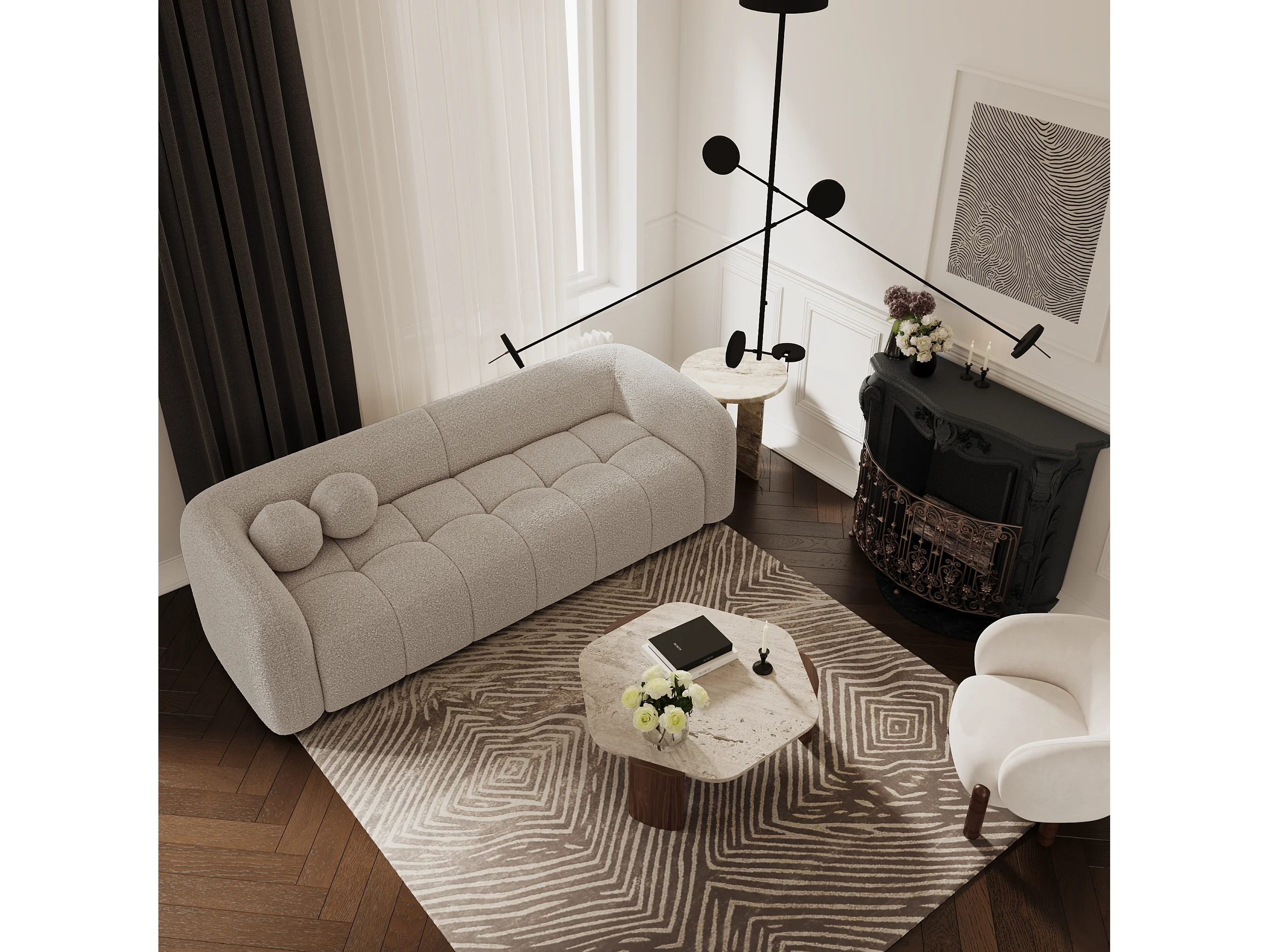 Canapé 3 places bouclette taupe 226cm HAUSSMANN