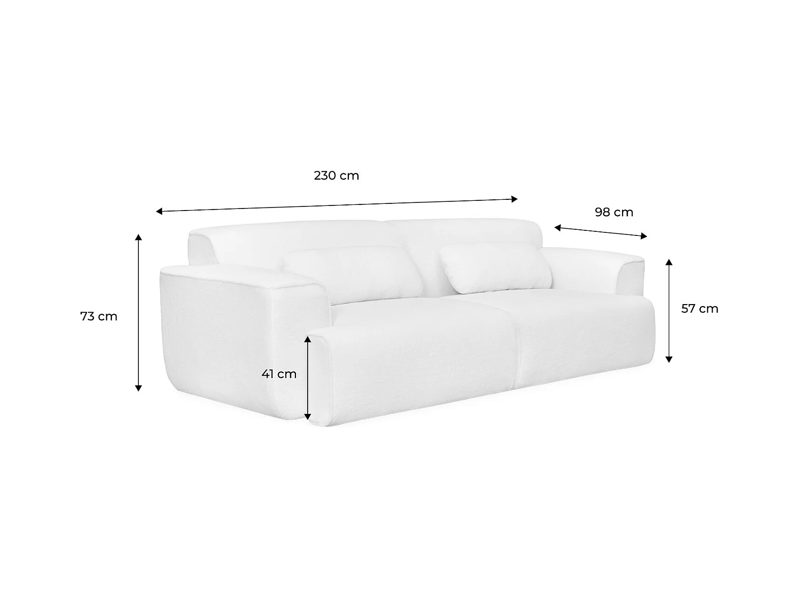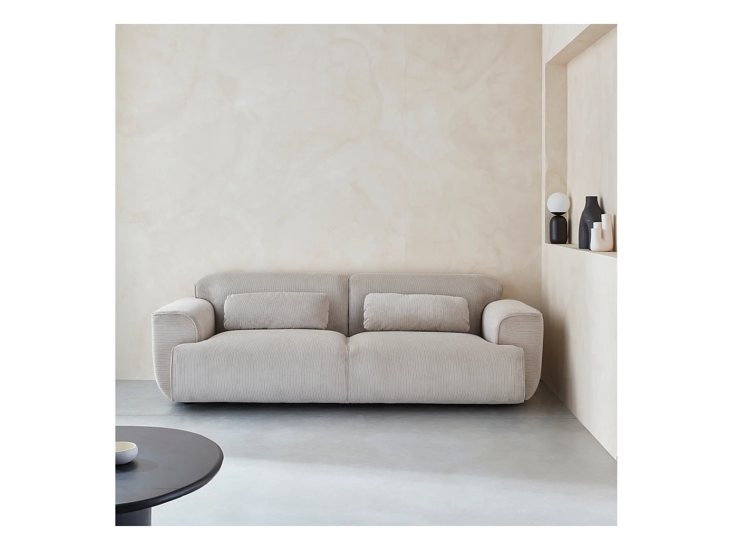 Canapé 3 places. tissu velours côtelé. 2 coussins déhoussables. Wallas L 230 x P 98 x H 73cm