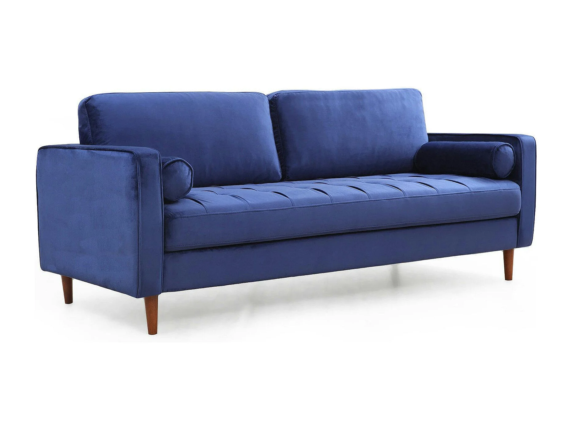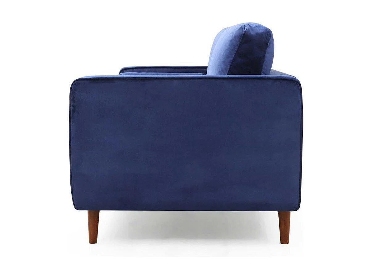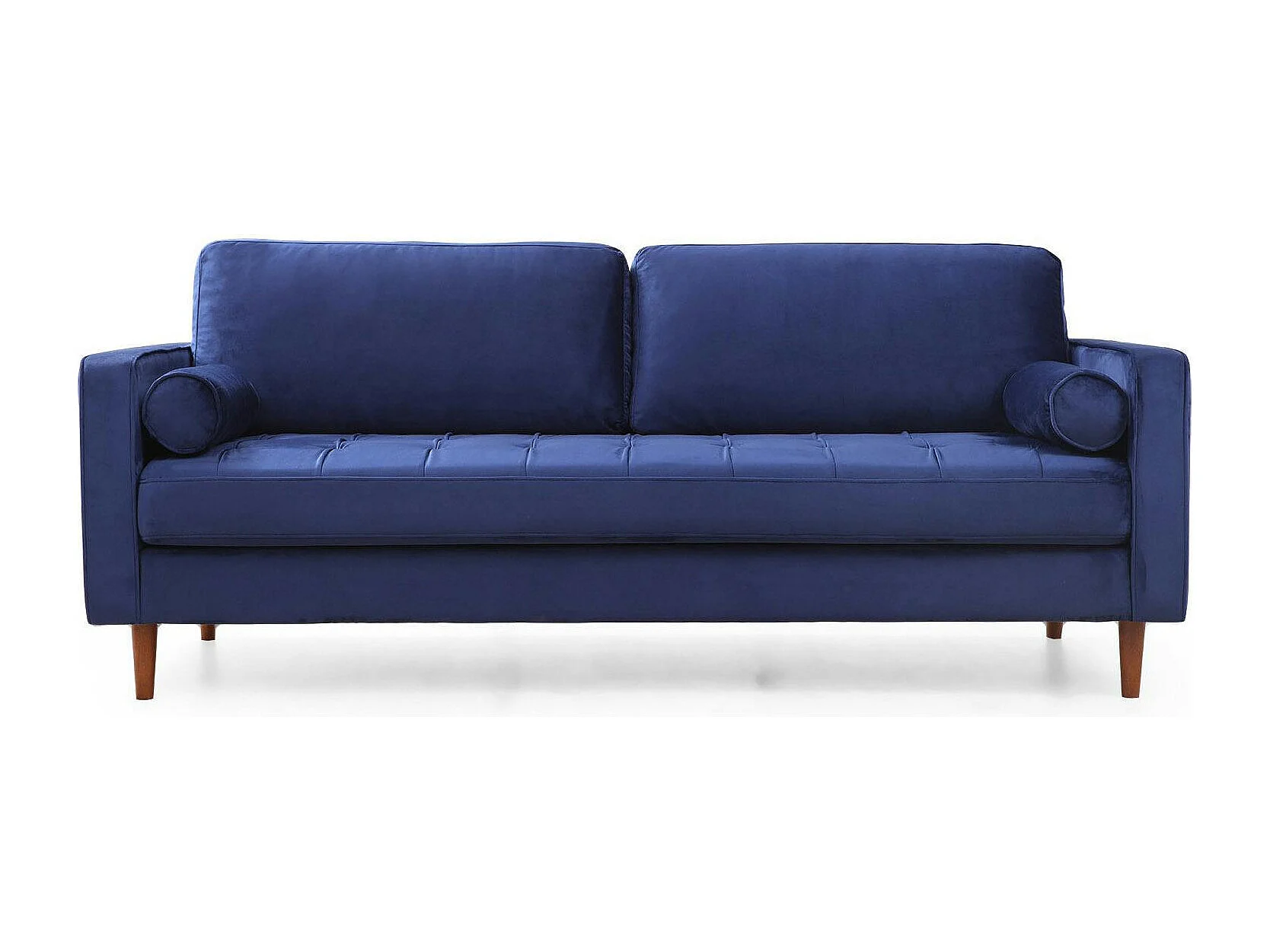 Canapé 3 places velours bleu avec coussins polochons CHIBA