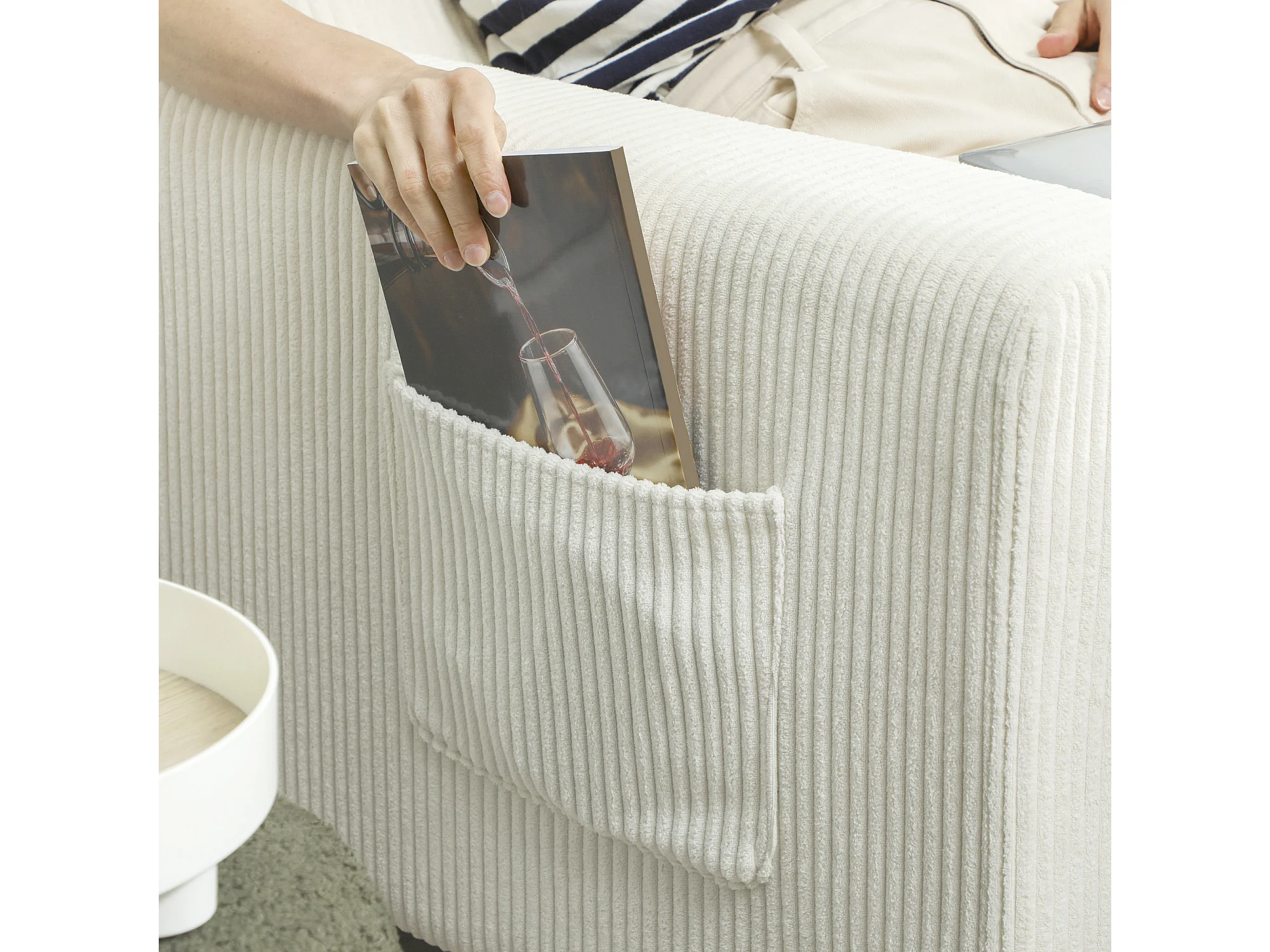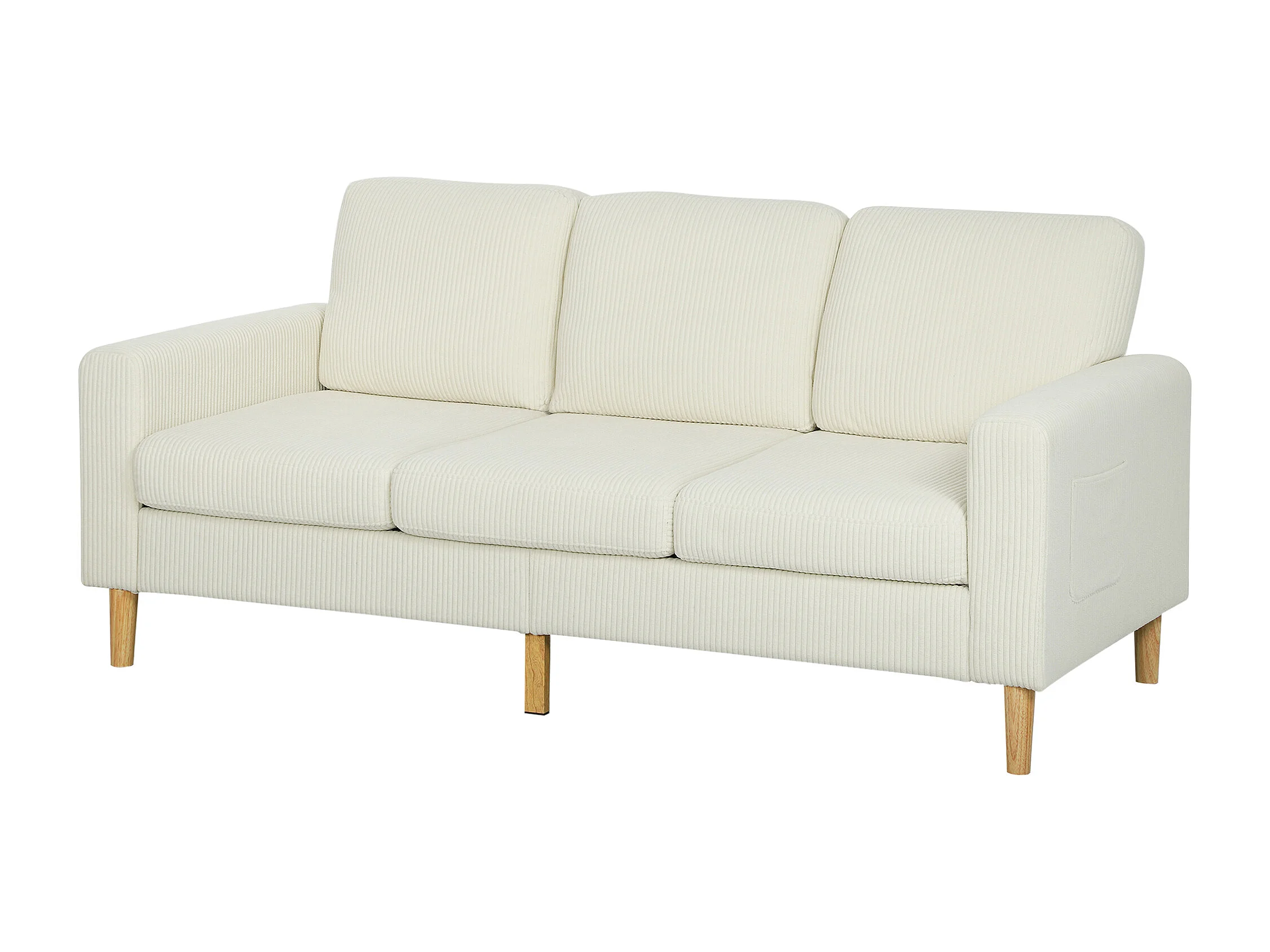 Canapé 3 places velours côtelé style nordique coussins déhoussables beige clair