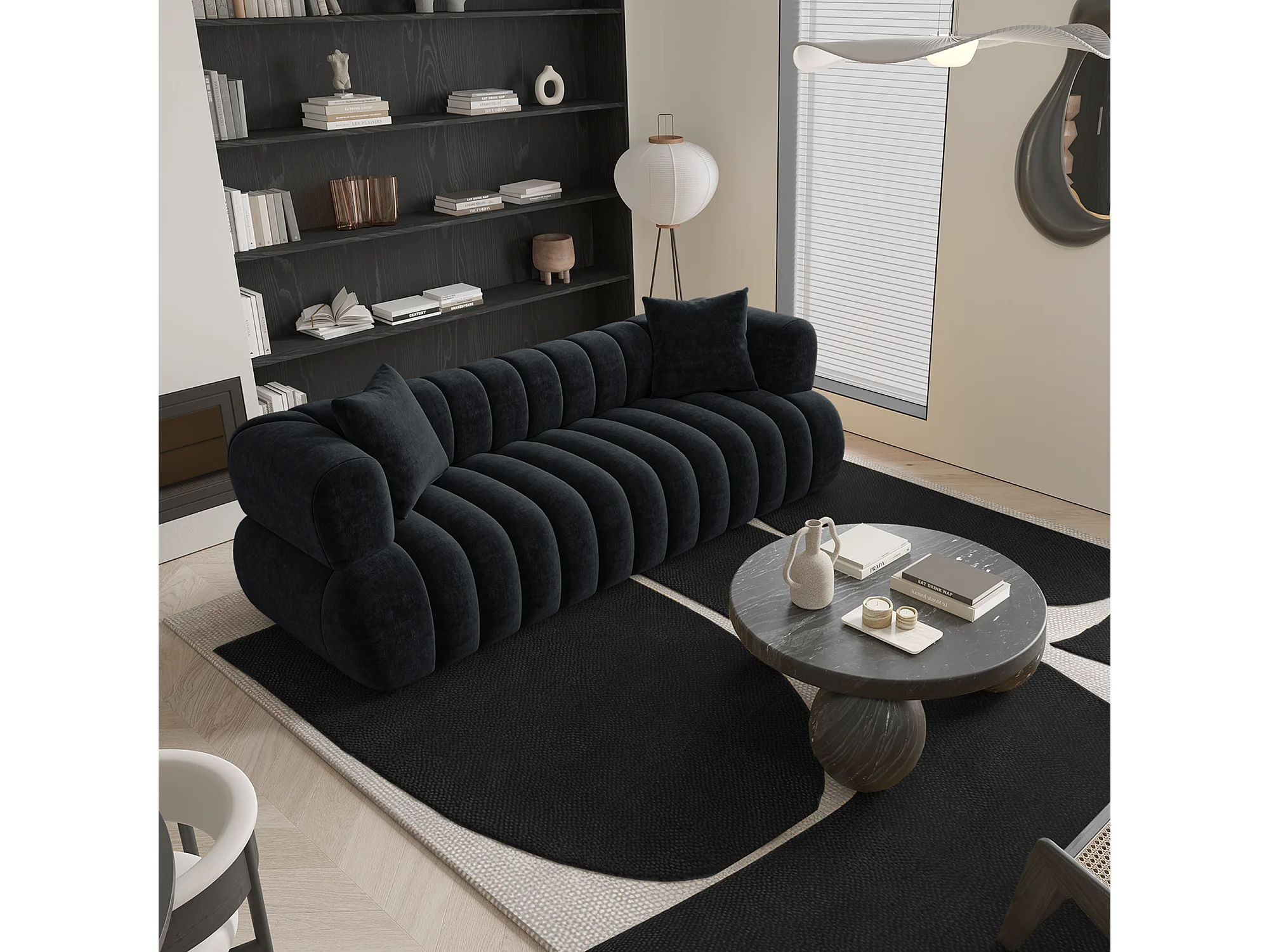 Canapé 3 places velours noir 225cm ROSS