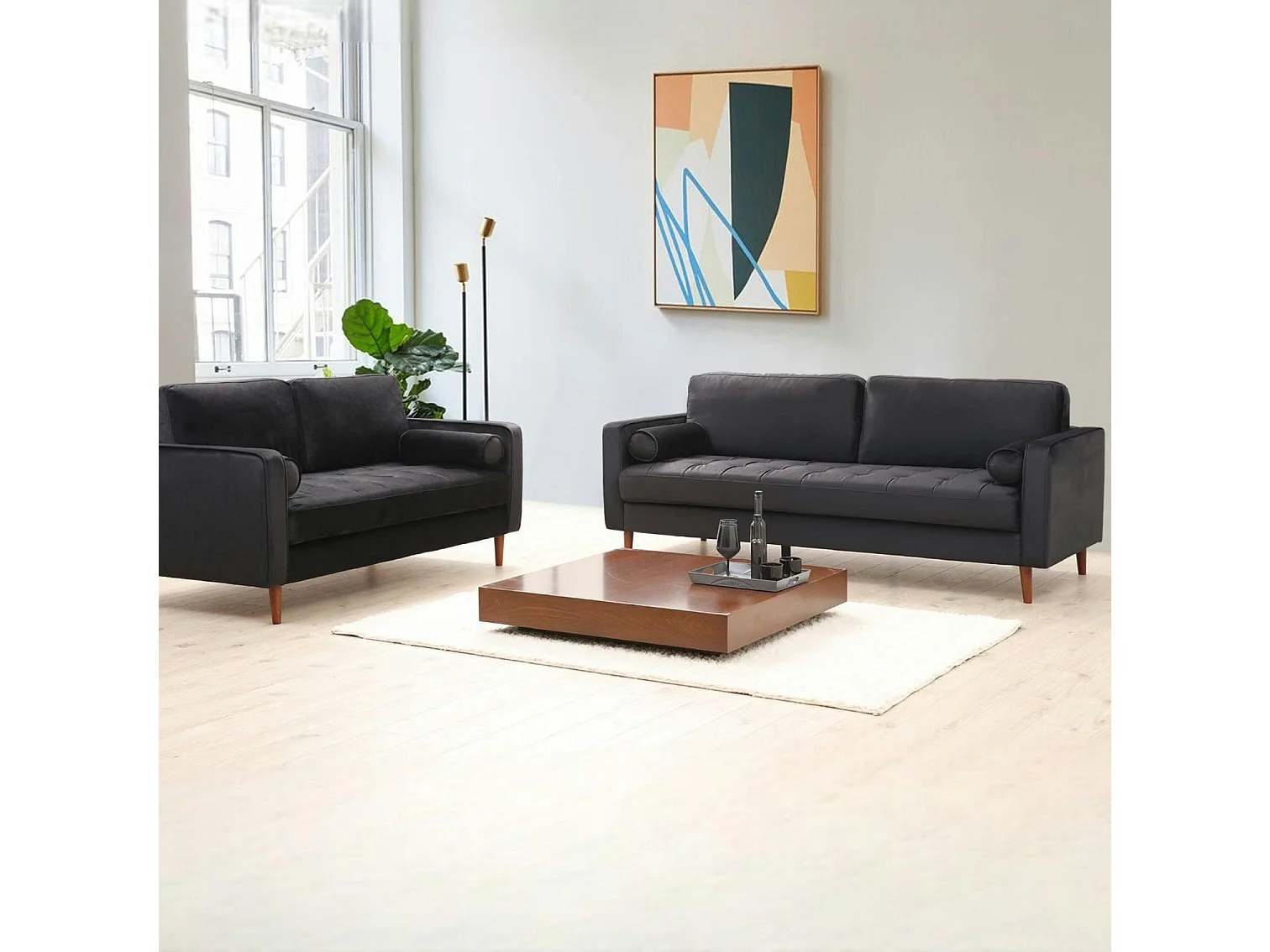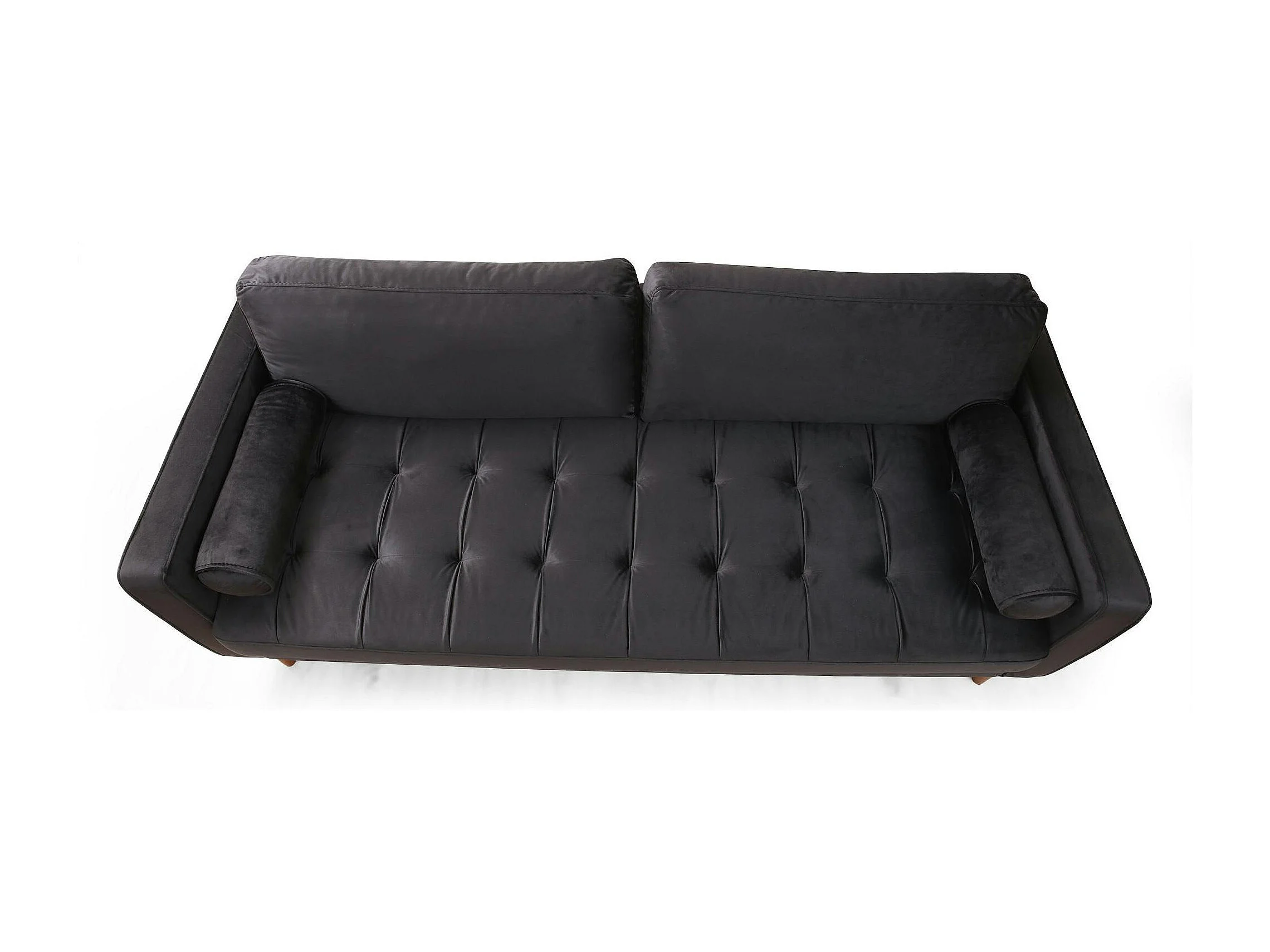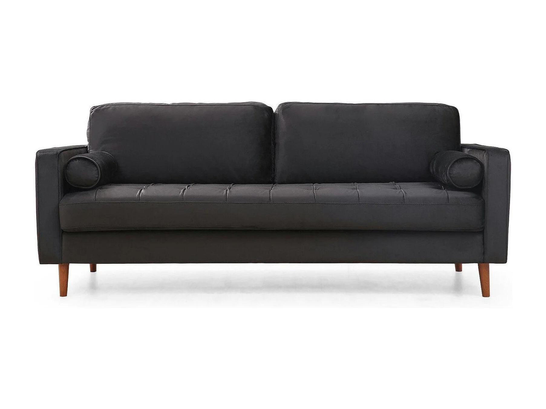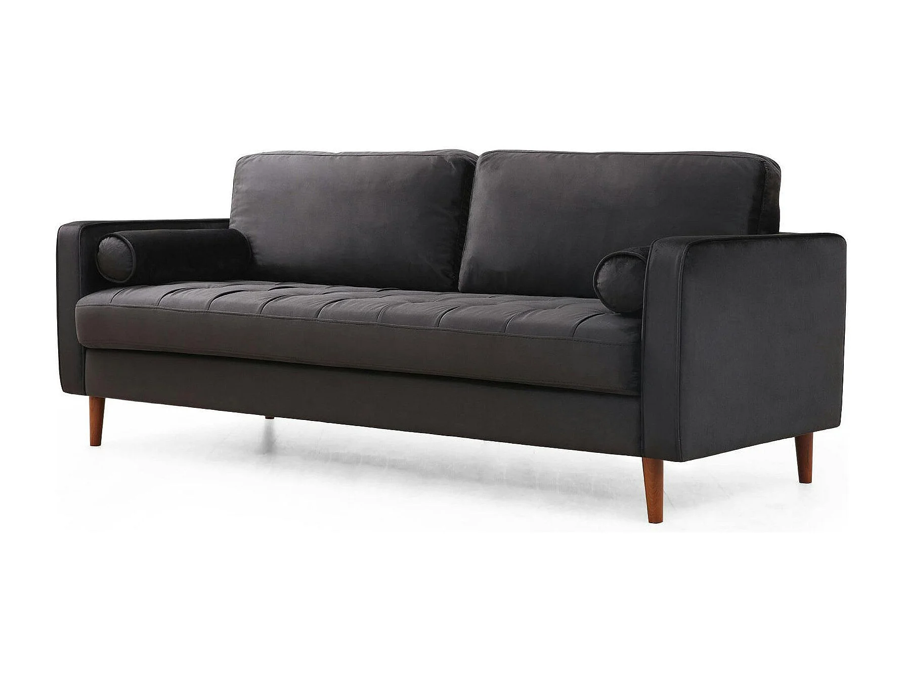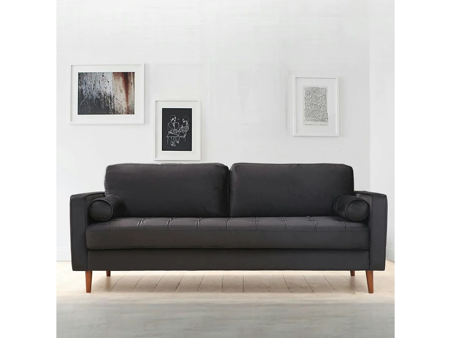 Canapé 3 places velours noir avec coussins polochons CHIBA