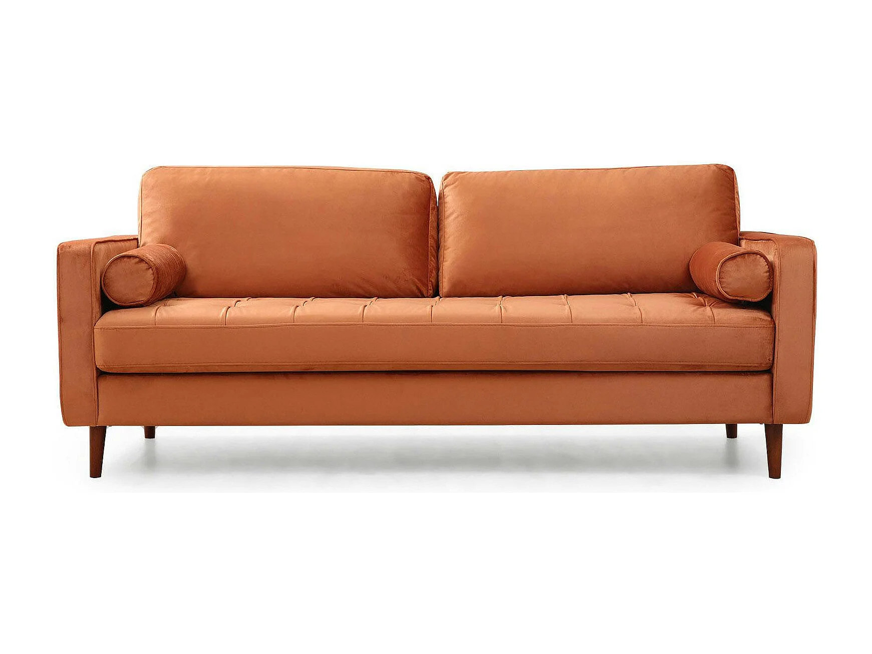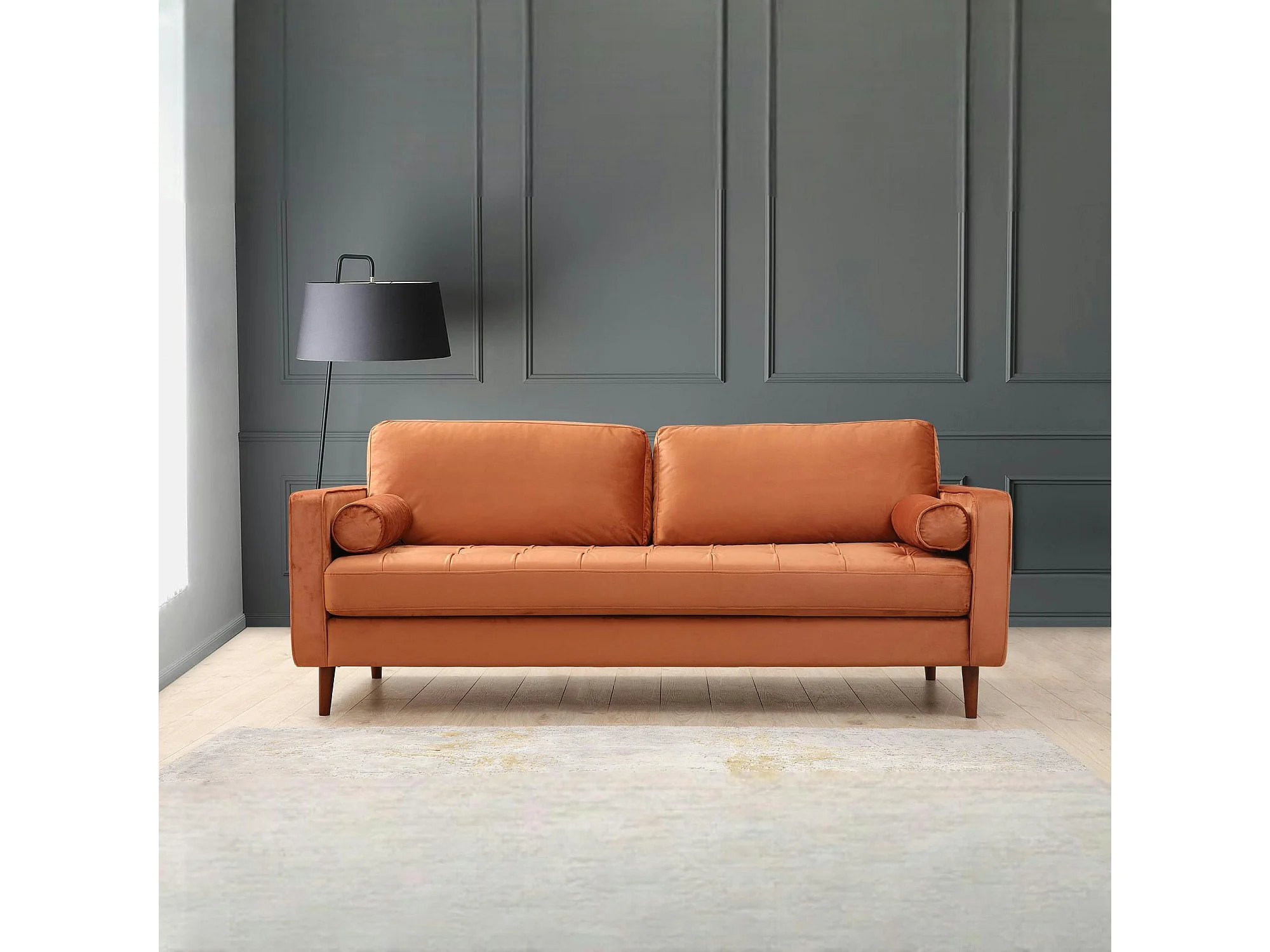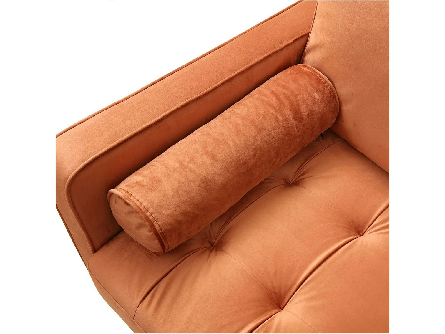 Canapé 3 places velours rouille avec coussins polochons CHIBA