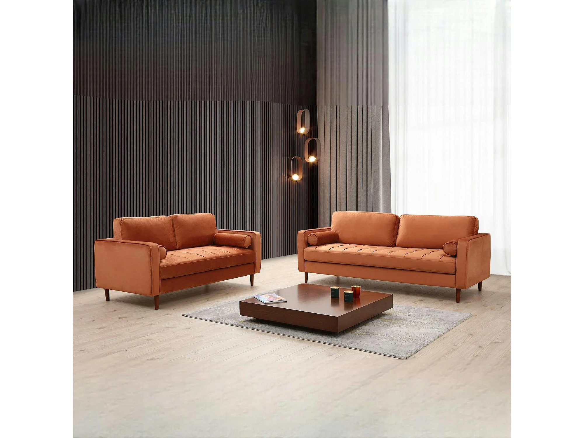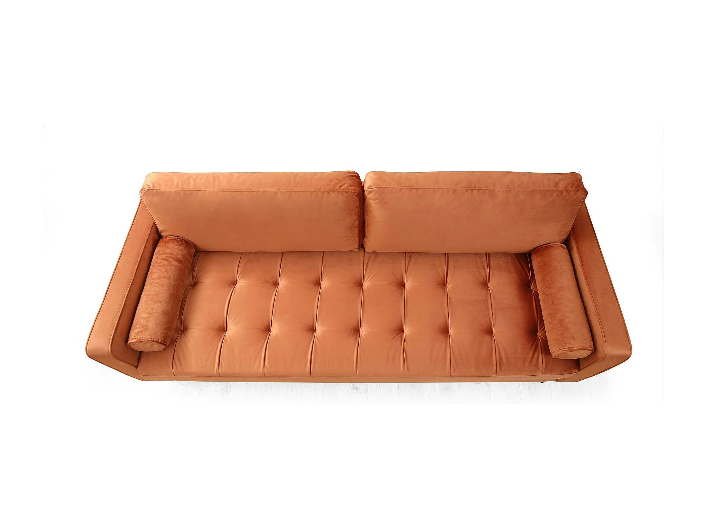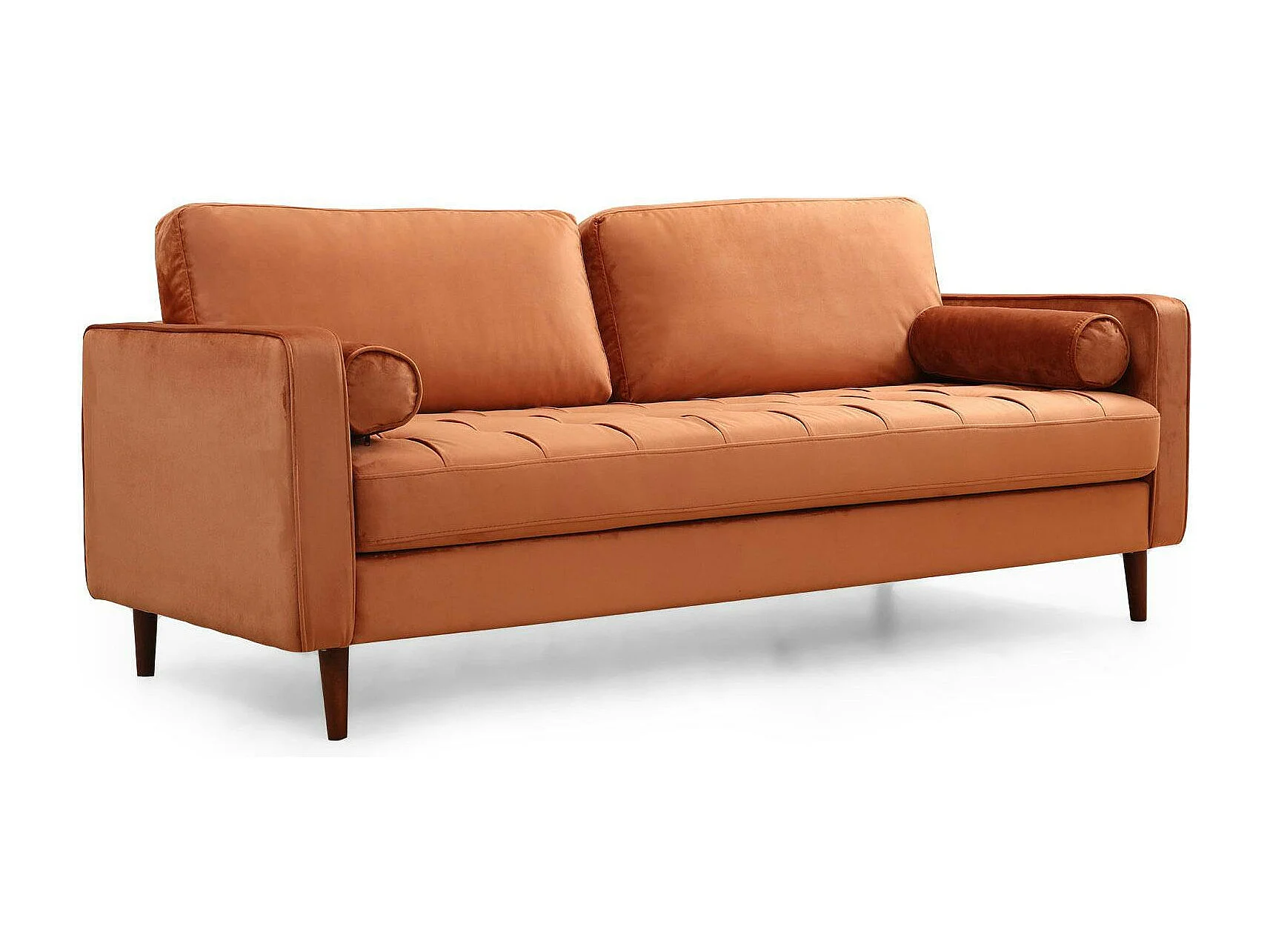 Canapé 3 places velours rouille avec coussins polochons CHIBA
