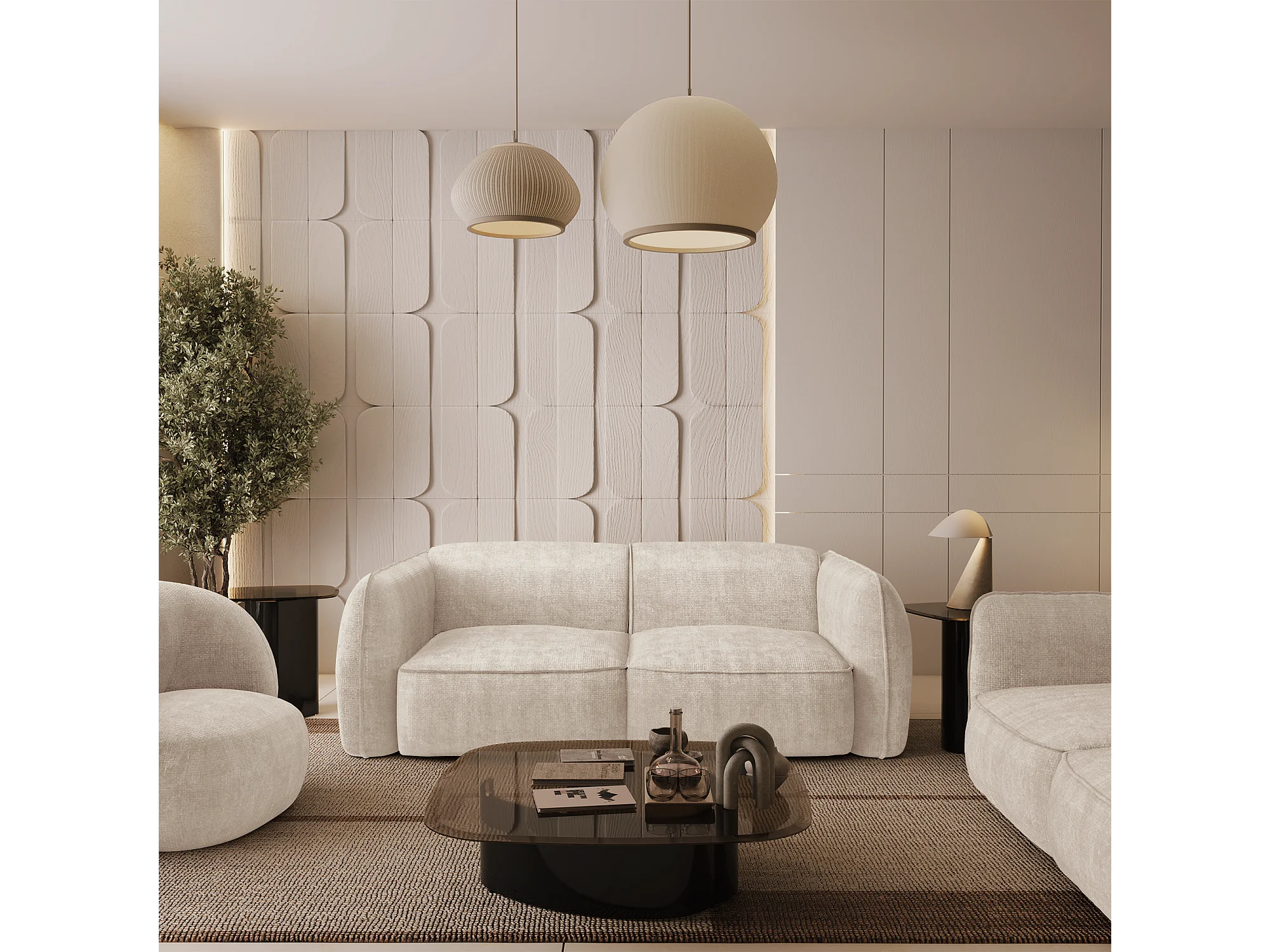 Canapé 3 places velours tramé crème LIVIA