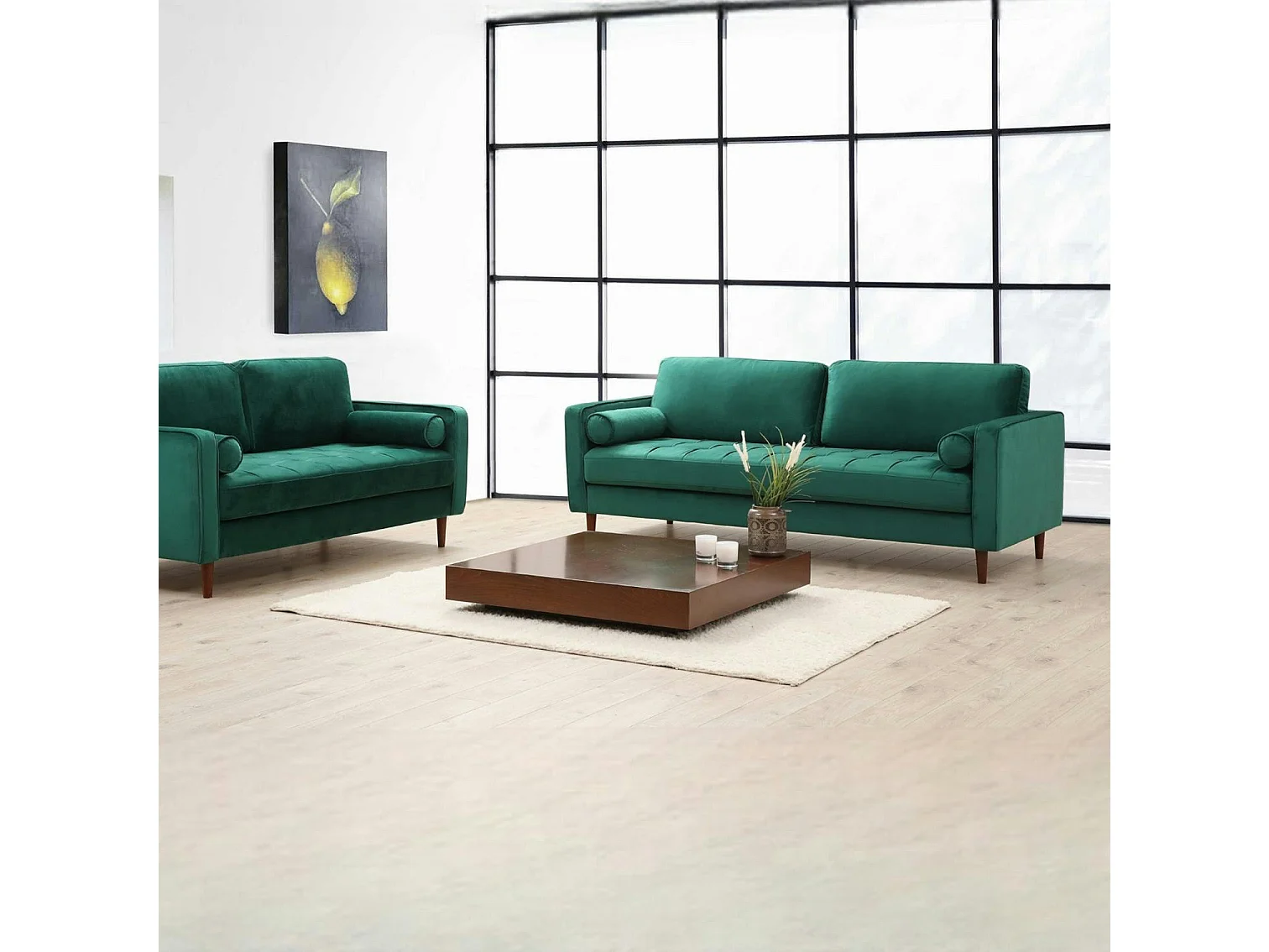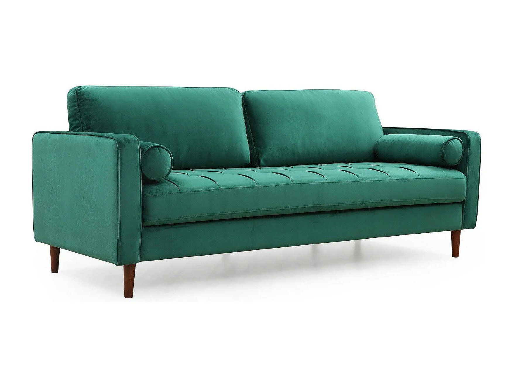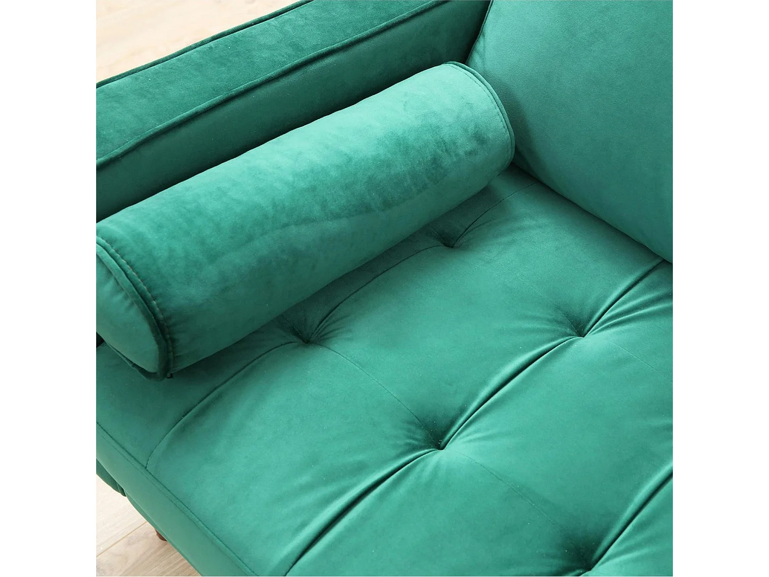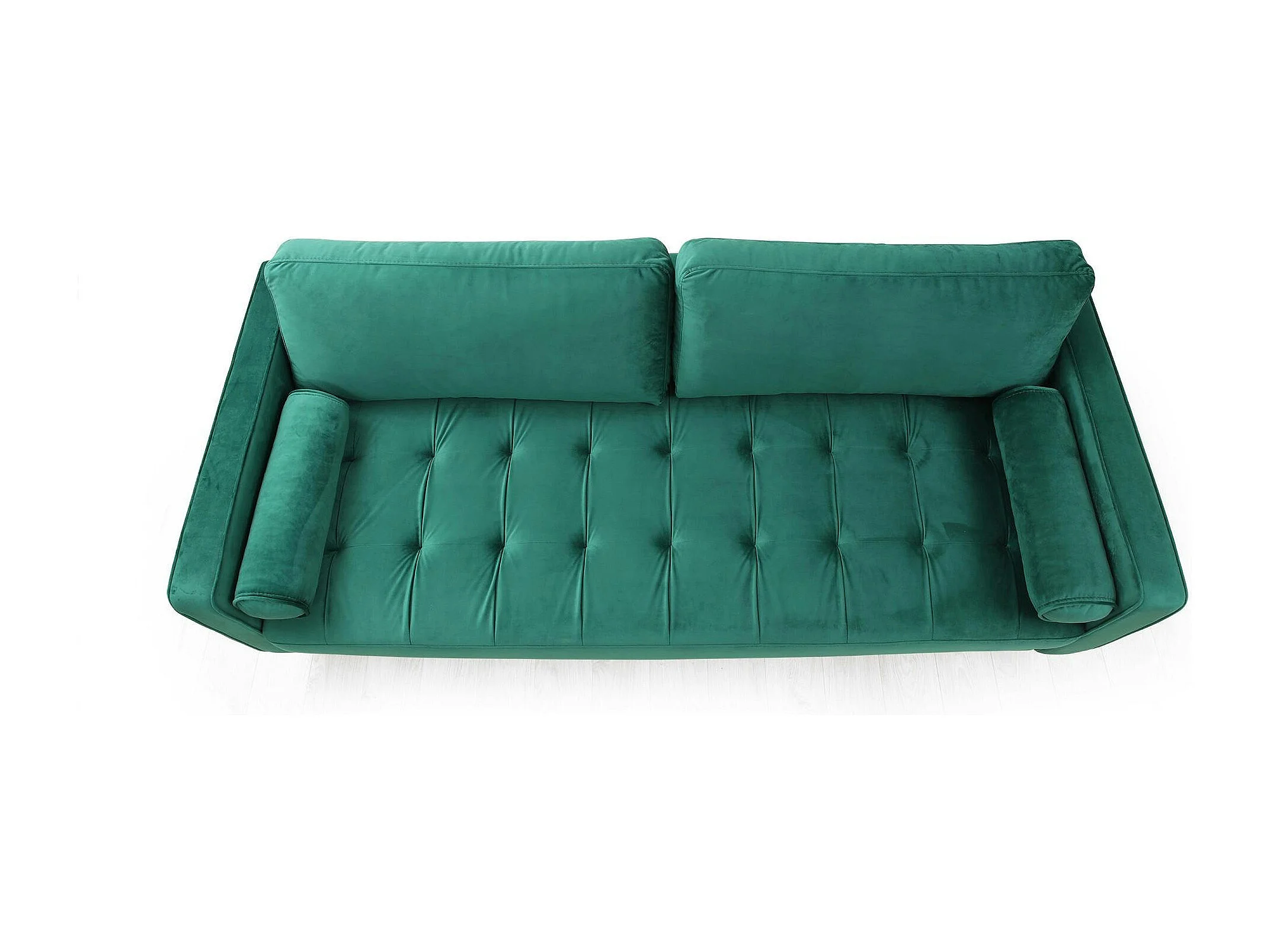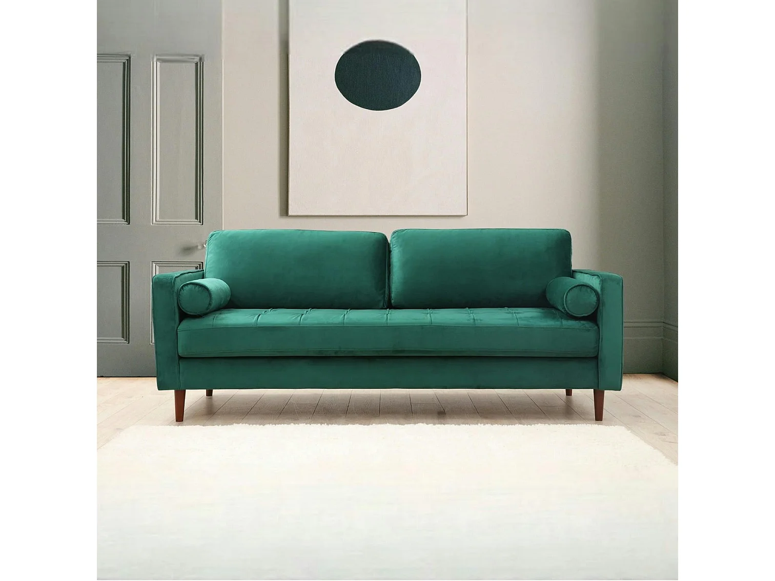 Canapé 3 places velours vert avec coussins polochons CHIBA