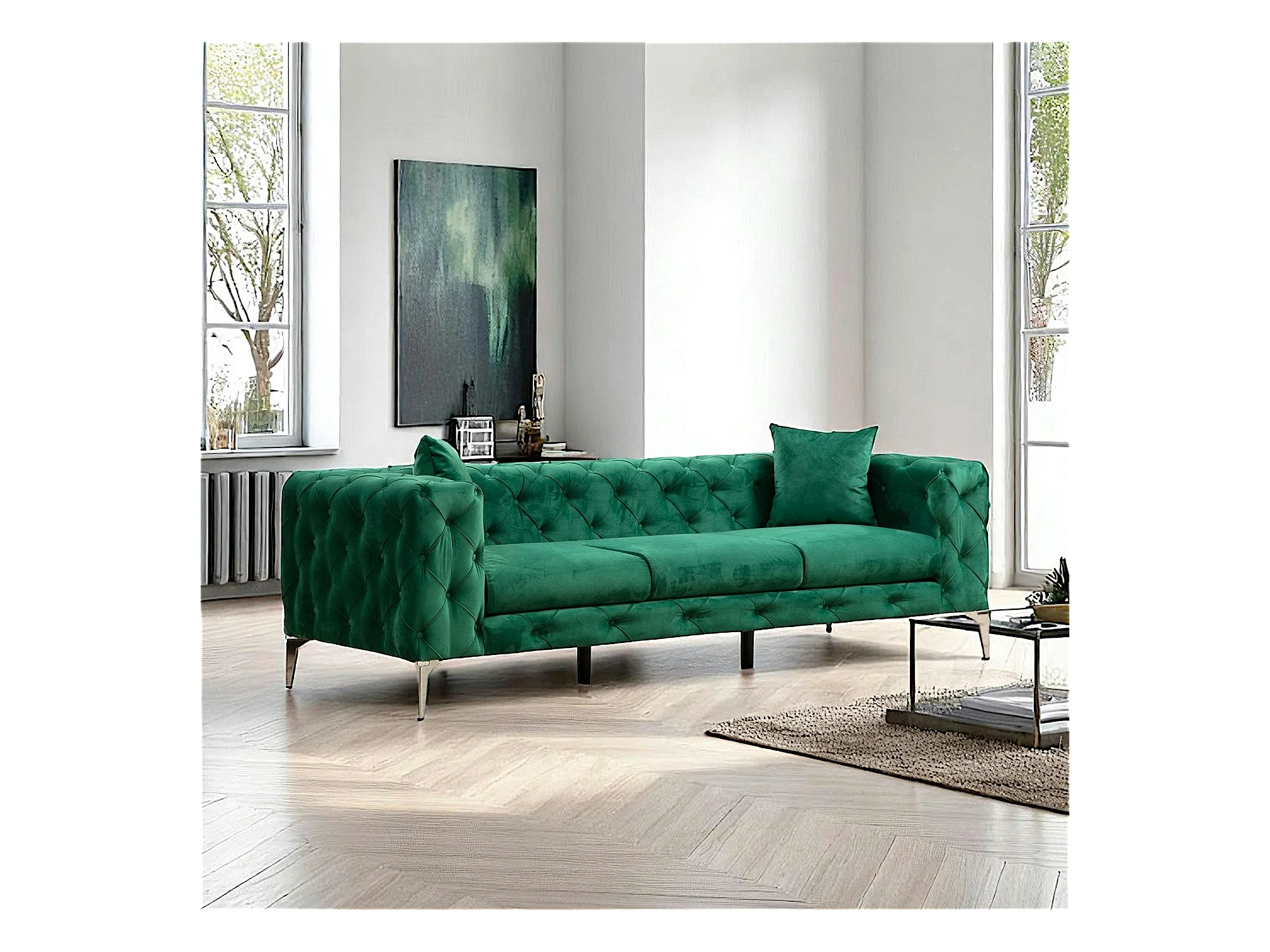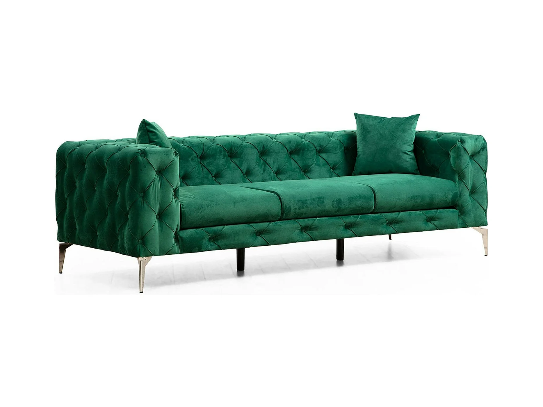 Canapé 3 places vert en velours capitonné DOVER