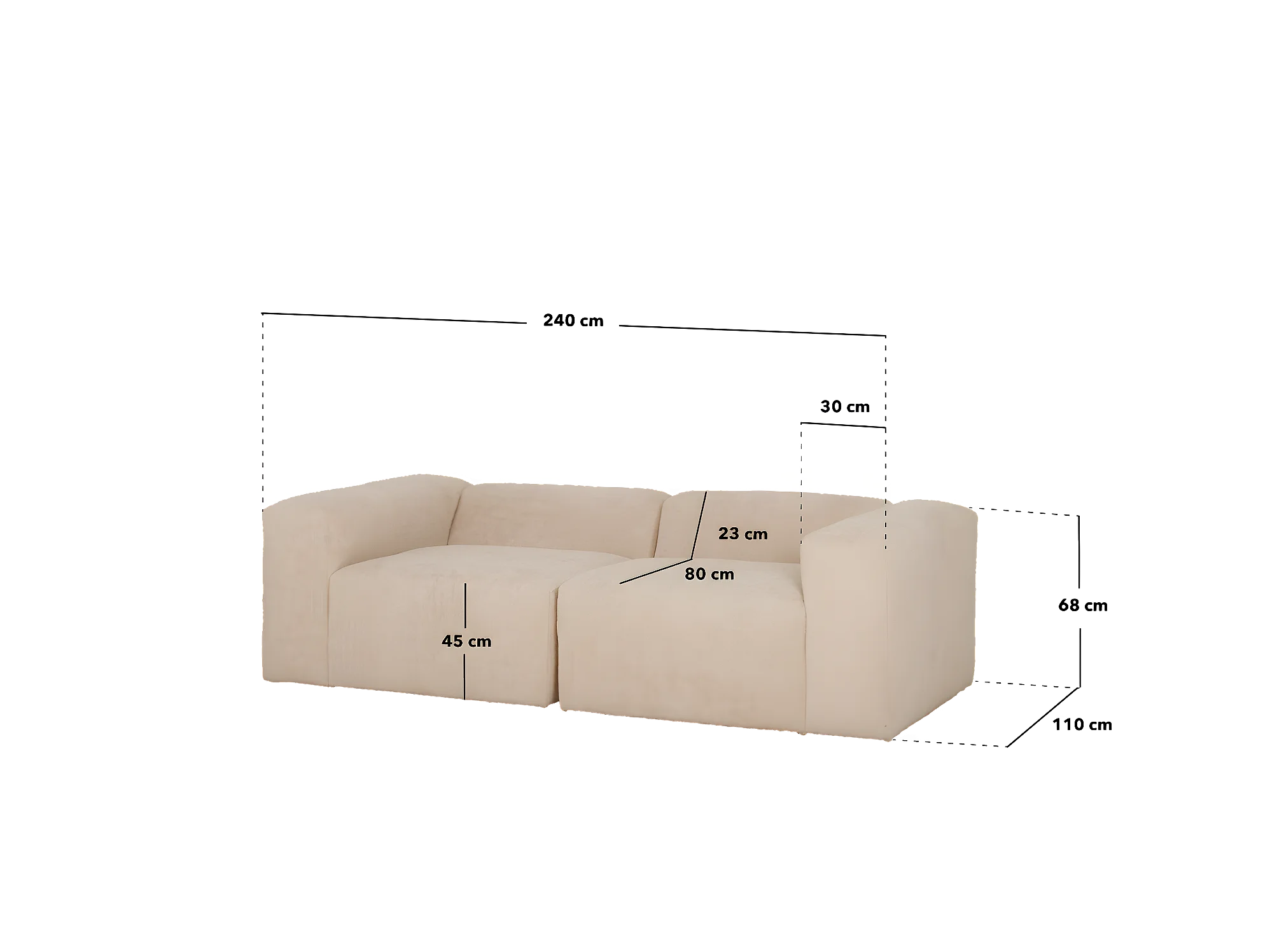 Canapé 4 places 2 modules en bouclé couleur blanc