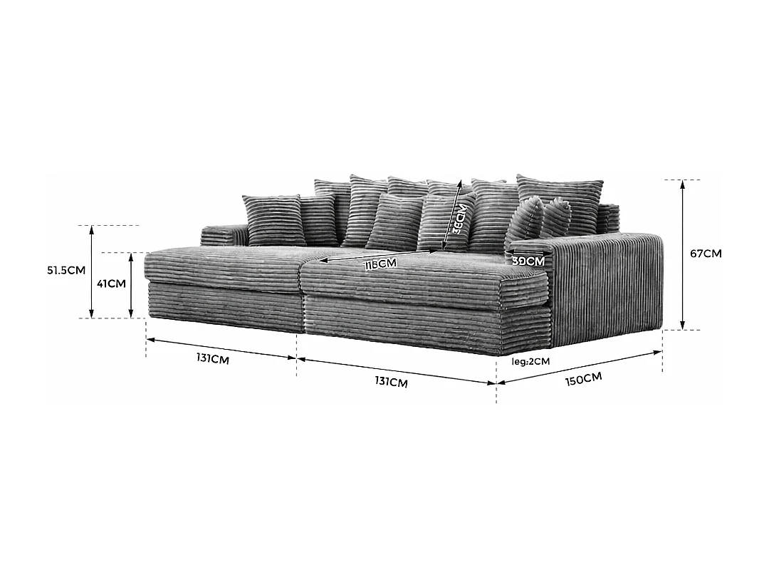 Canapé 4 places en velours côtelé terracotta CARDIFF