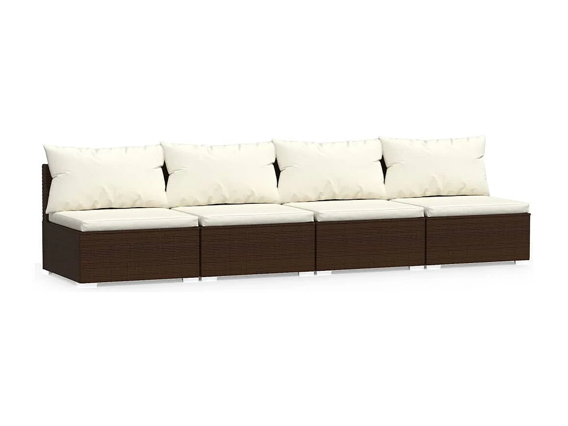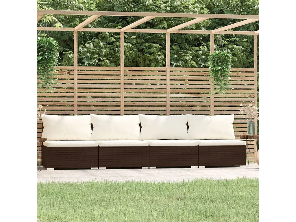 Canapé 4 places avec coussins Marron Résine tressée